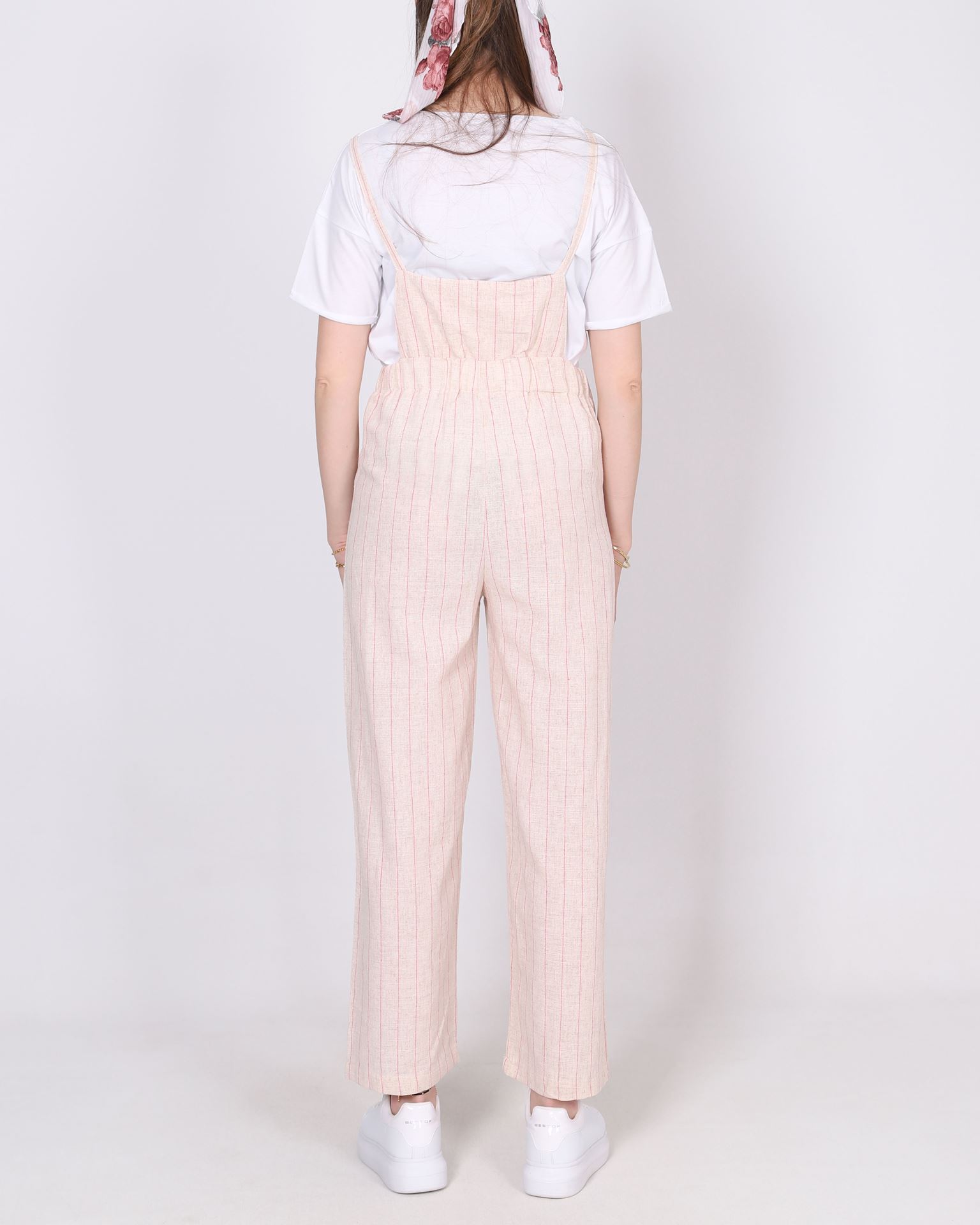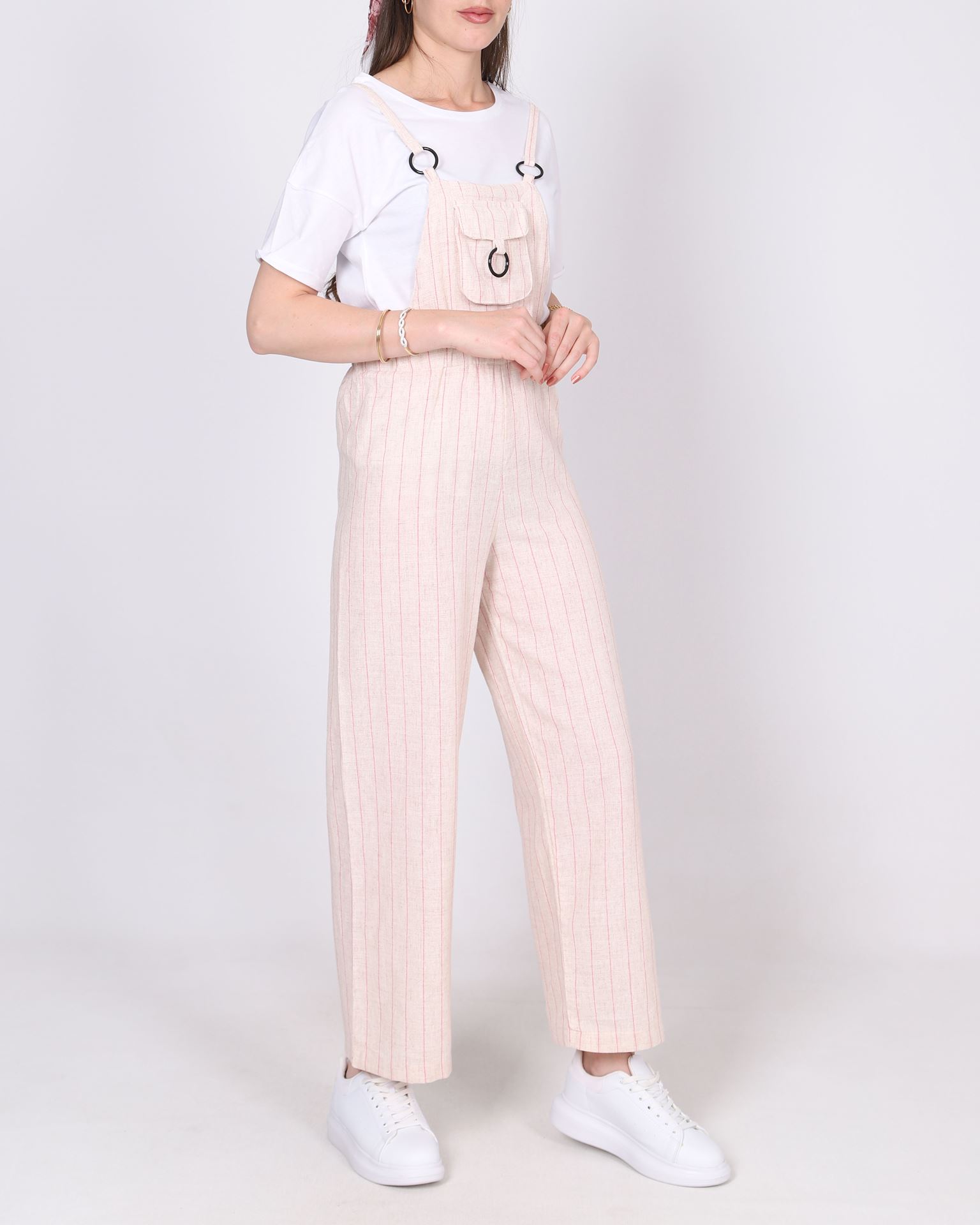 Pembe Çizgili Keten Tulum TLM529
