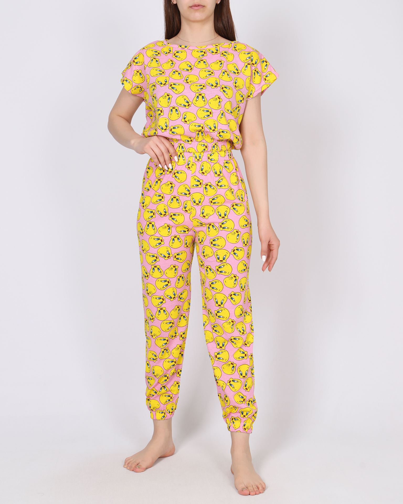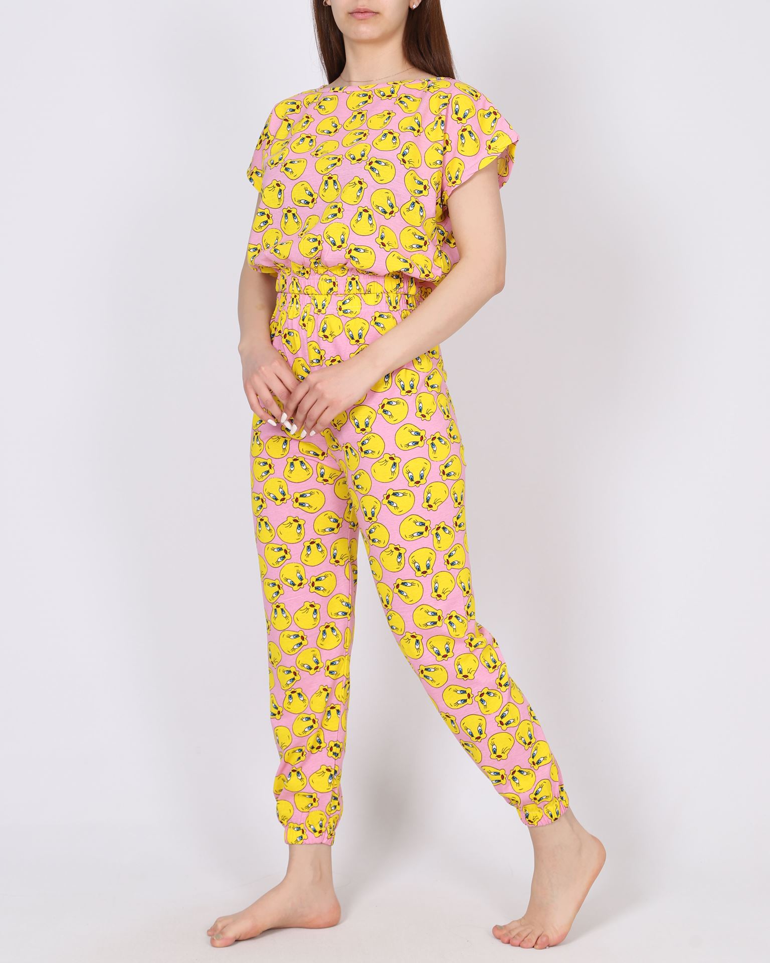 Pembe Desenli Crop Pijama Takımı PJM1642
