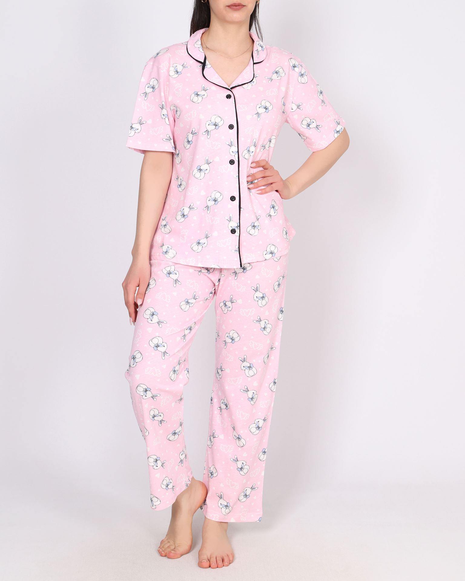 Pembe Düğmeli Kısa Kol Pijama Takımı PJM1905