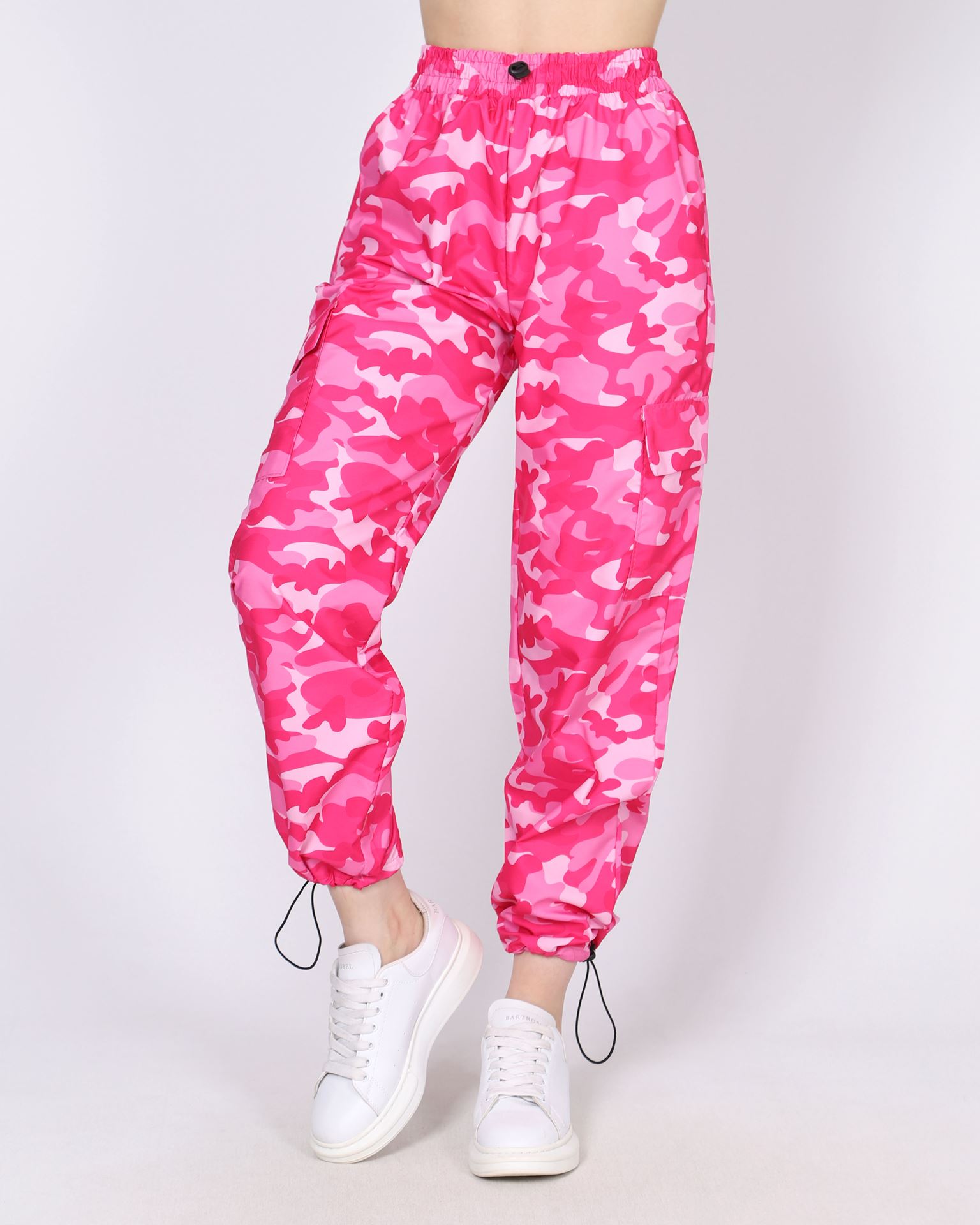 Pembe Kamuflaj Desenli Paraşüt Pantolon PNT843