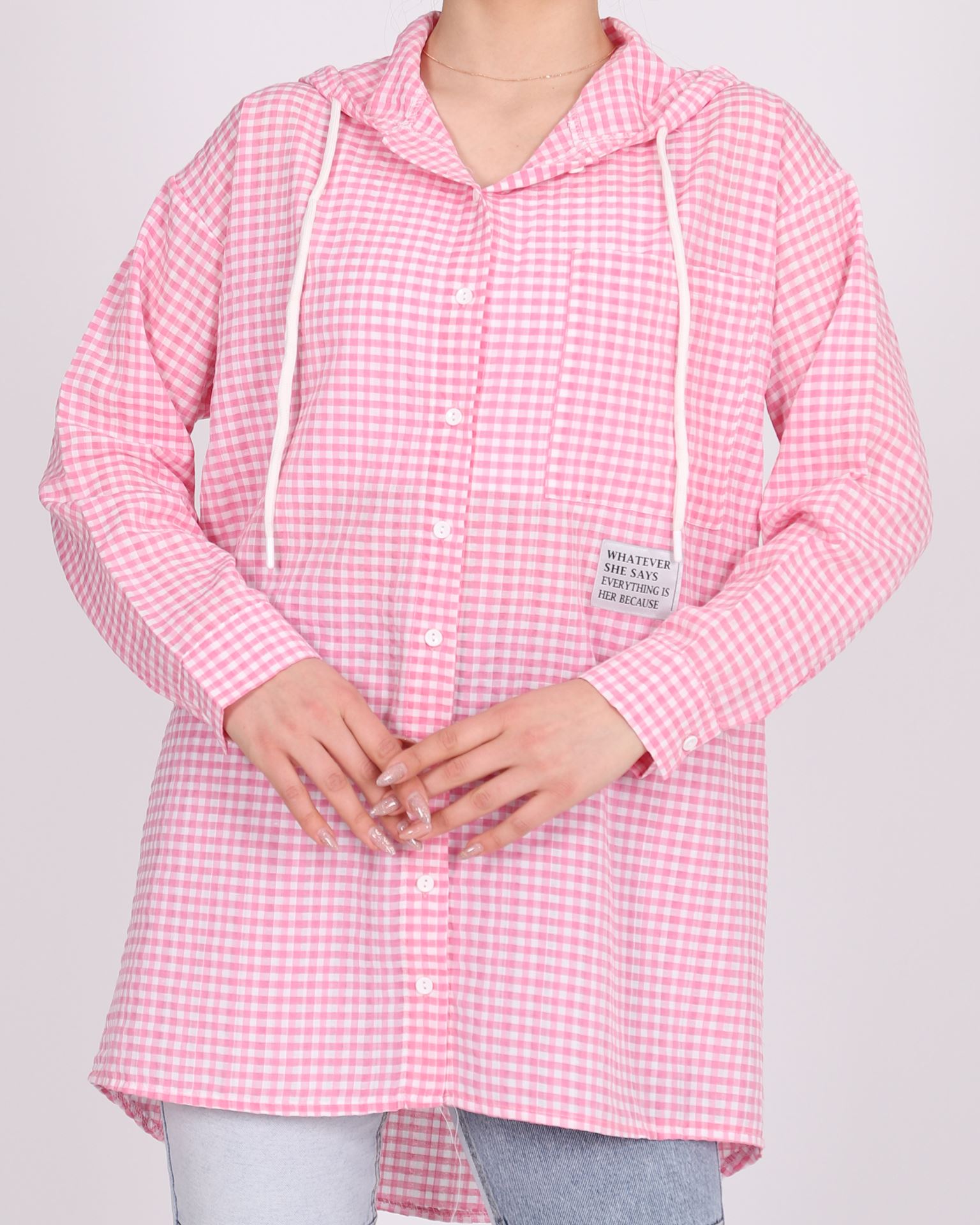 Pembe Kapşonlu Tunik Gömlek TNK019