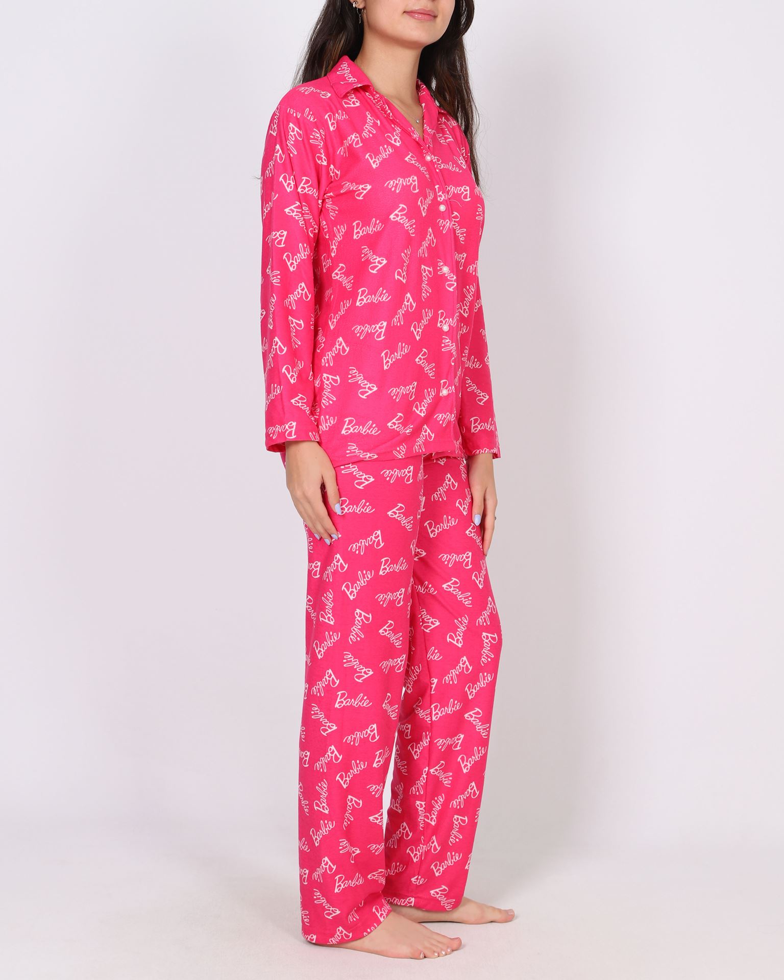Pembe Süet Düğmeli Pijama Takımı PJM1801