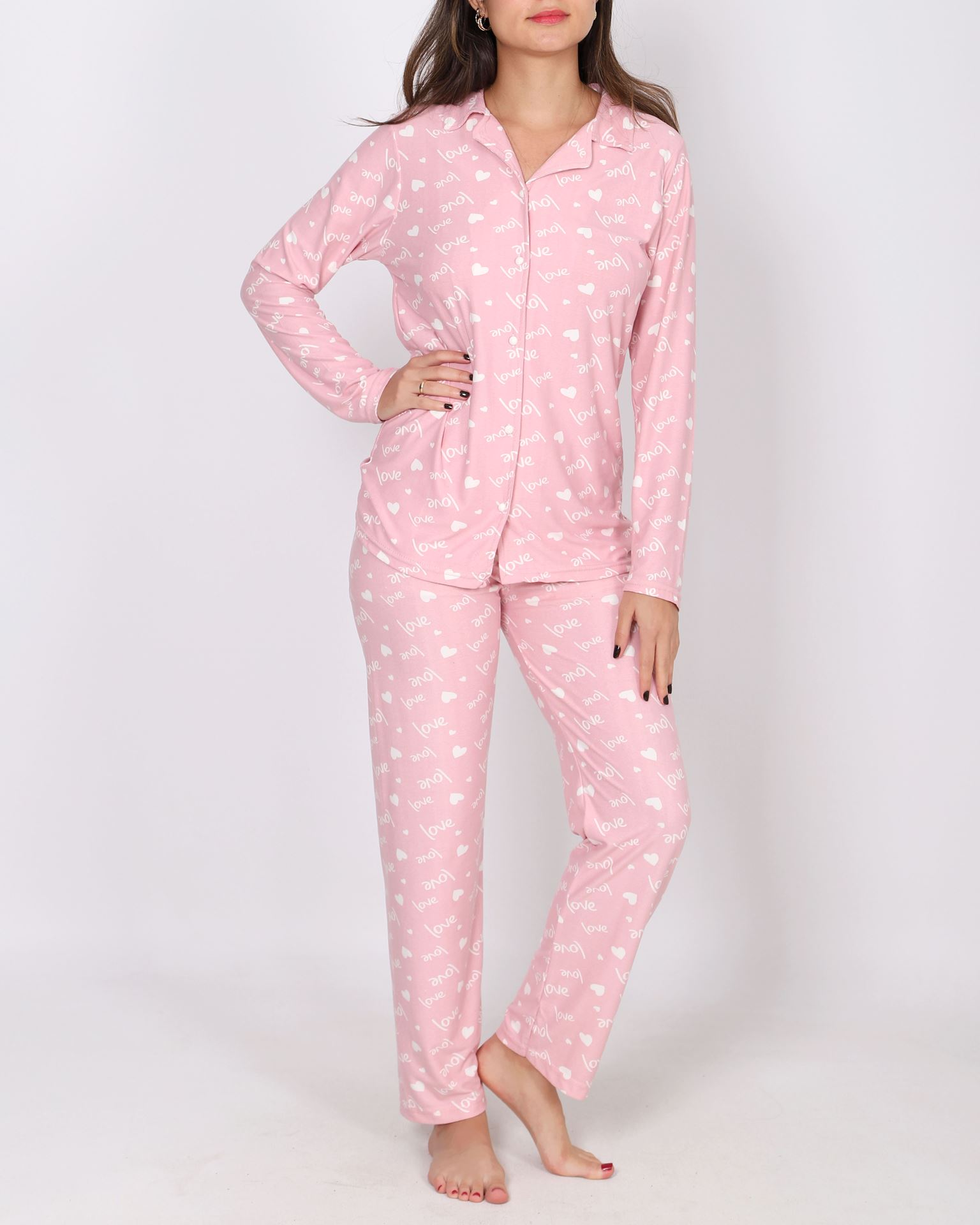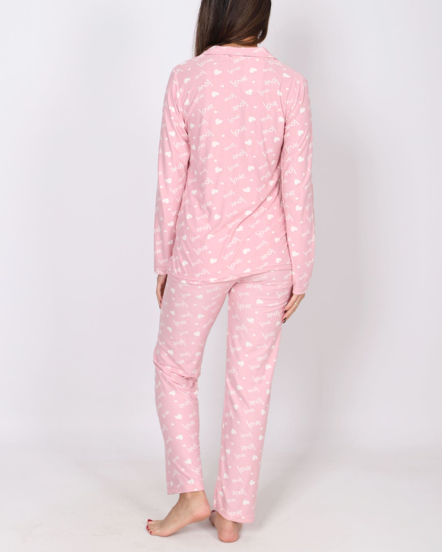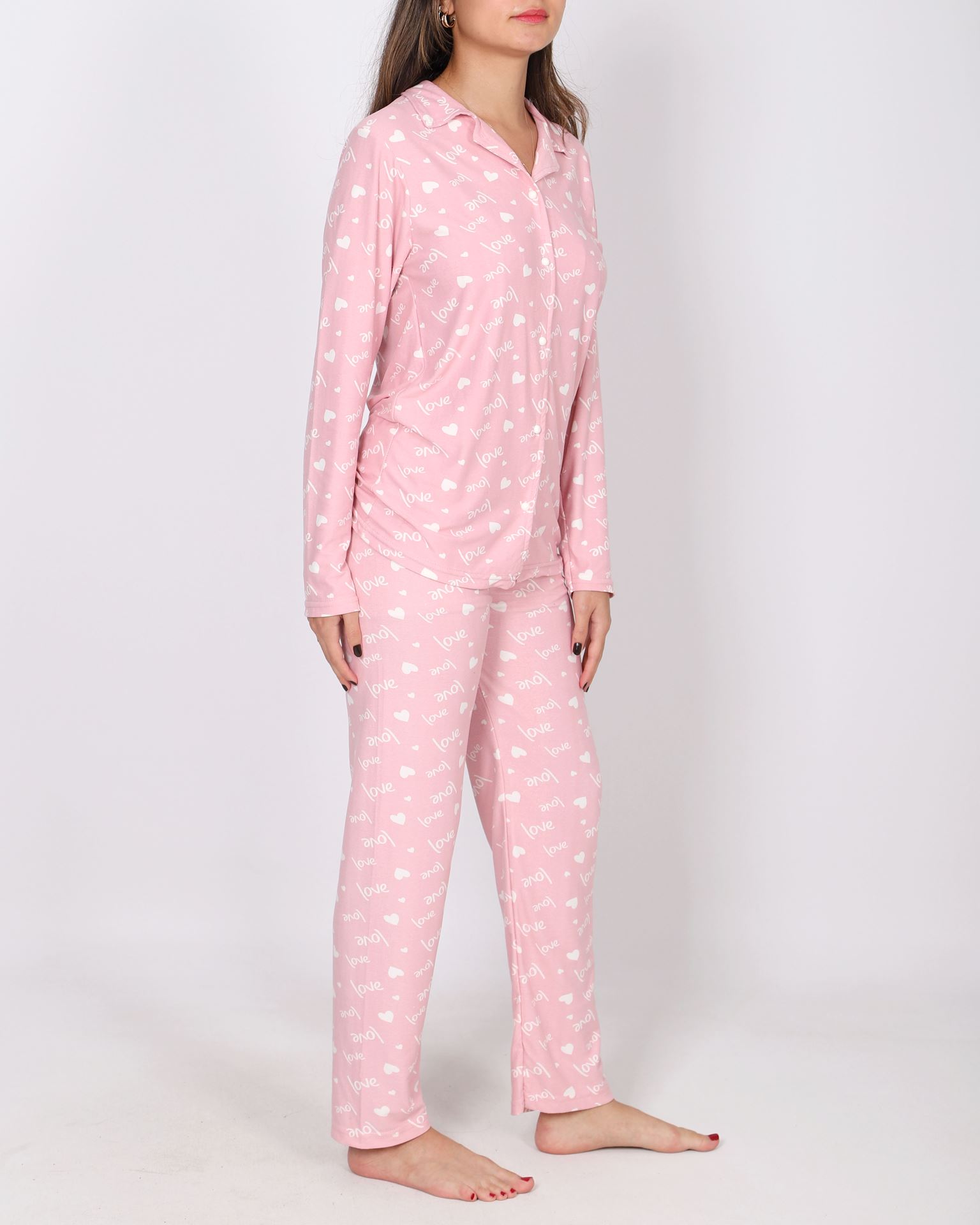 Pembe Süet Düğmeli Pijama Takımı PJM2080