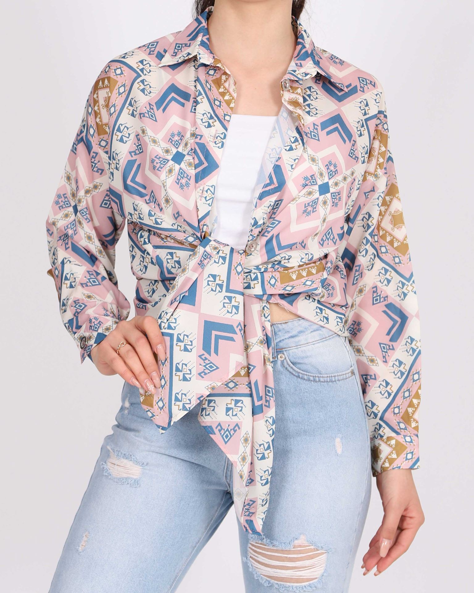 Pudra Desenli Saten Gömlek GML081