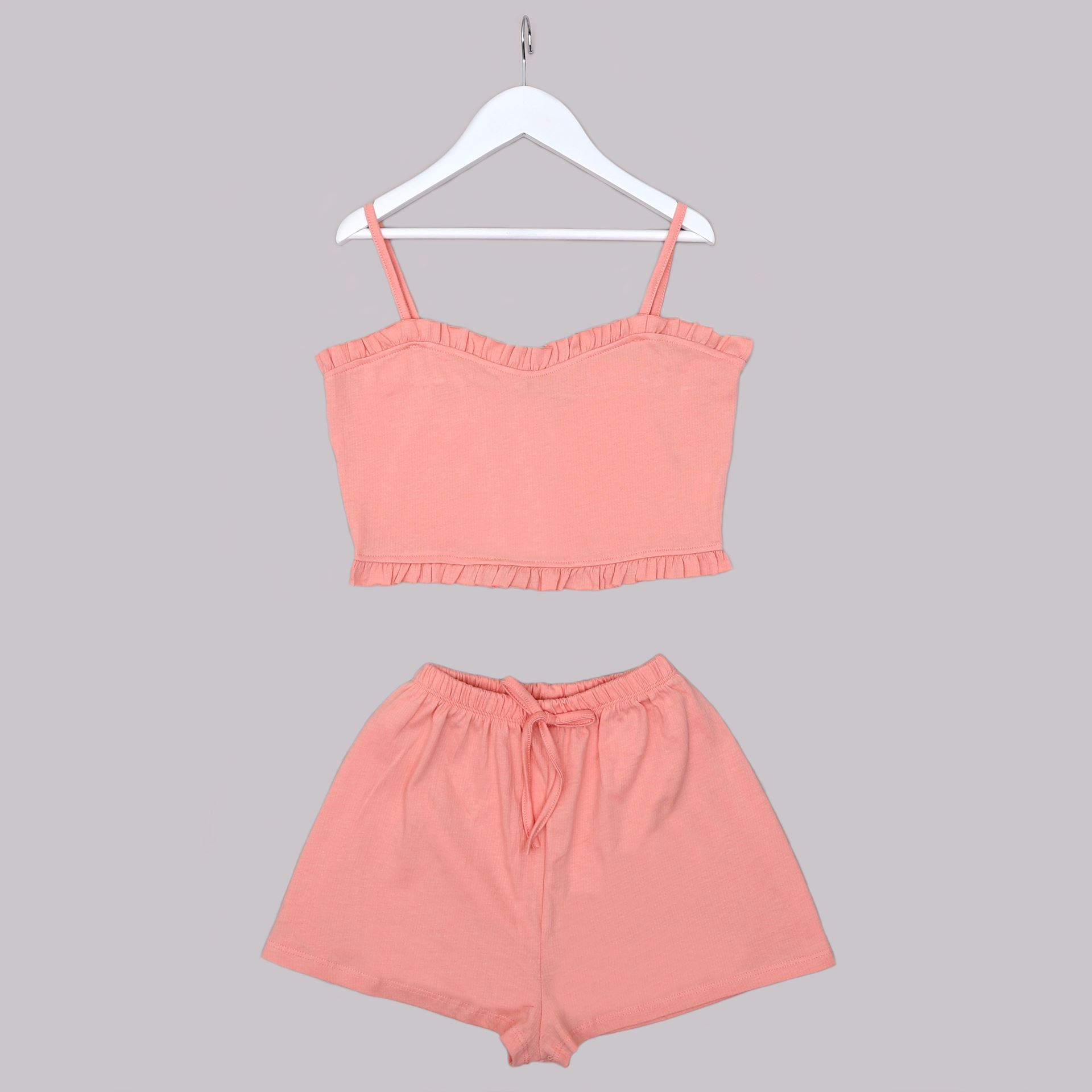 Pudra Fırfırlı Pijama Takımı PJM1406