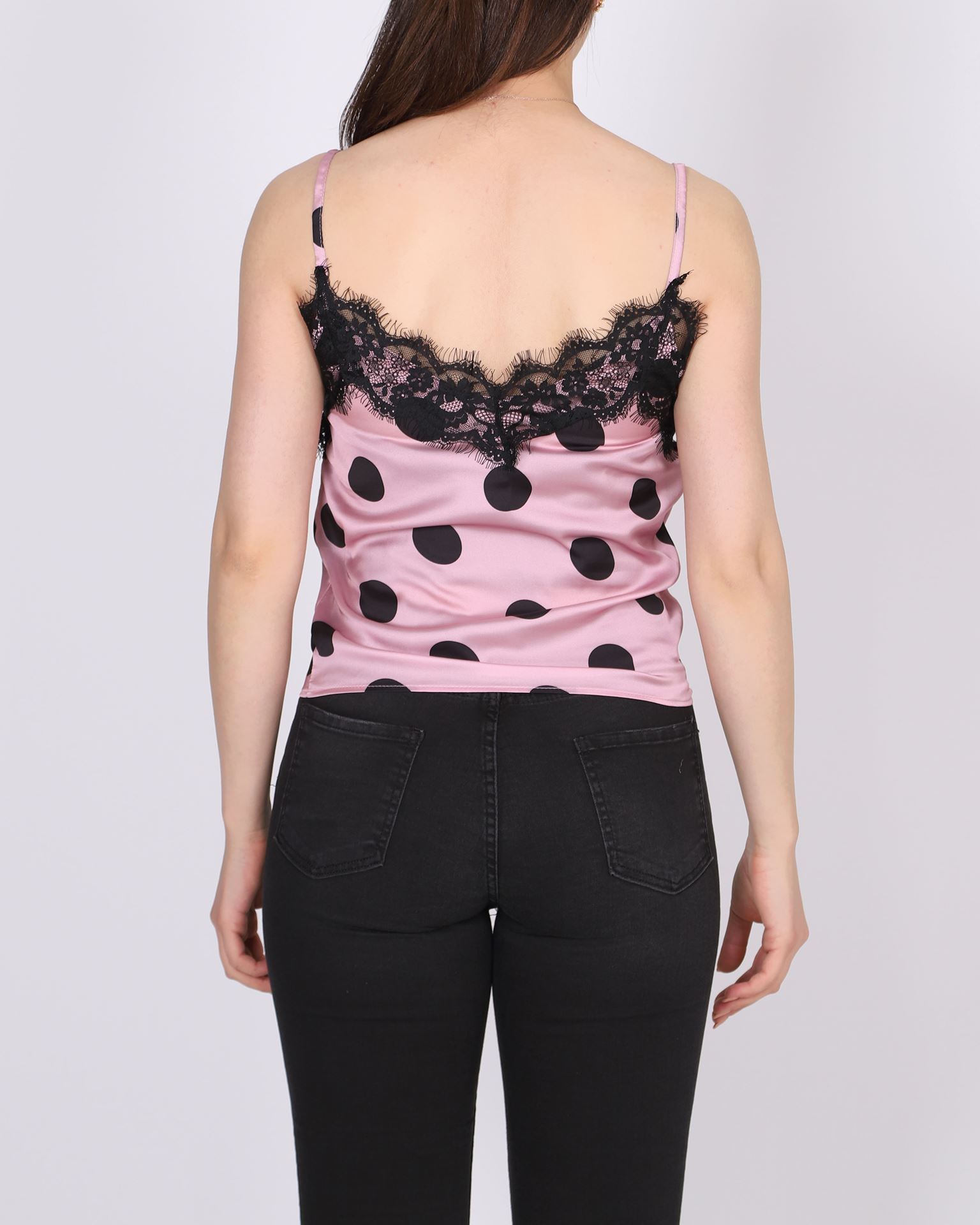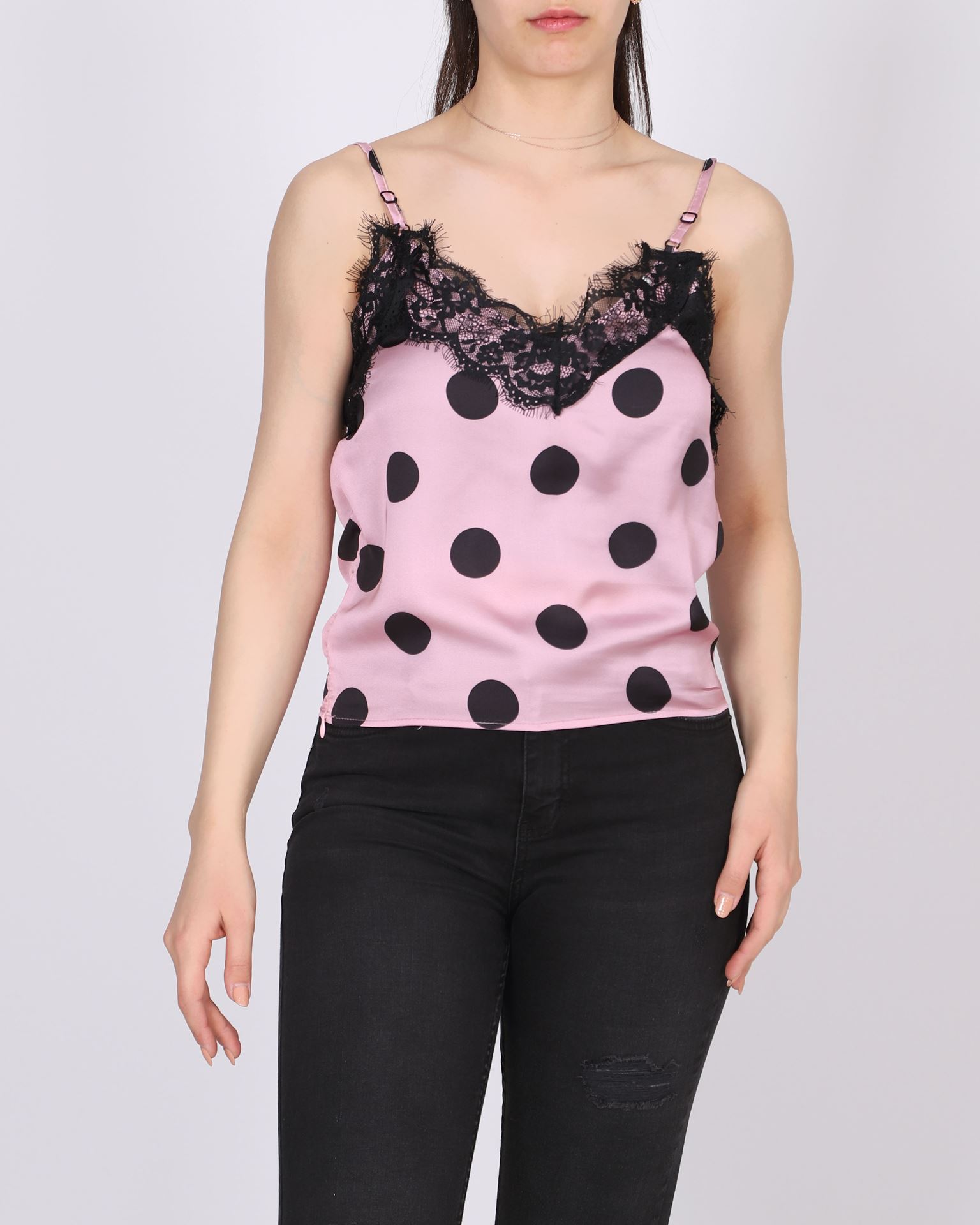 Pudra Puantiyeli Dantelli Bluz BLZ361