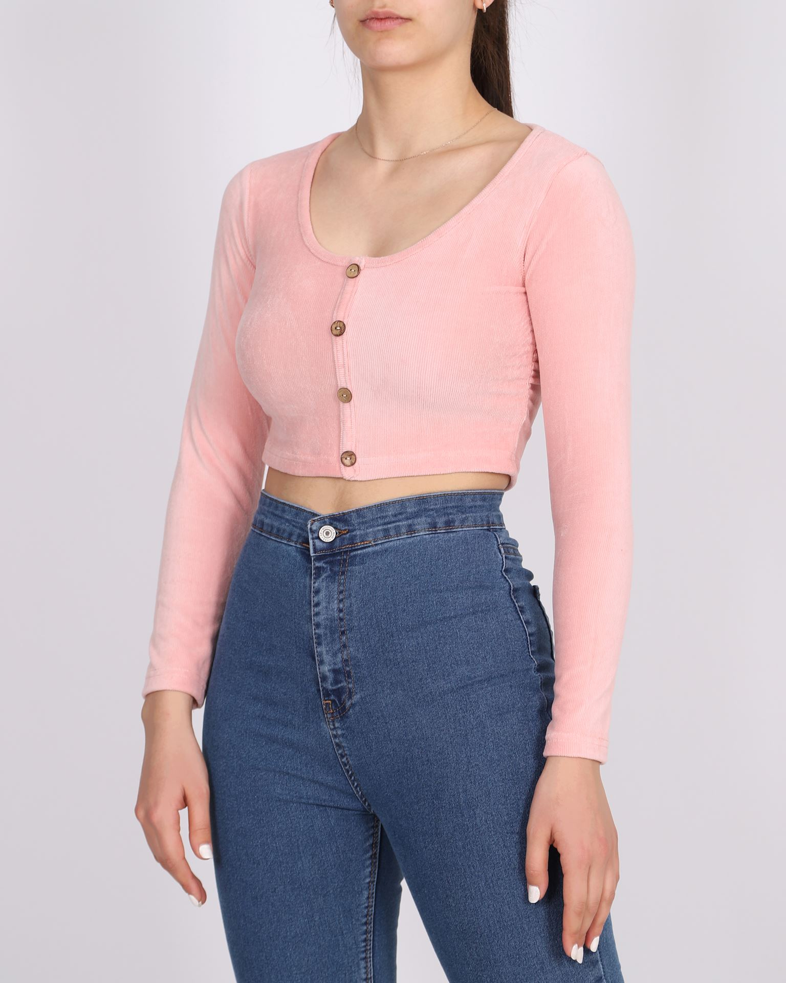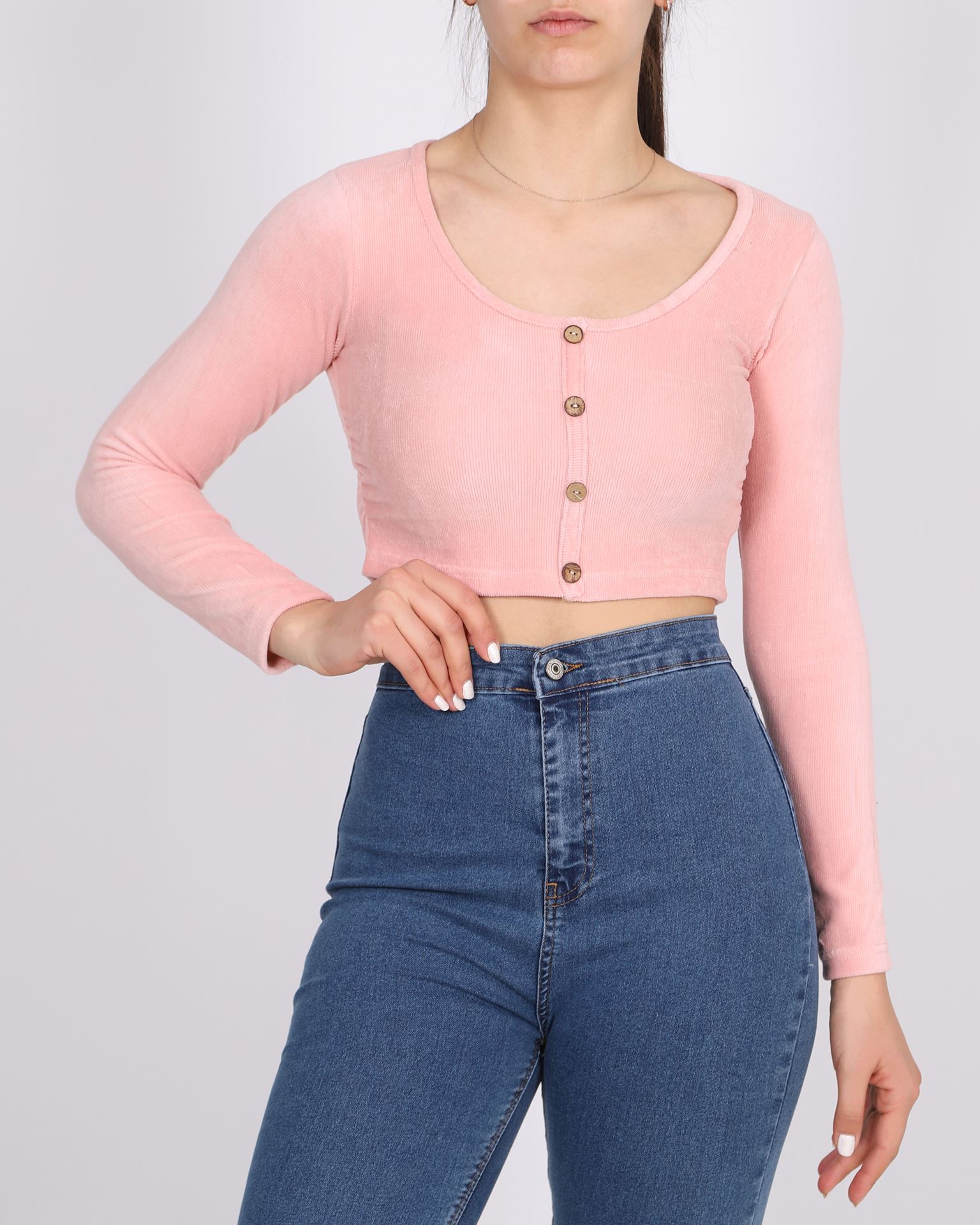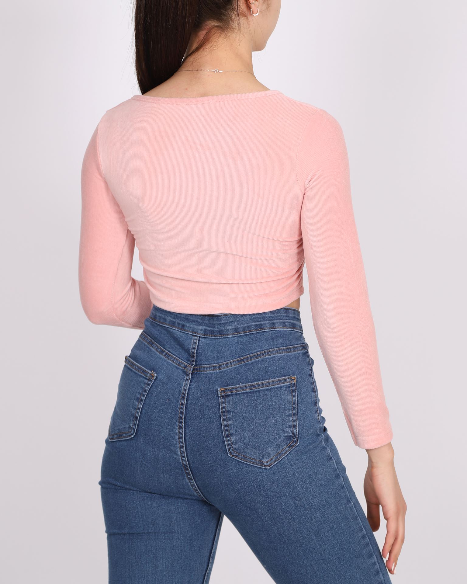Pudra Yanları Büzgülü Kadife Bluz BLZ308