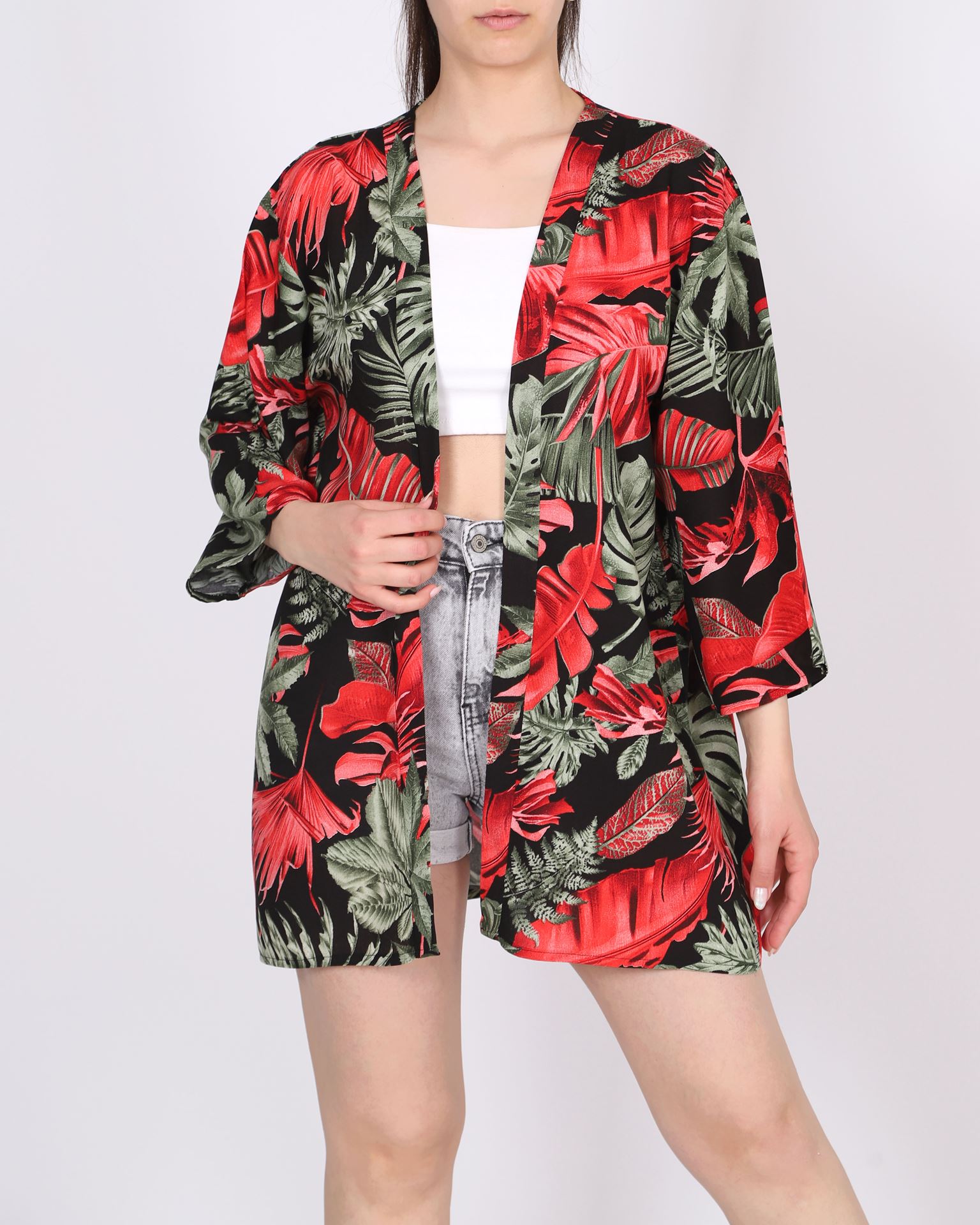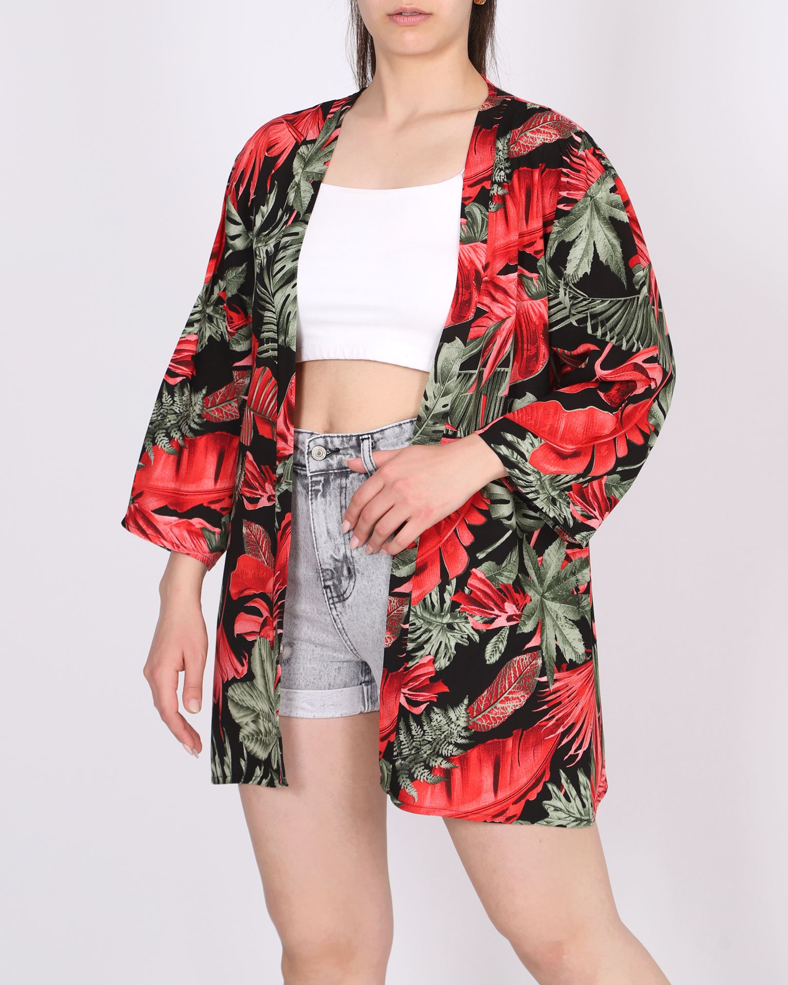 Renkli Desenli Dokuma Viskon Kimono CKT462