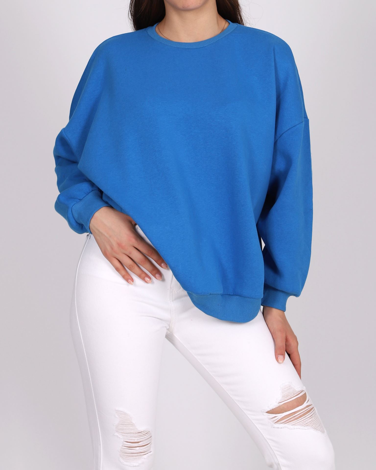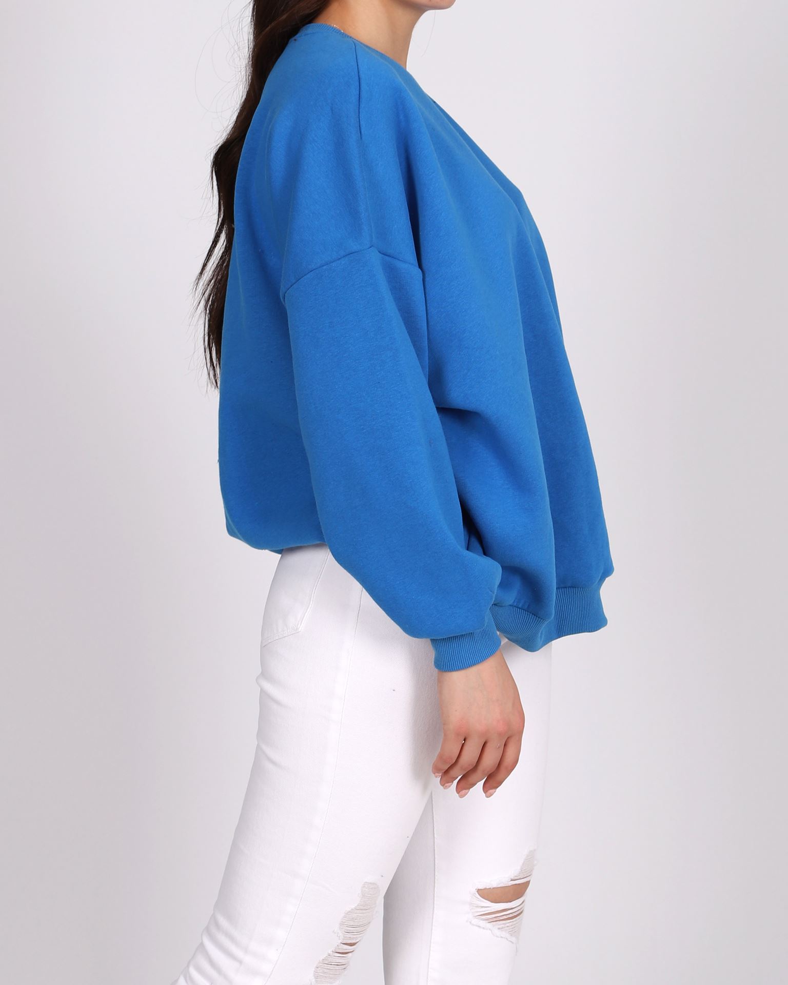Saks Mavisi Bisiklet Yaka Oversize Sweat SWT741