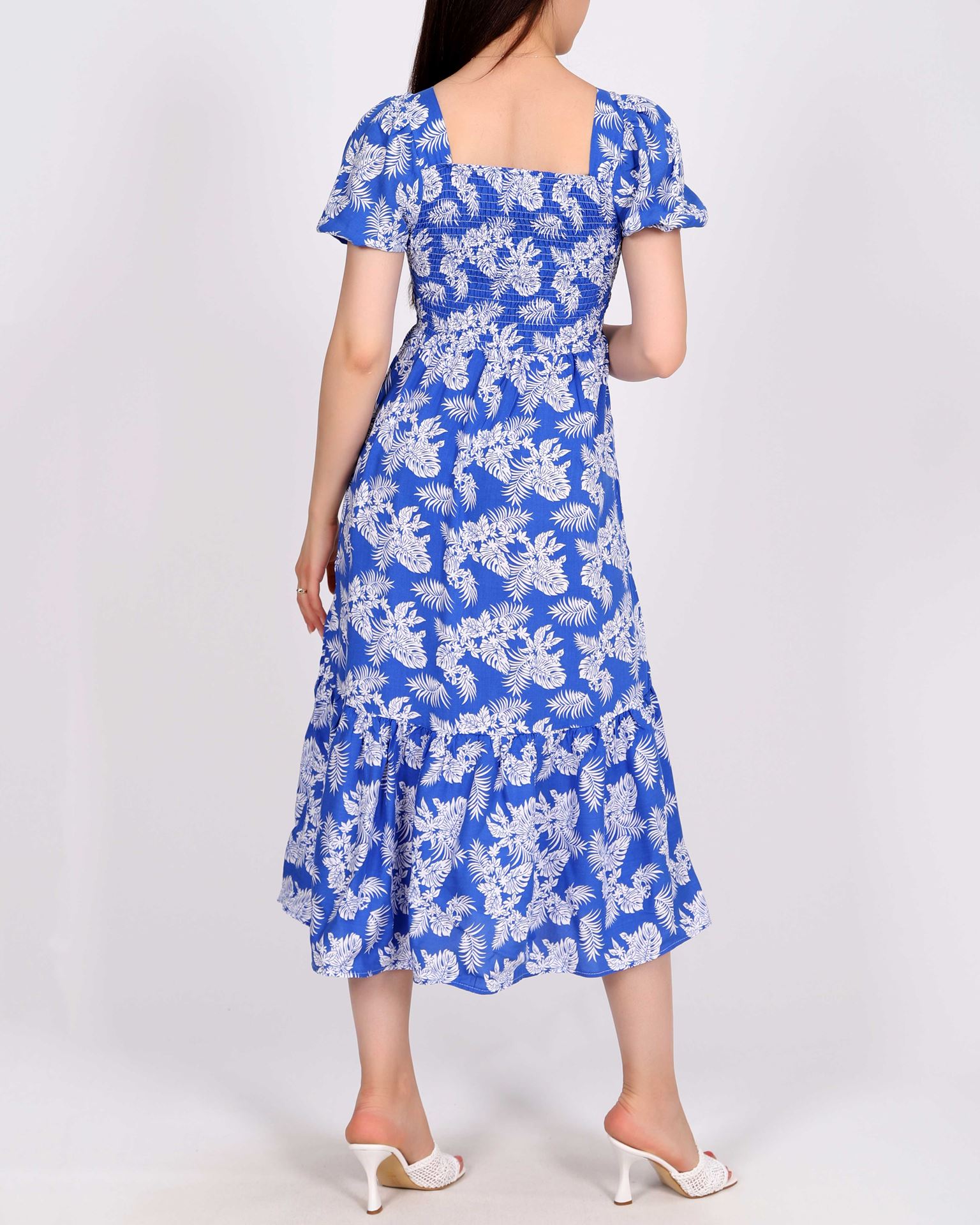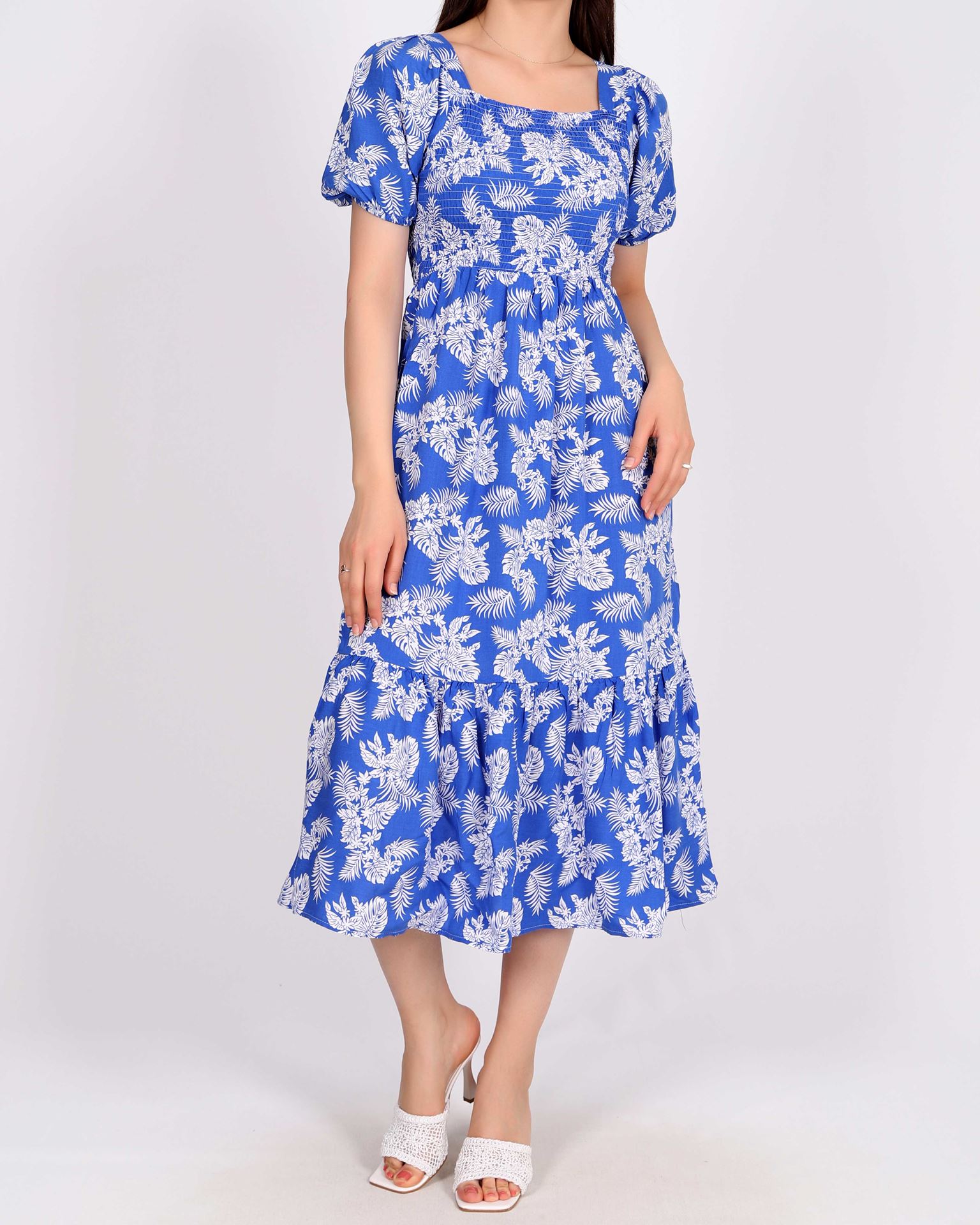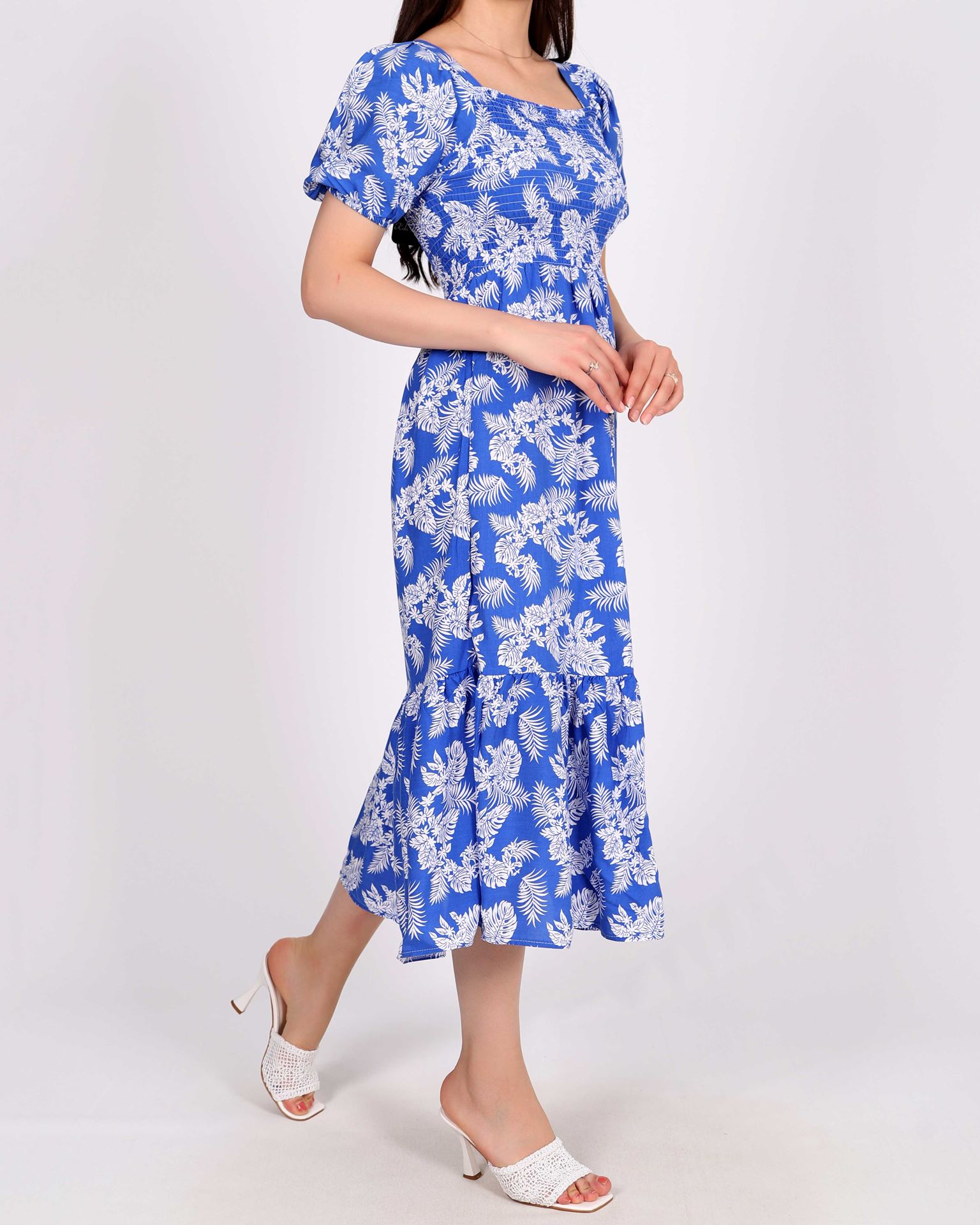 Saks Mavisi Desenli Gipeli Elbise ELB910