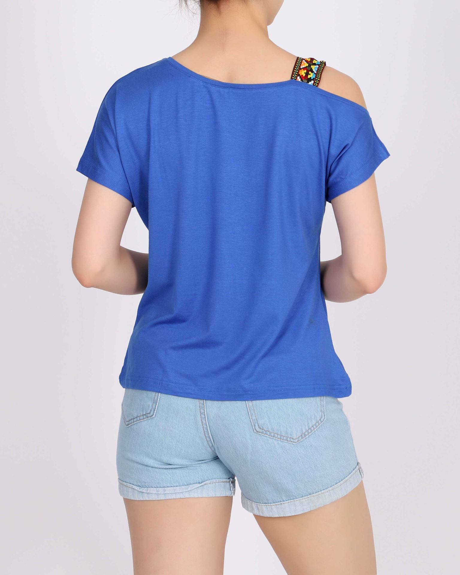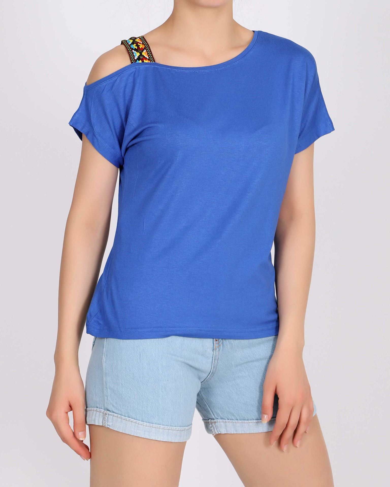 Saks Mavisi Omuz Tasarımlı Bluz BLZ190