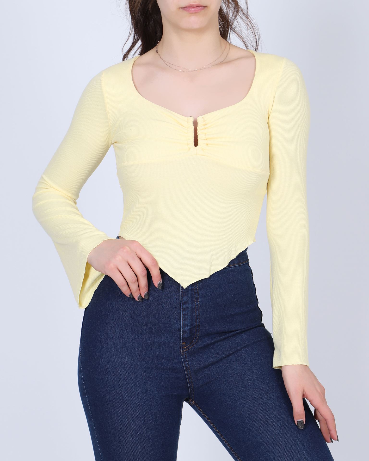 Sarı Asimetrik Kesim Bluz BLZ325
