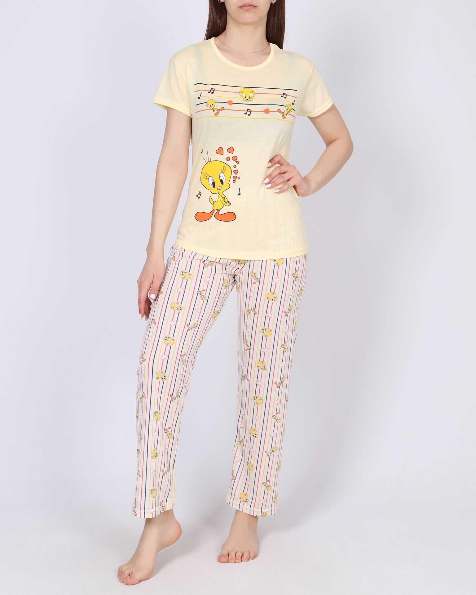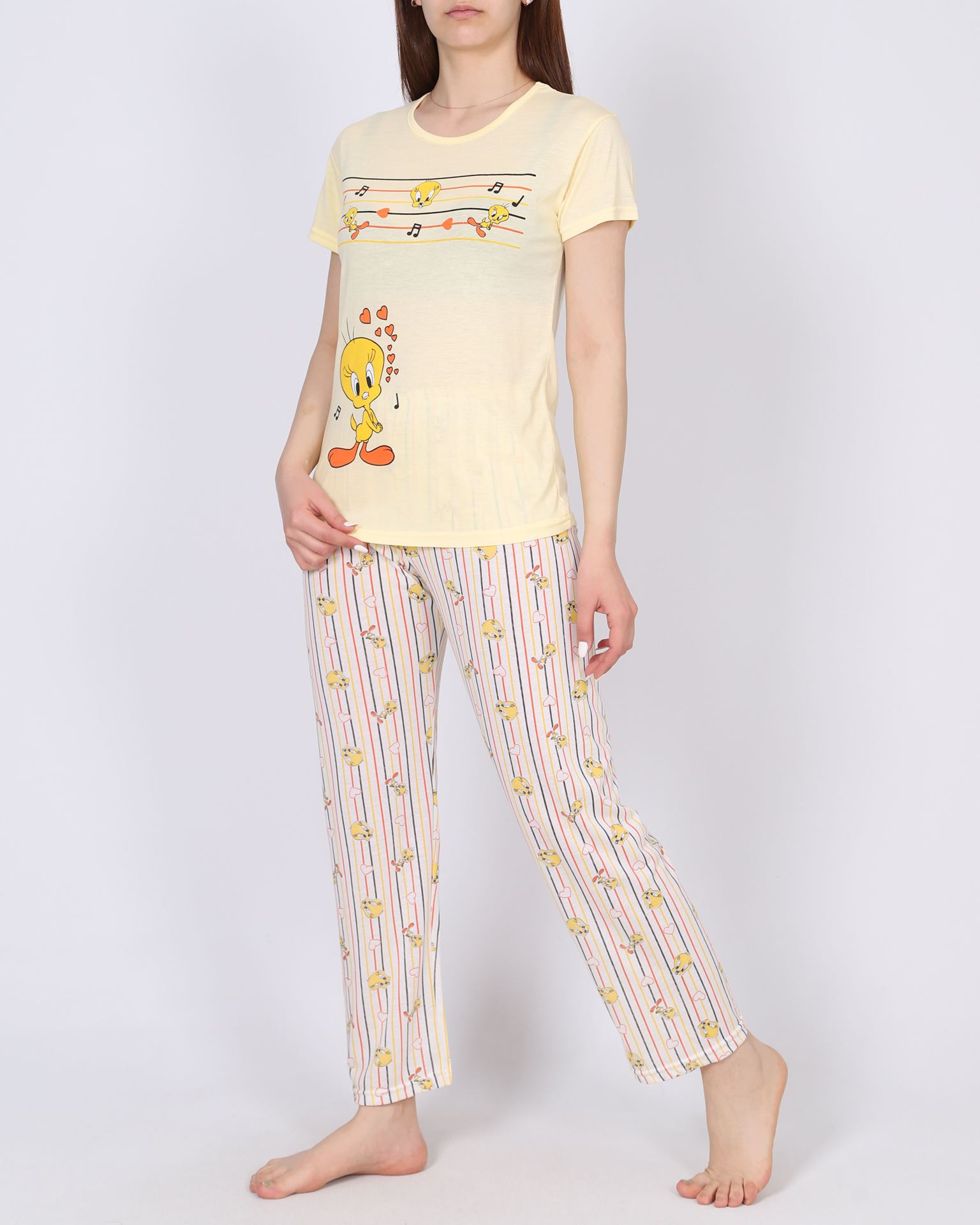 Sarı Desenli Pijama Takımı PJM1644