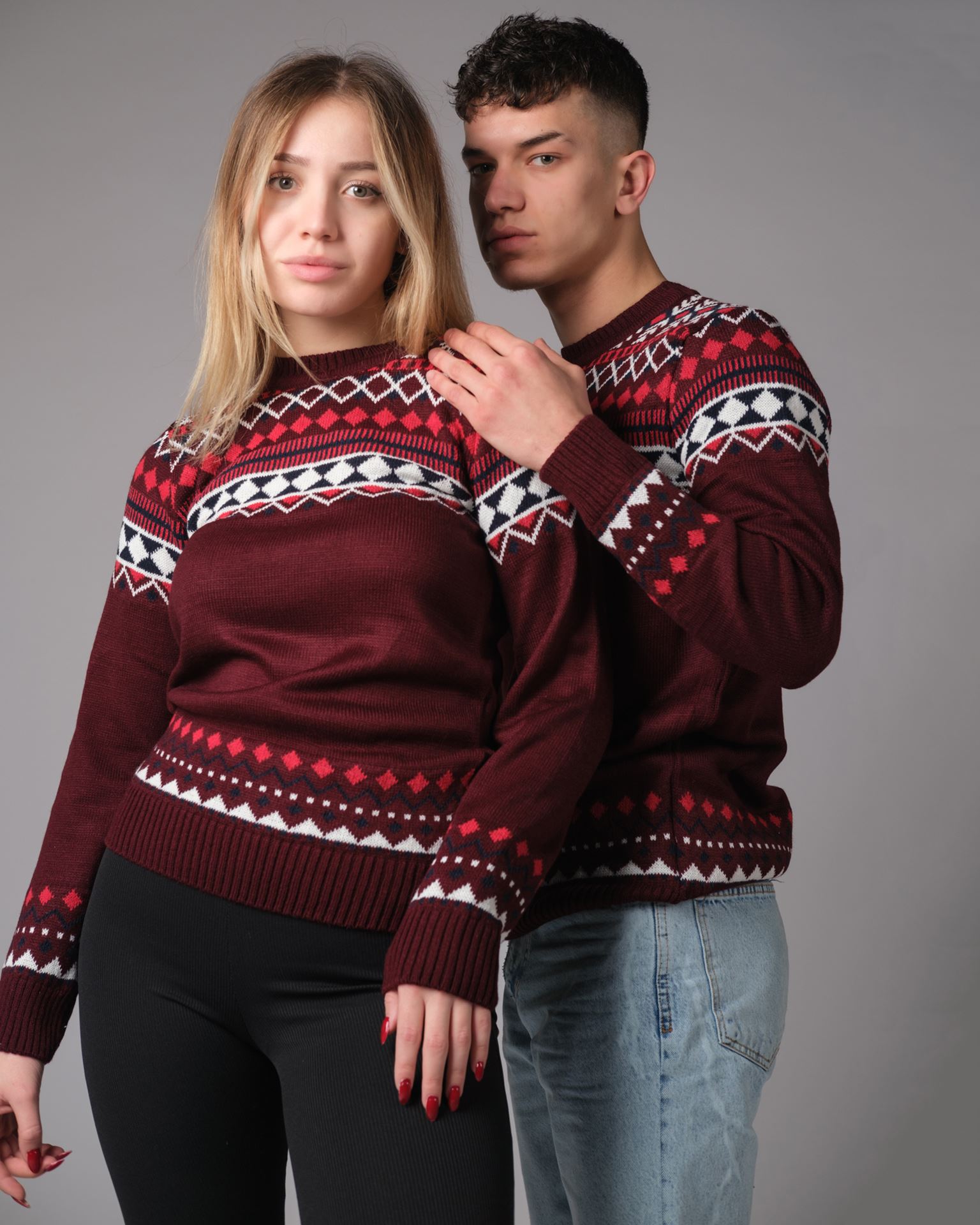 Bordo Desenli Triko Sevgili Kombini SVG391