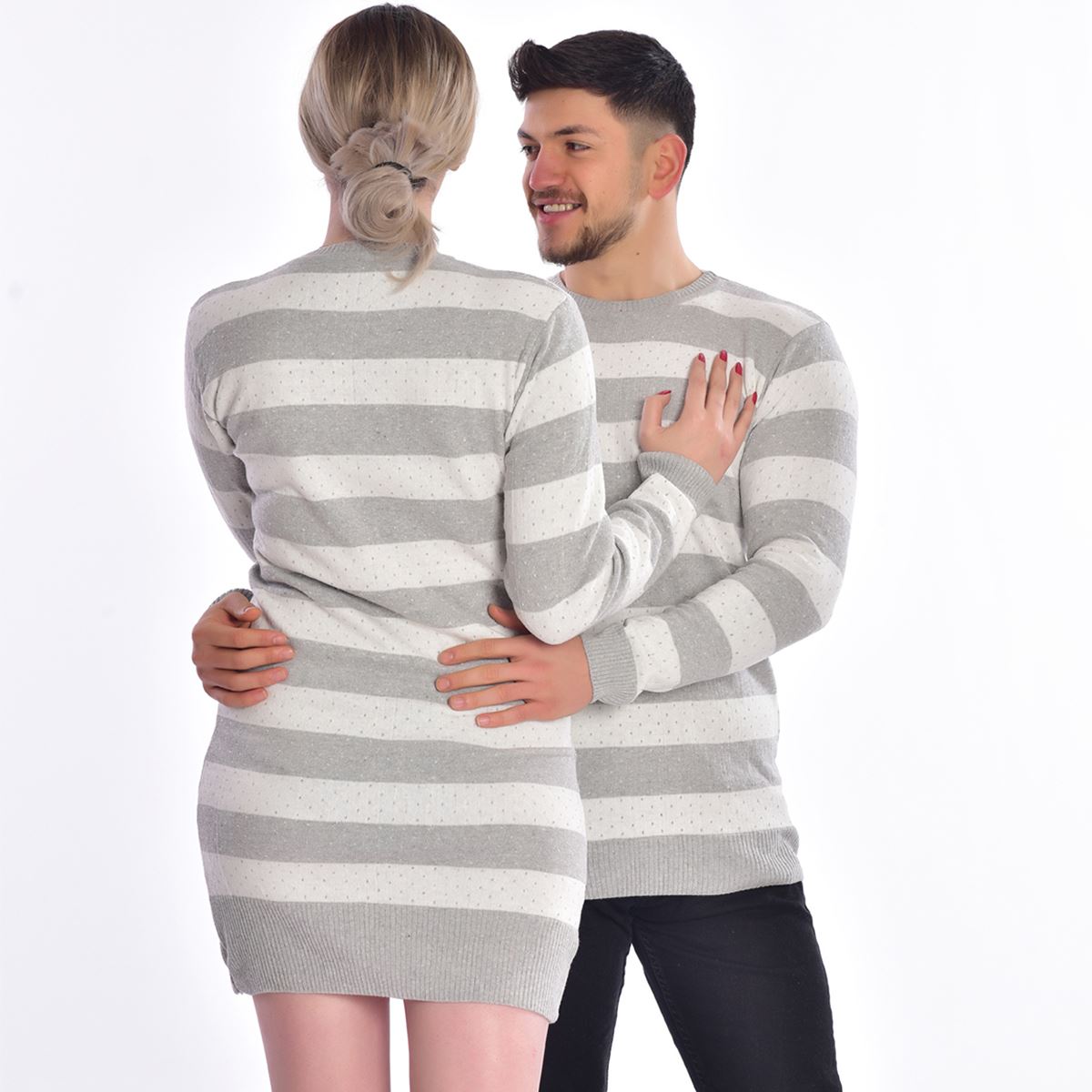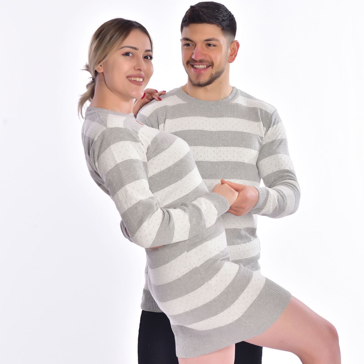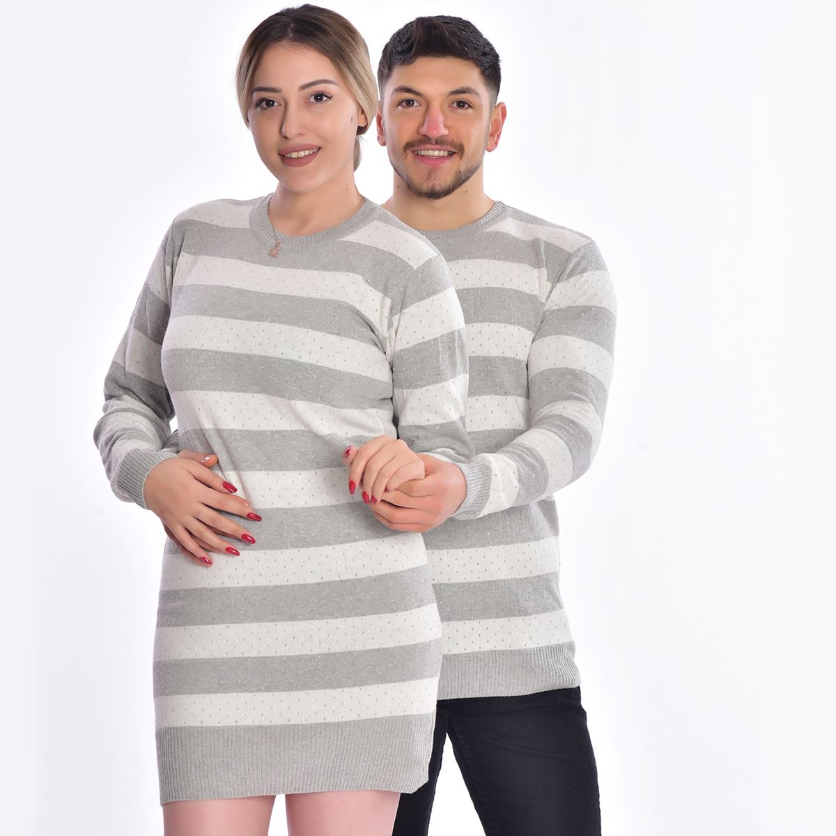 Sevgili Kombini Gri Çizgili Triko Kazak SVG358