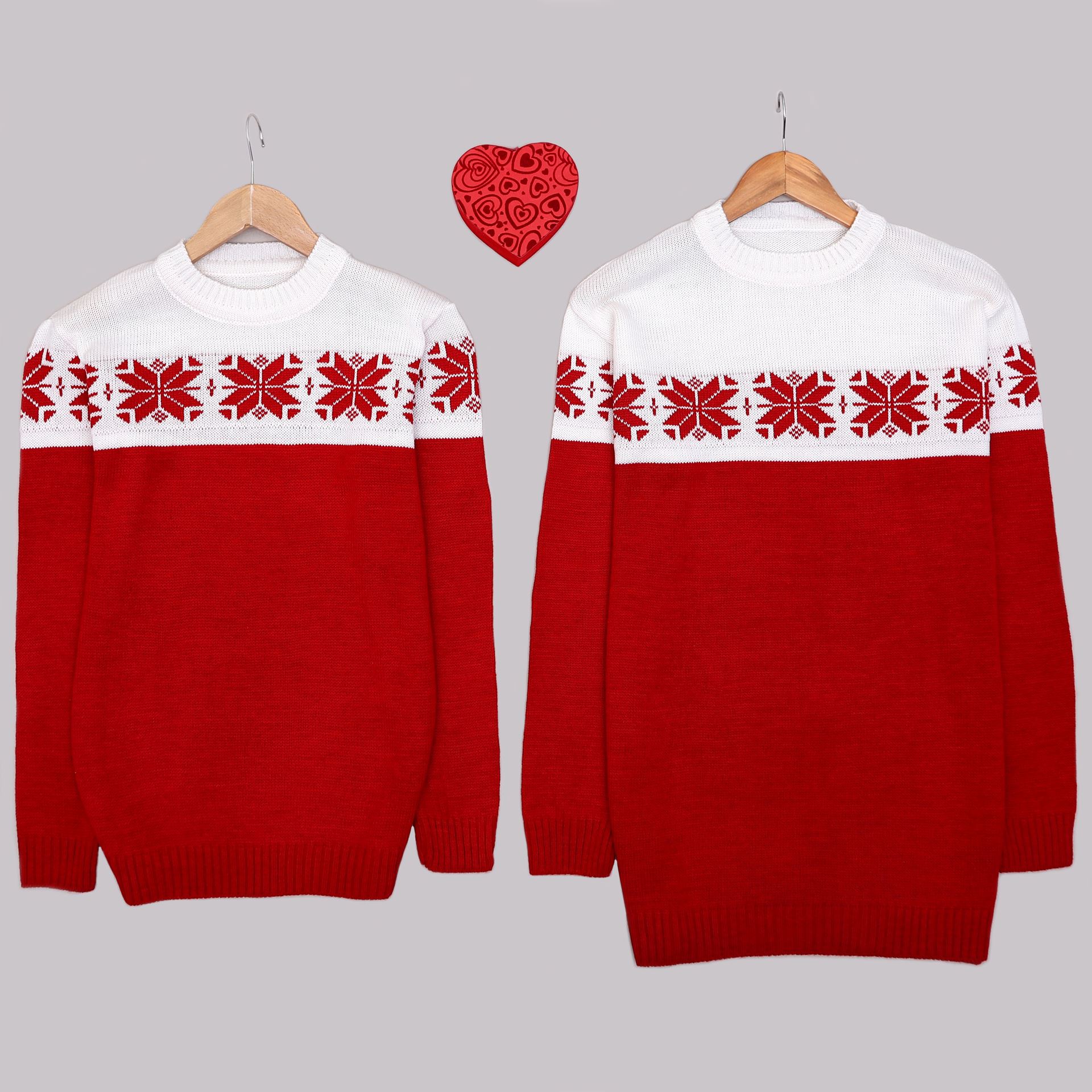 Sevgili Kombini Kırmızı Nakışlı Triko Sevgili Kombini SVG019