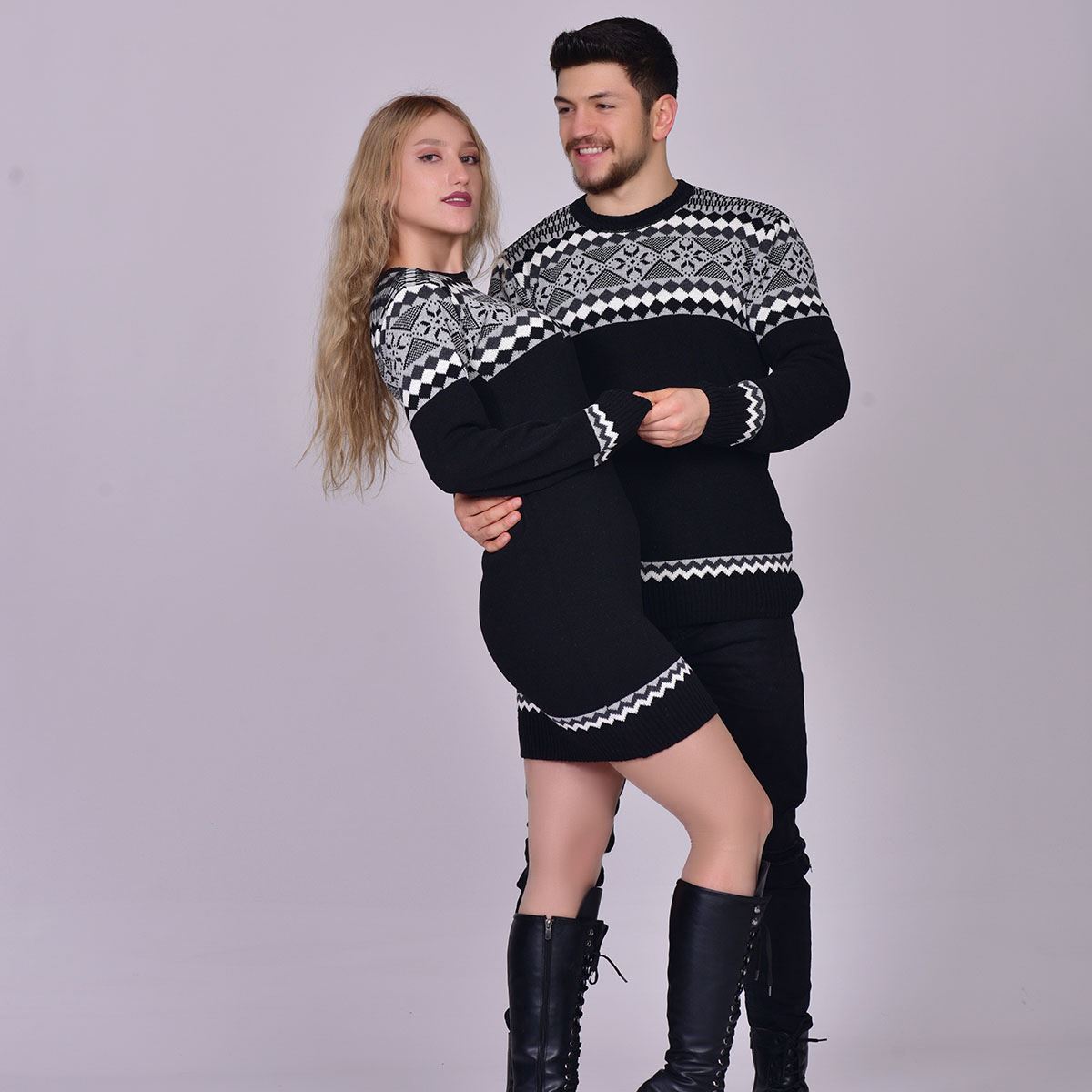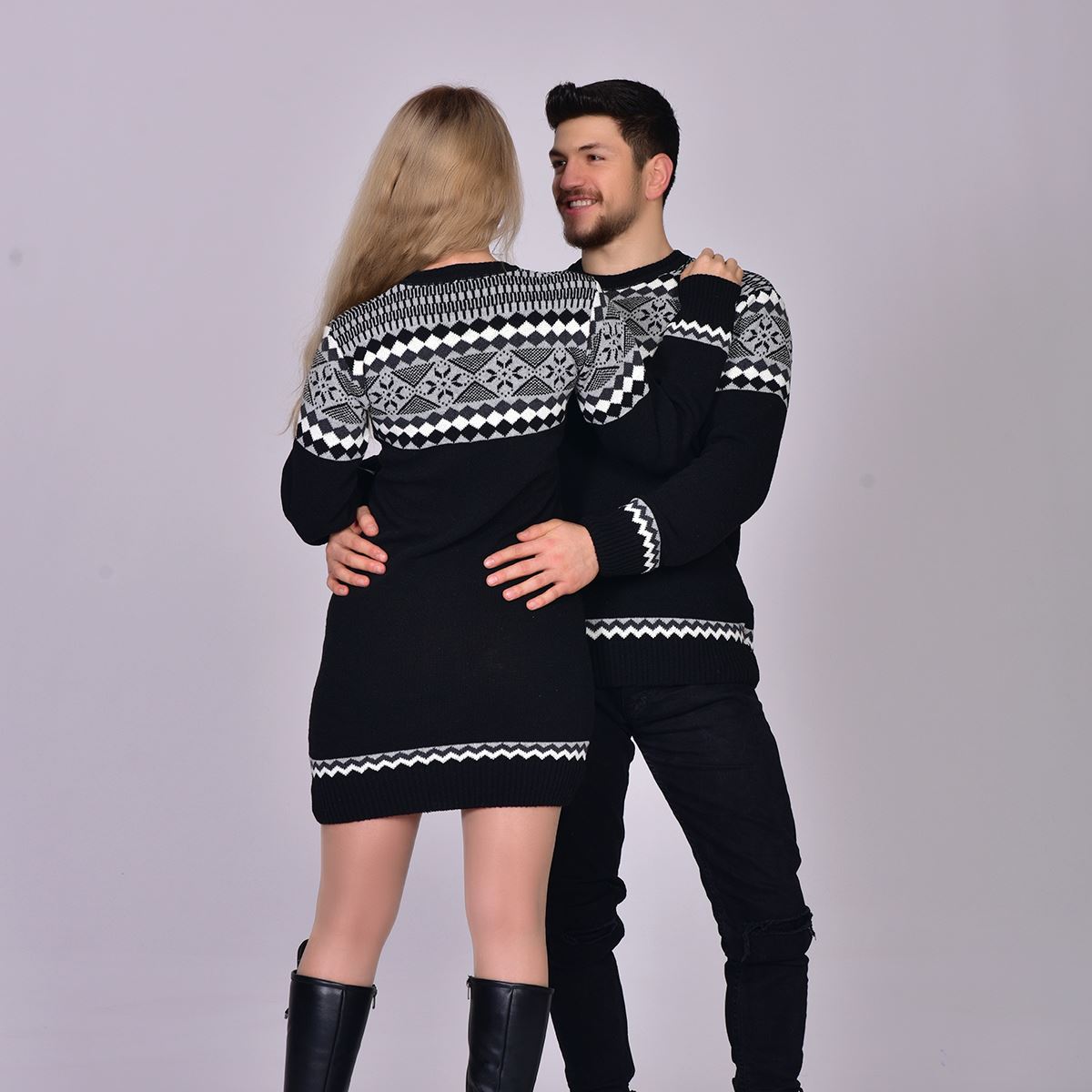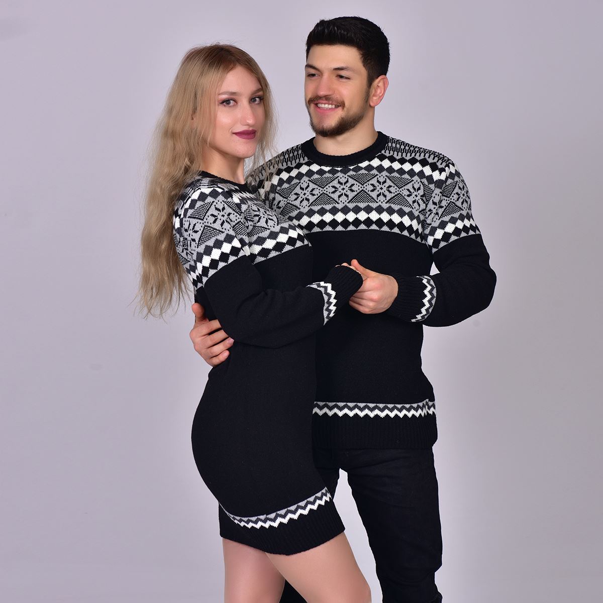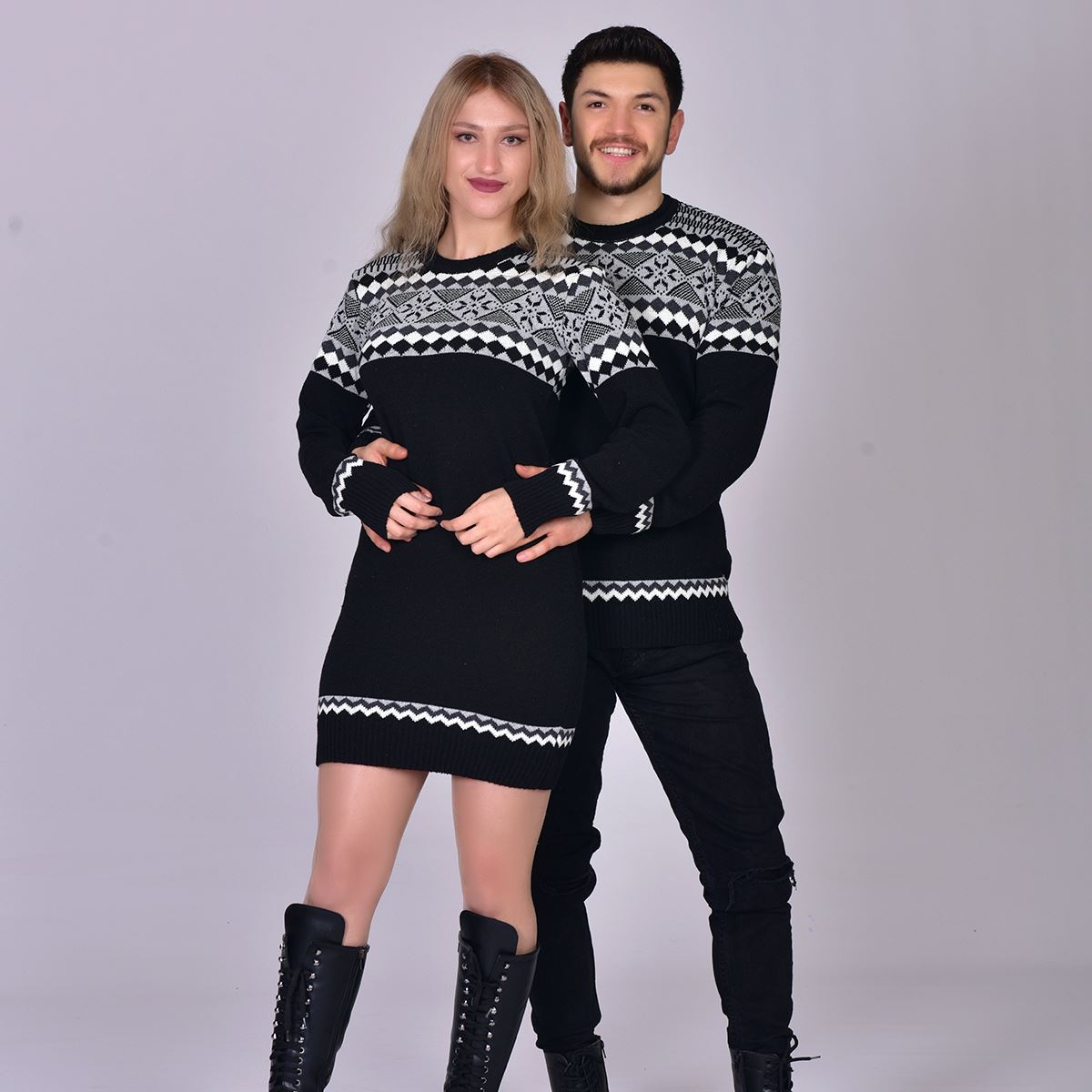 Sevgili Kombini Siyah Nakışlı Triko Kazak SVG342