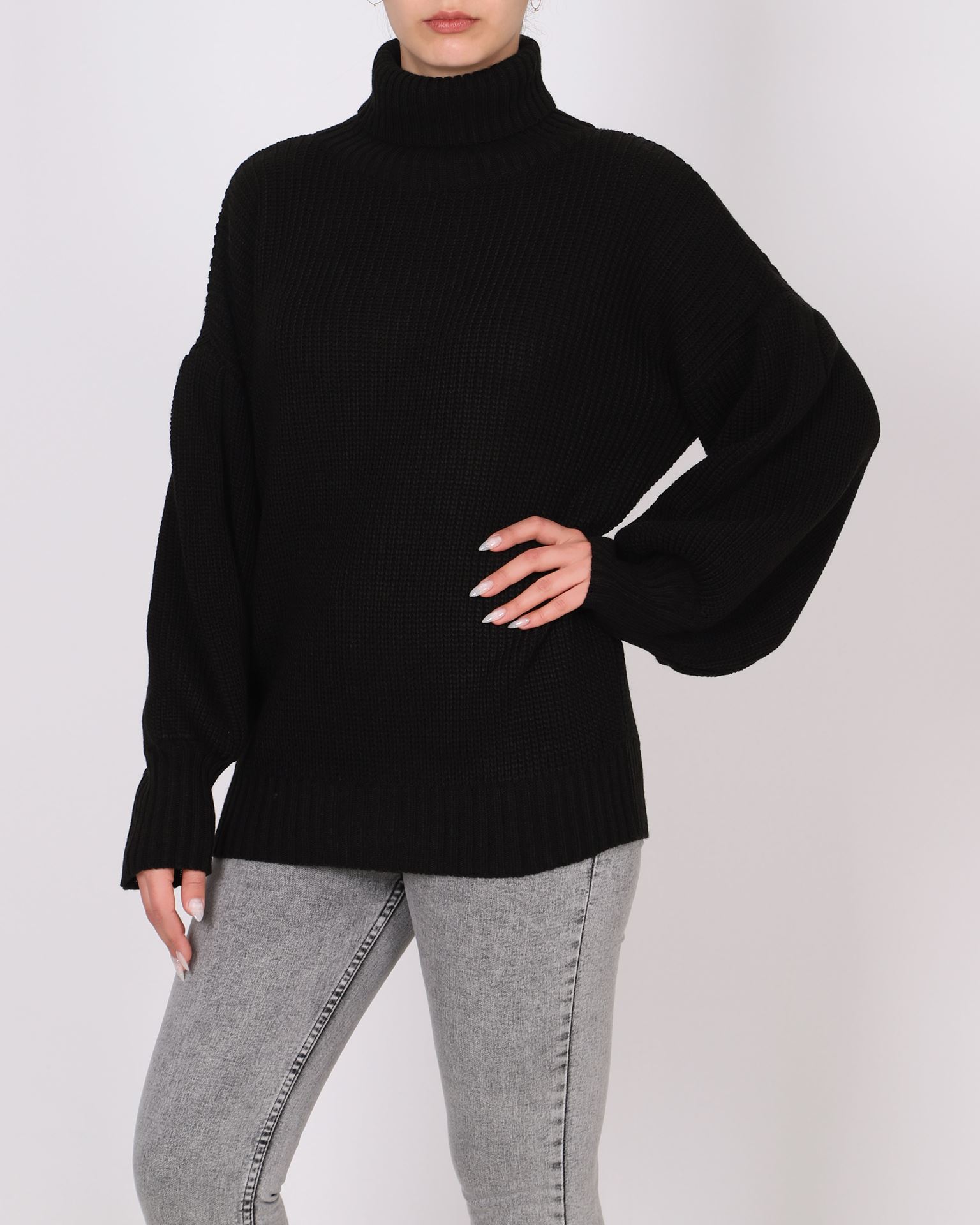 Siyah Balon Kol Boğazlı Kazak KZK642