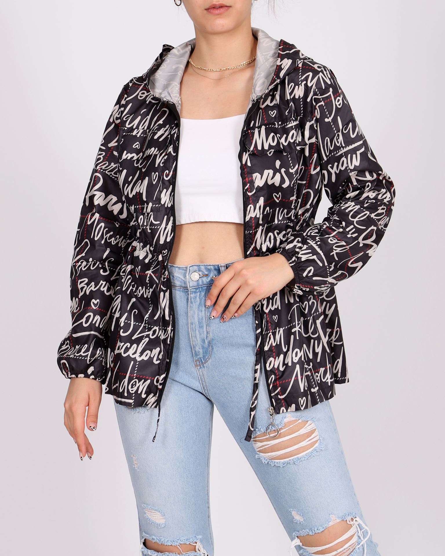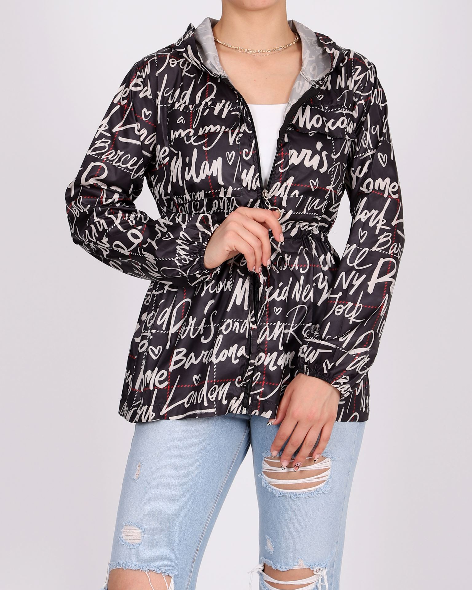 Siyah Belden Sıkmalı Yağmurluk CKT374