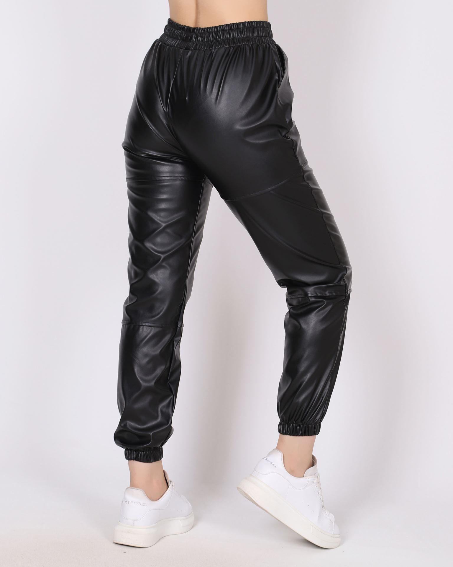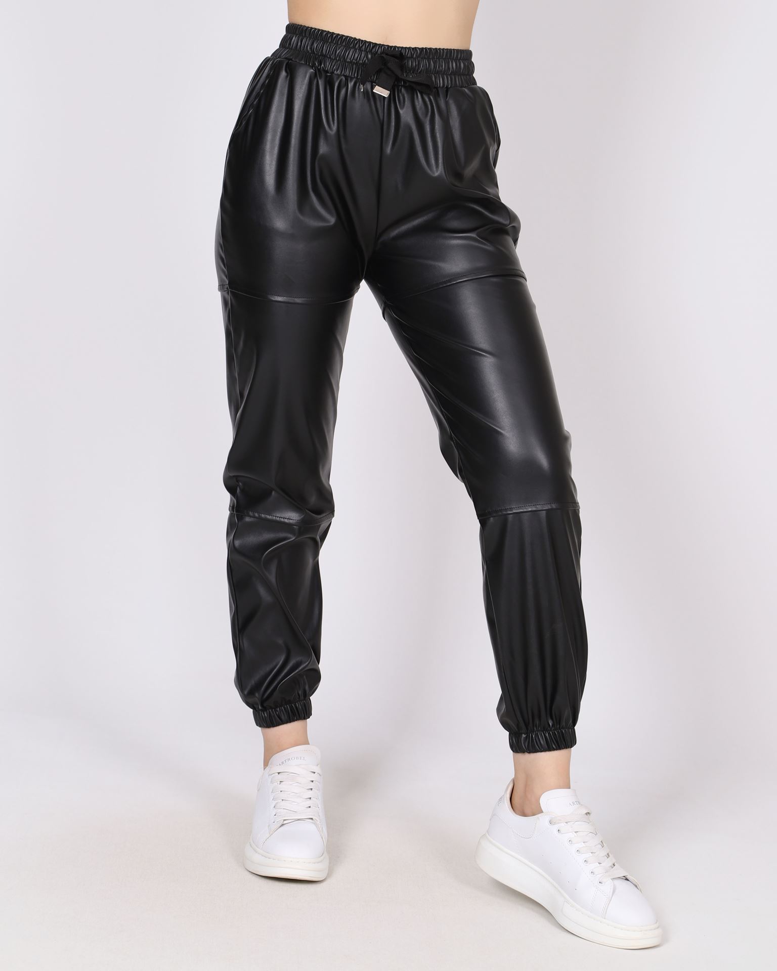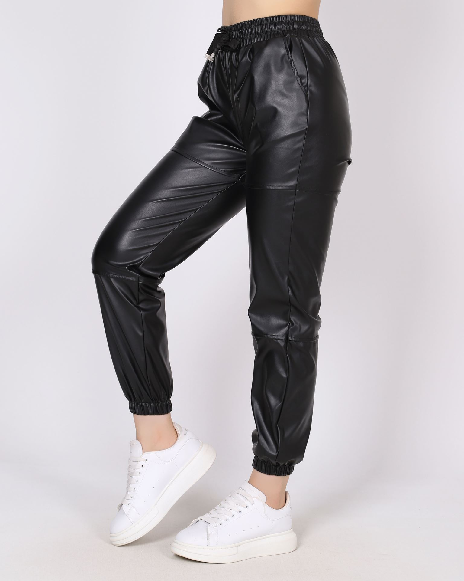 Siyah Beli Lastikli Deri Pantolon PNT740