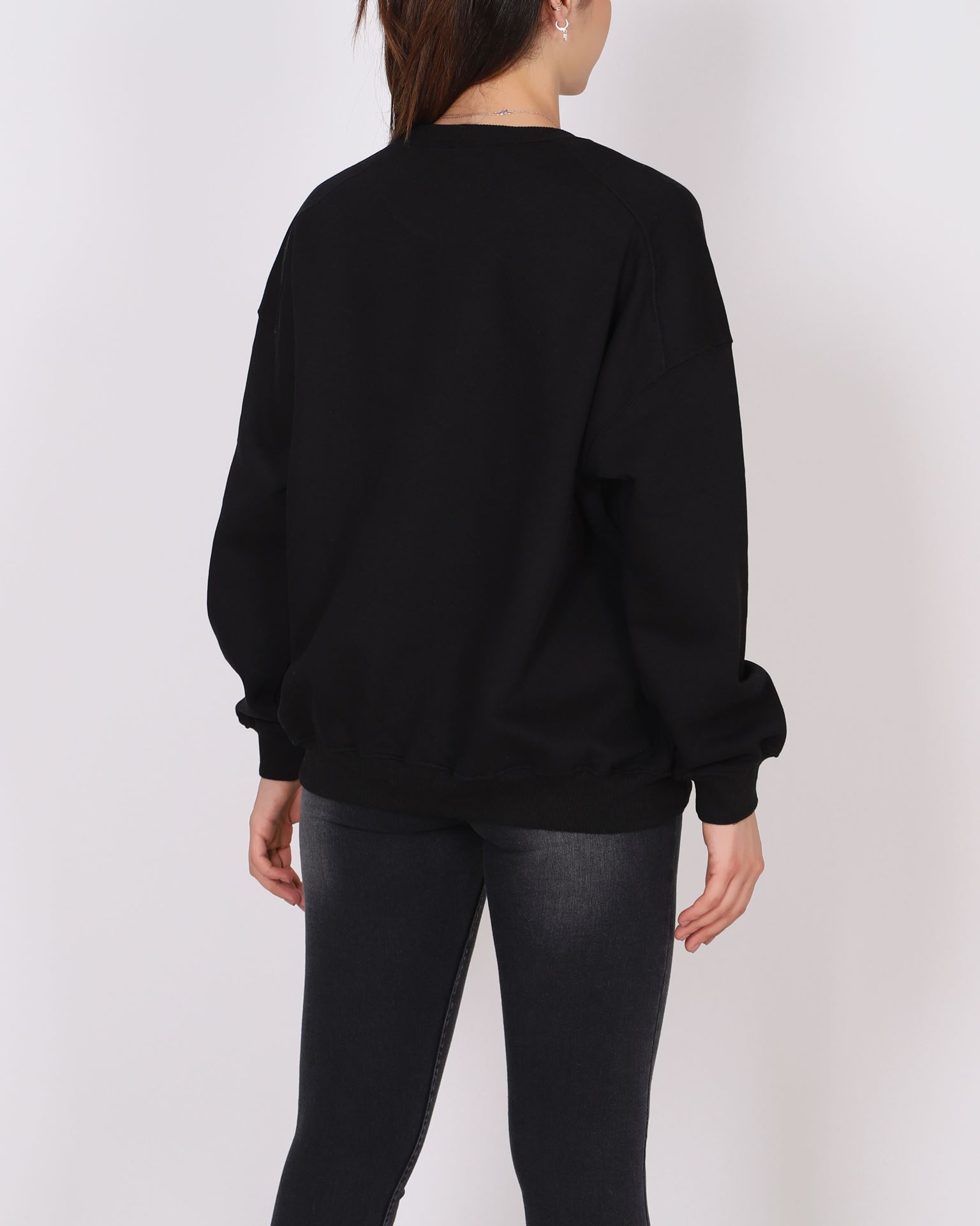 Siyah Bisiklet Yaka Oversize Sweat SWT968