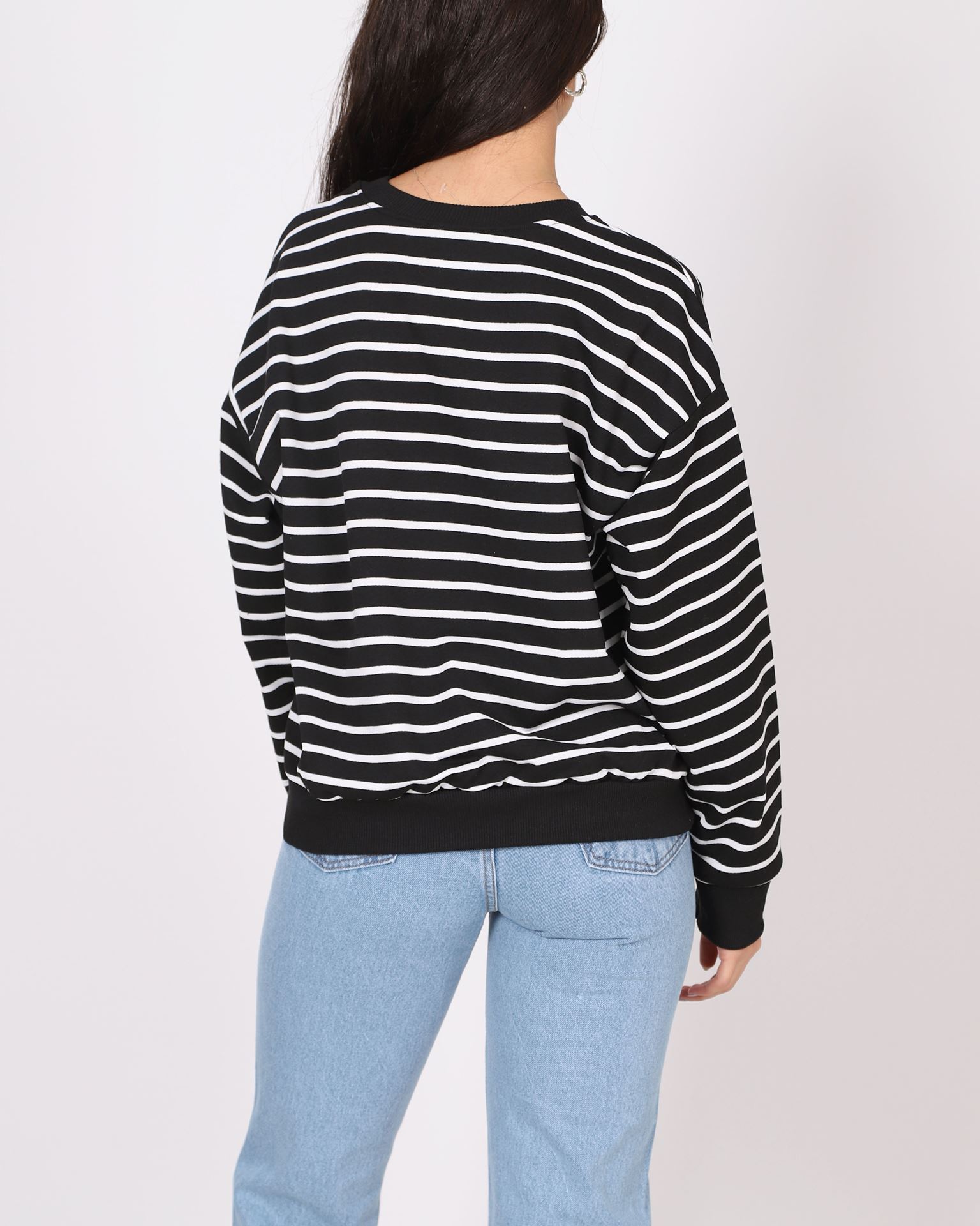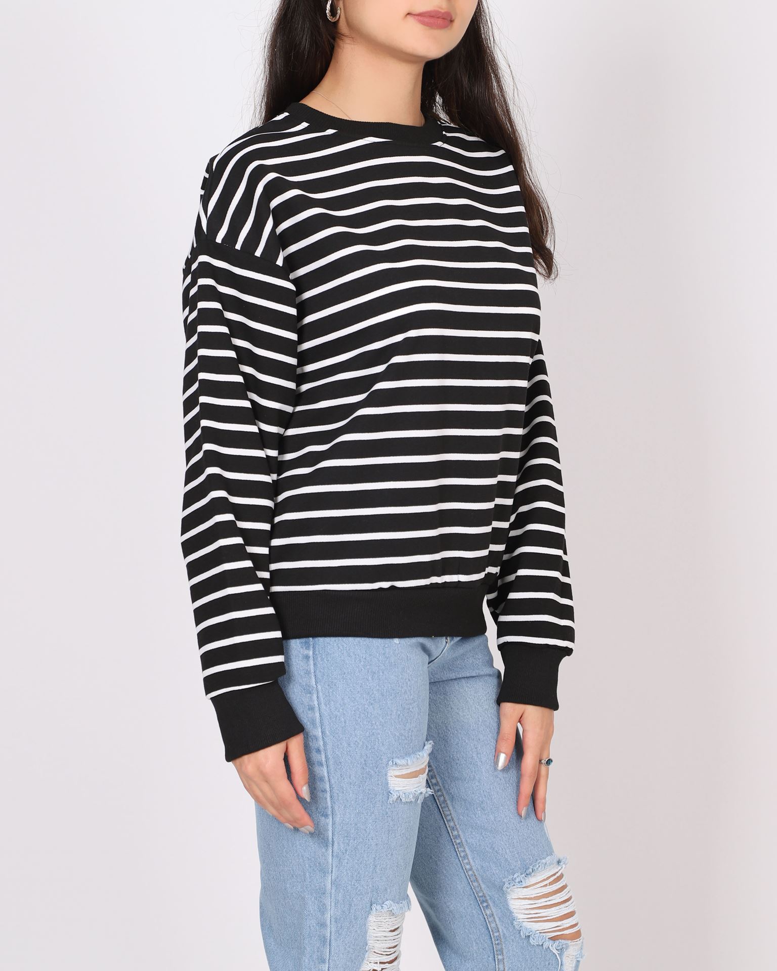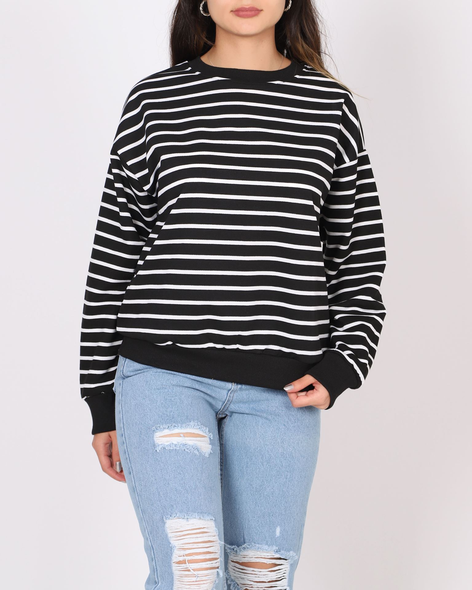 Siyah Çizgili Bisiklet Yaka Sweat SWT765
