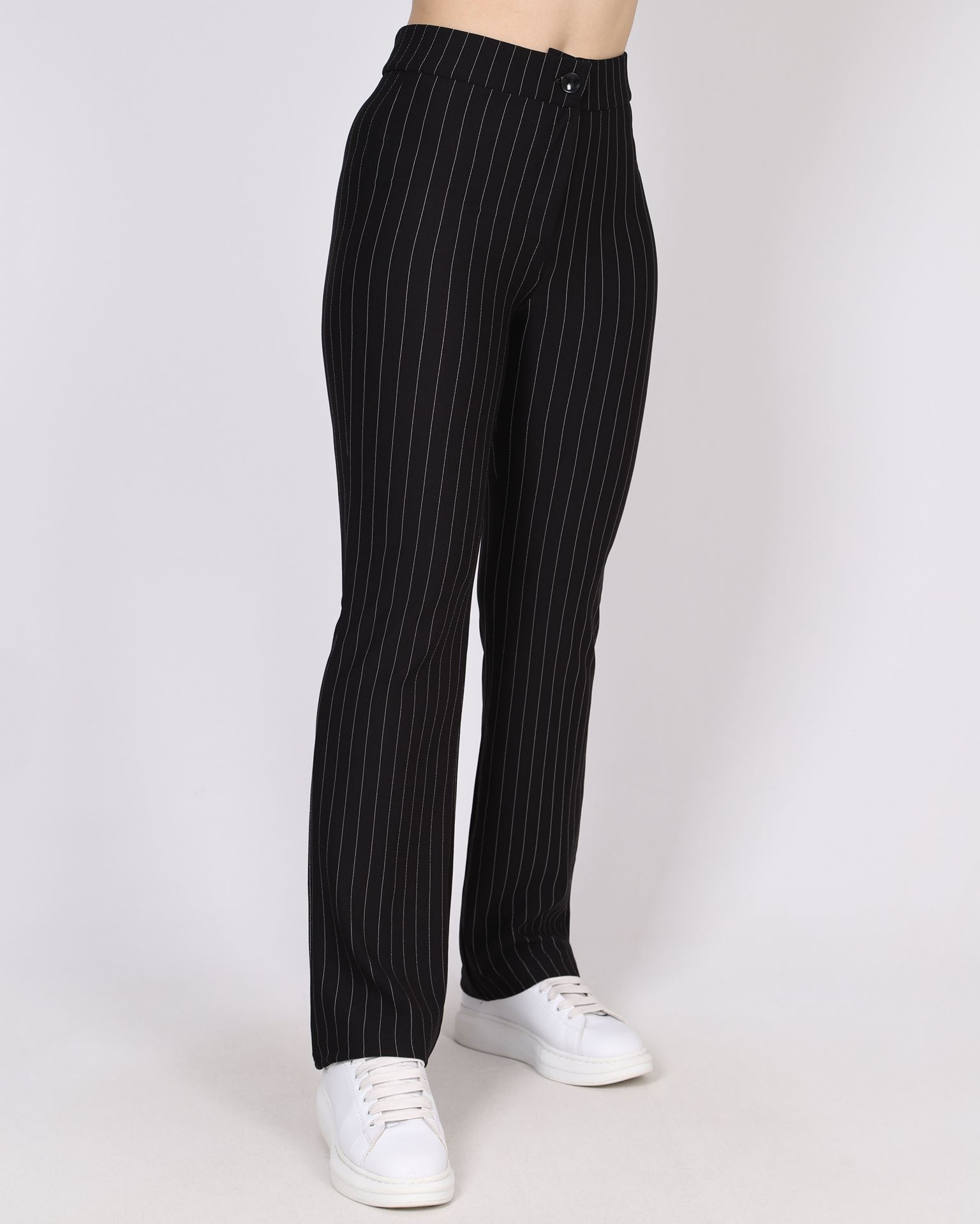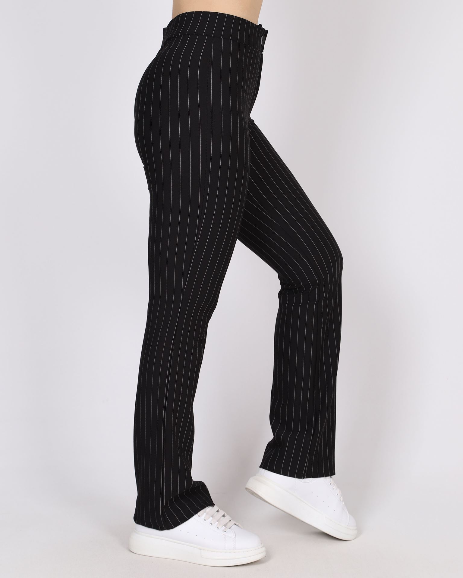 Siyah Çizgili Boru Paça Likralı Pantolon PNT583
