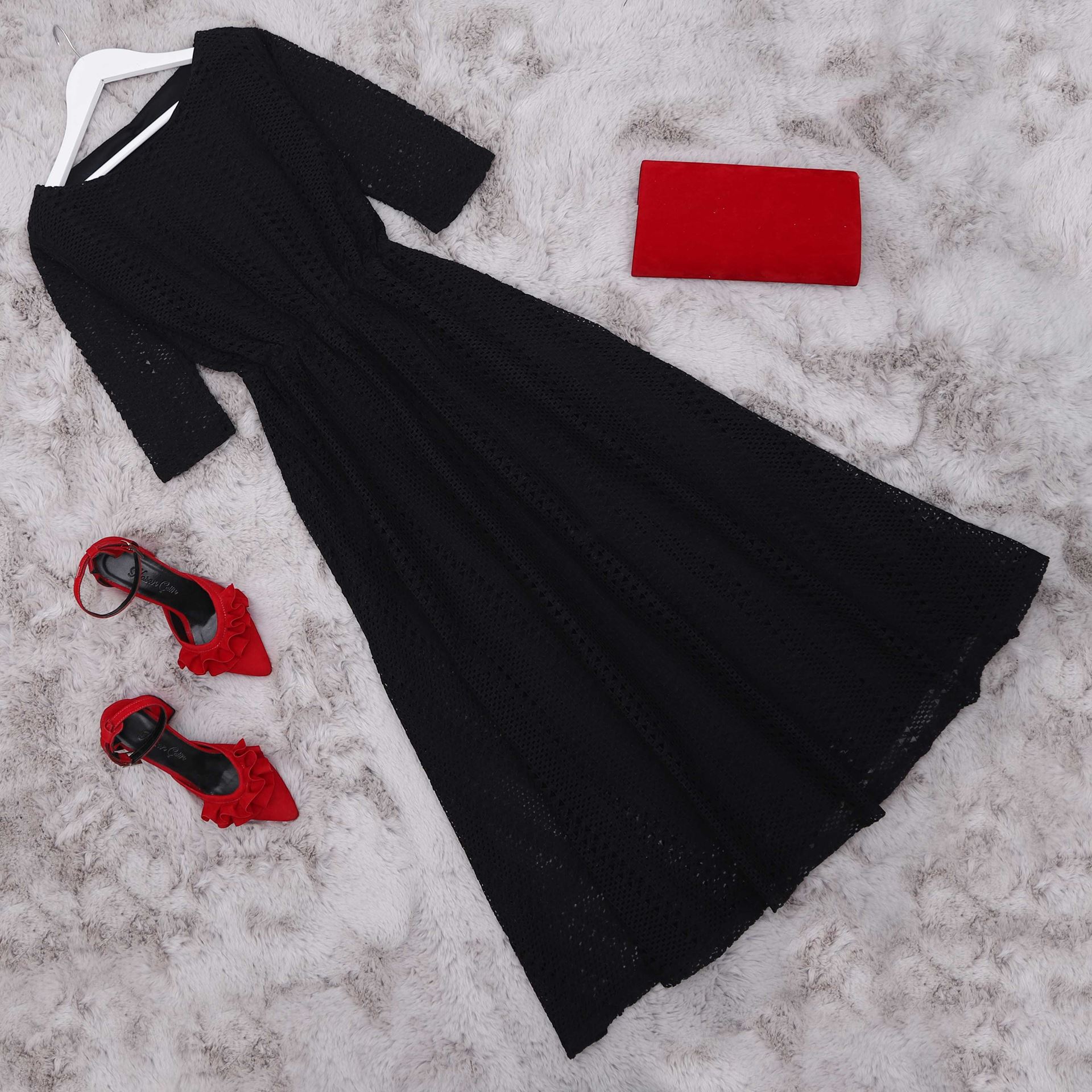 Siyah Dantelli Yarım Kol Elbise ELB717