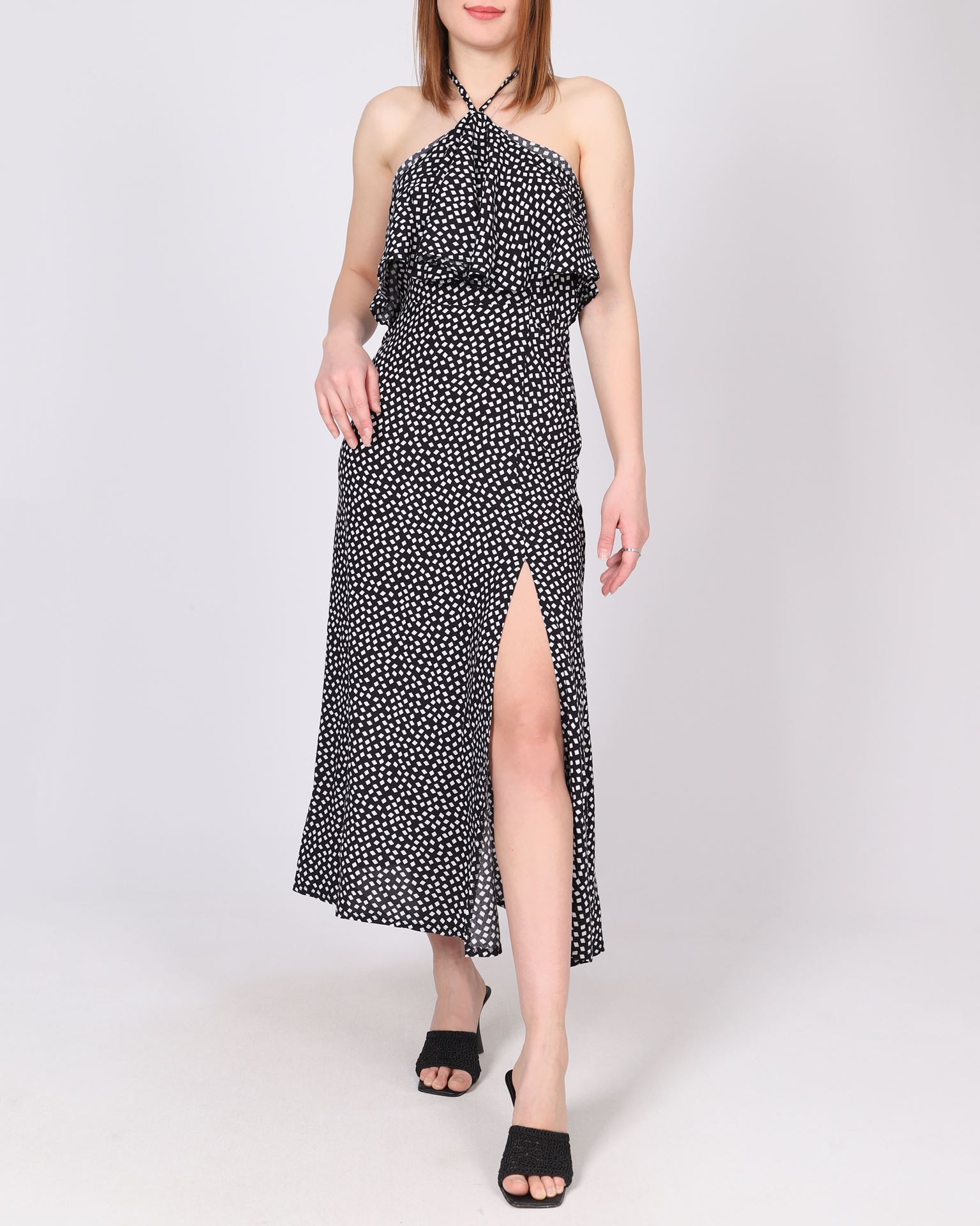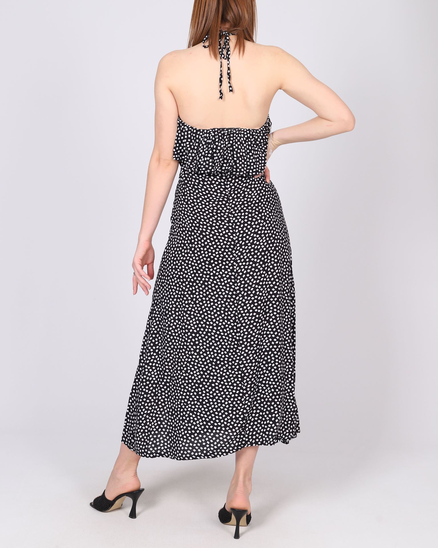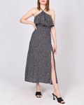 Siyah Desenli Dokuma Viskon Elbise ELB971