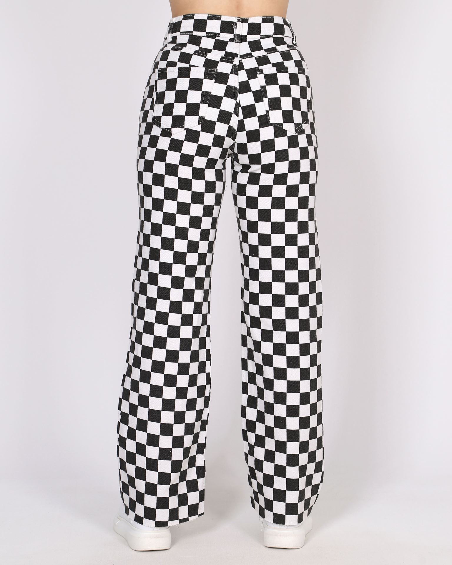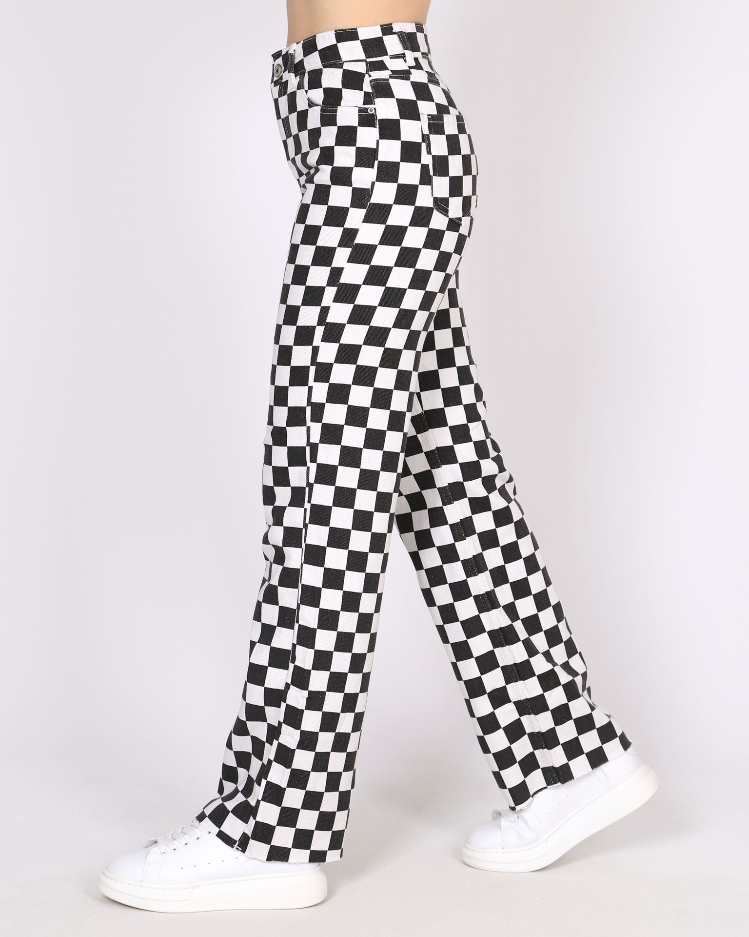 Siyah Desenli Palazzo Paça Kesik Kot Pantolon PNT666
