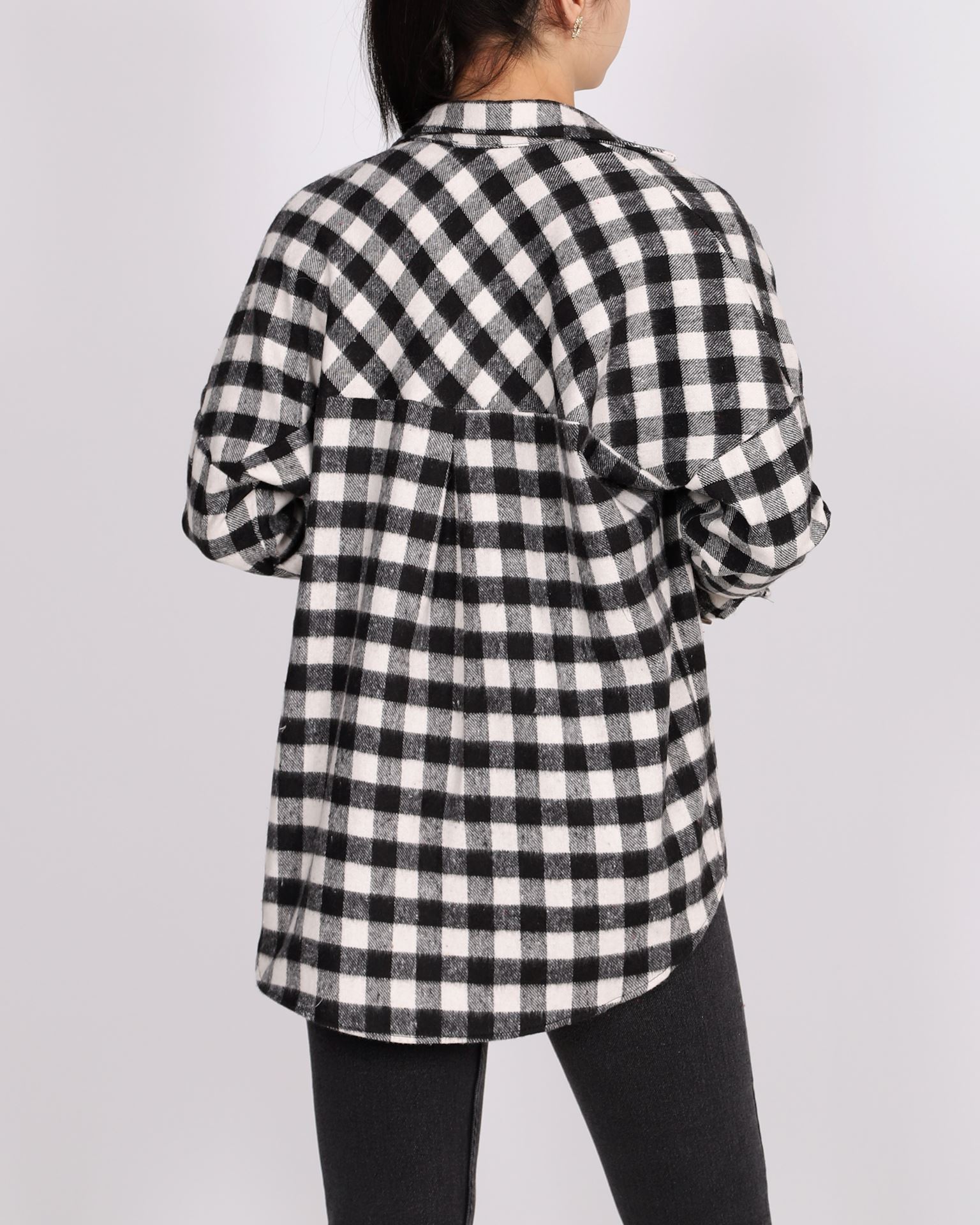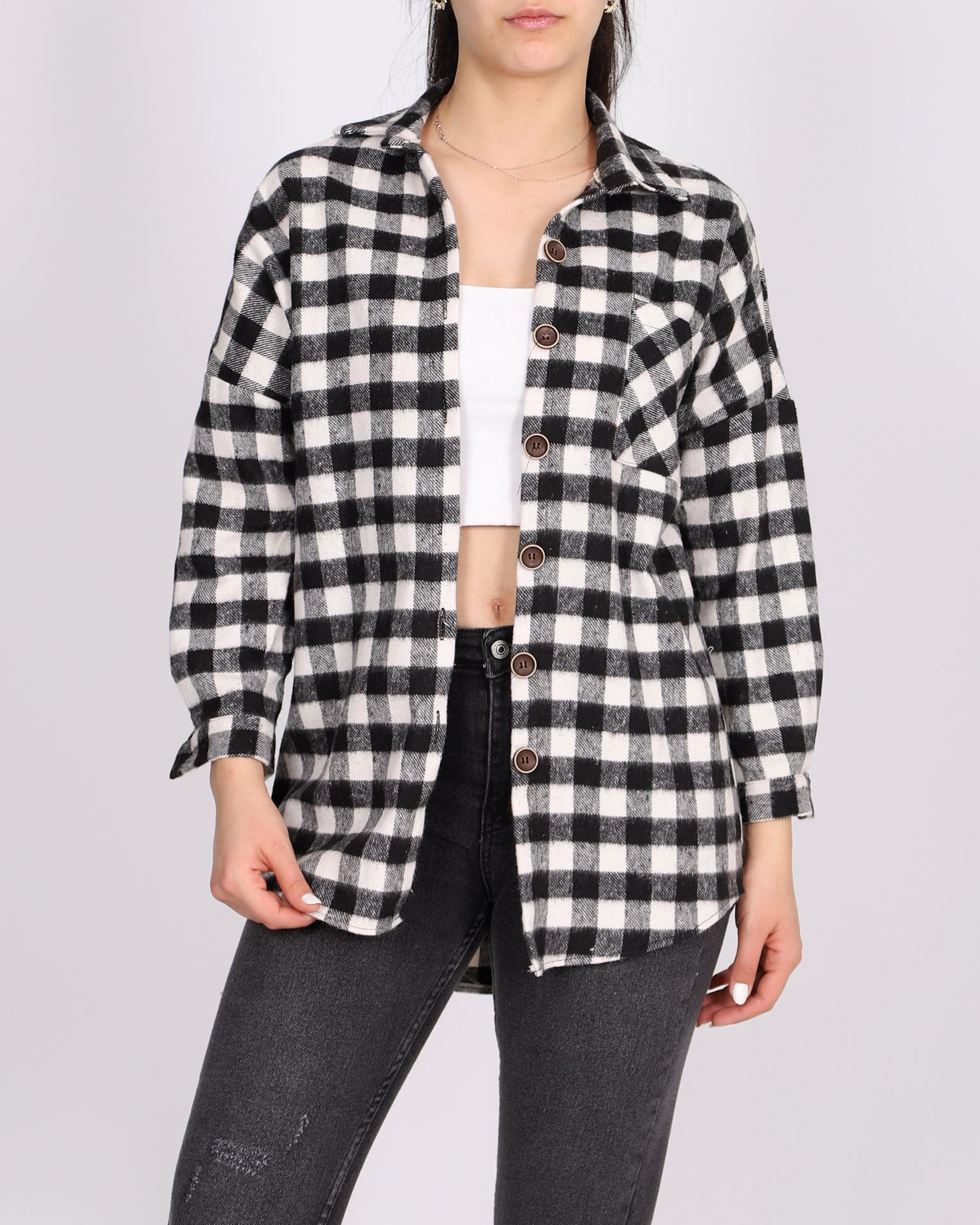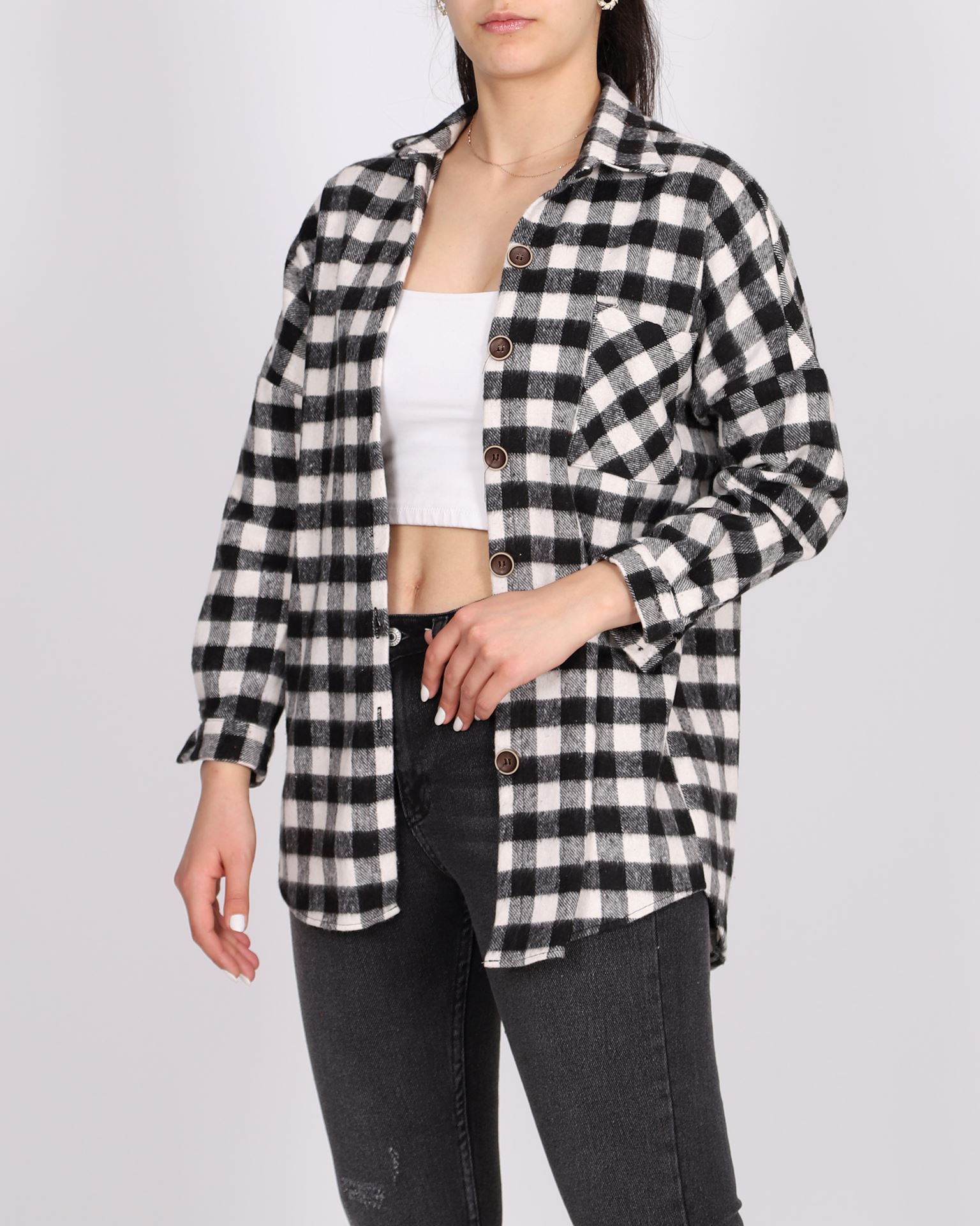 Siyah Ekose Desen Oversize Cepli Gömlek GML106