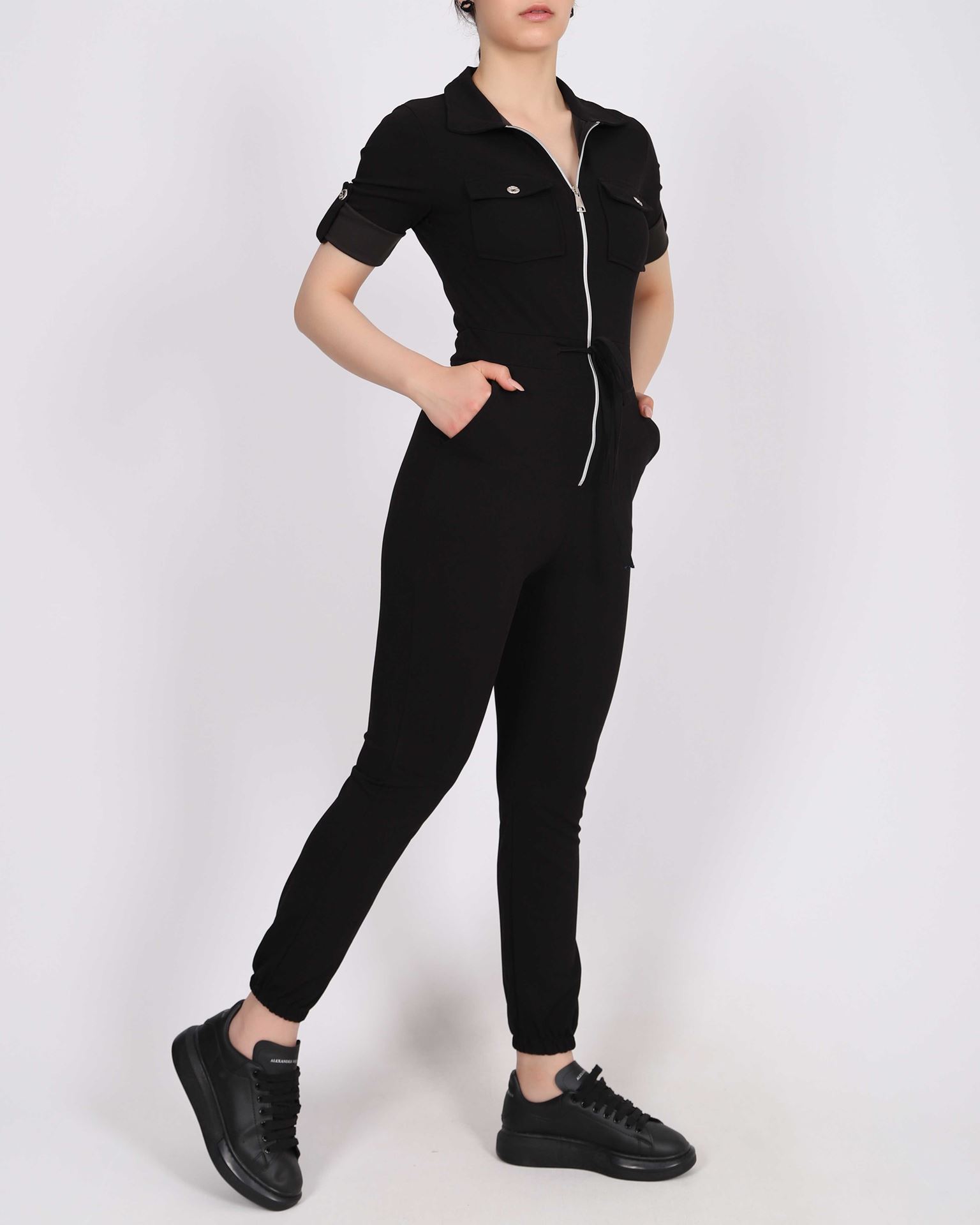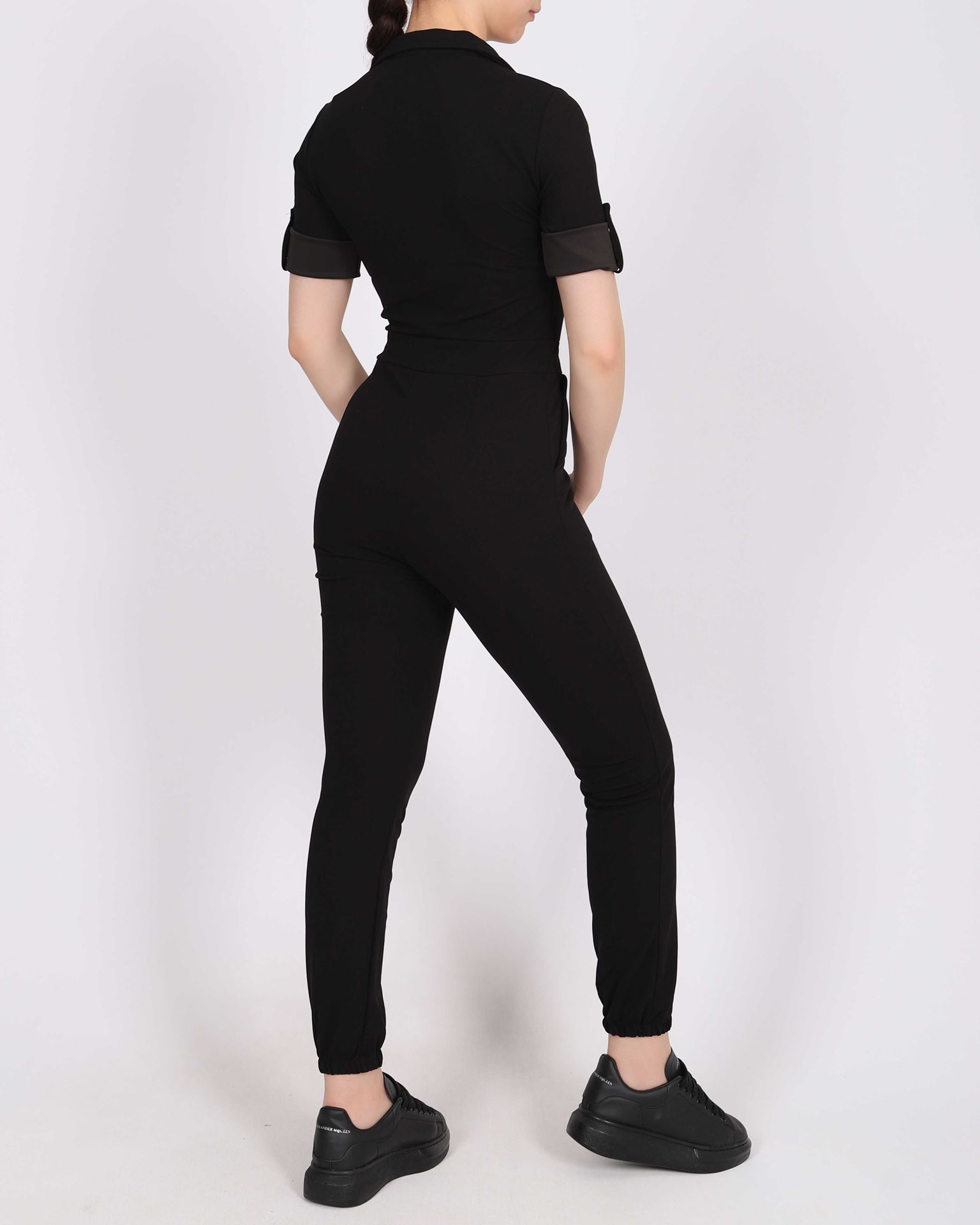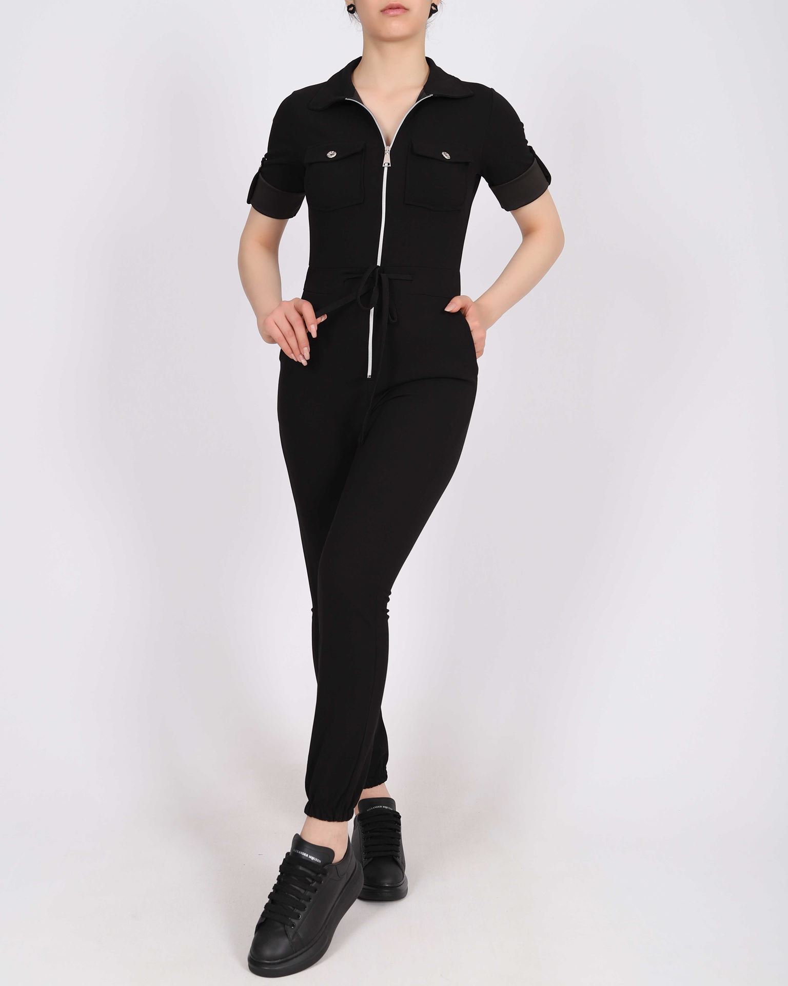 Siyah Fermuarlı Kol Bağlamalı Tulum TLM339