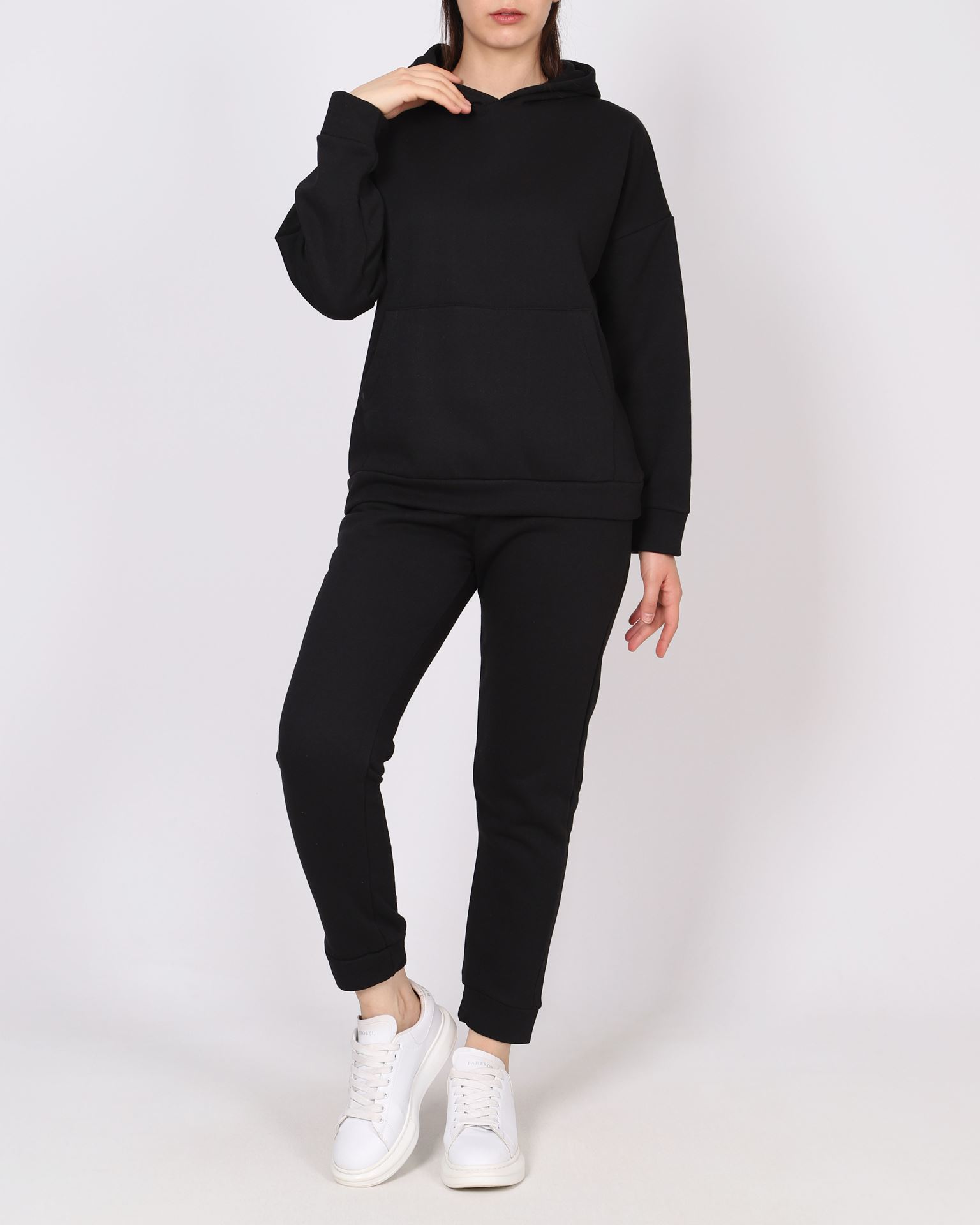 Siyah Kanguru Cepli Şardonlu Eşofman Takımı TKM2581