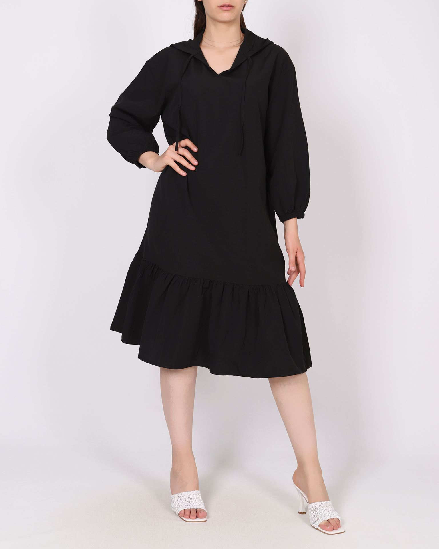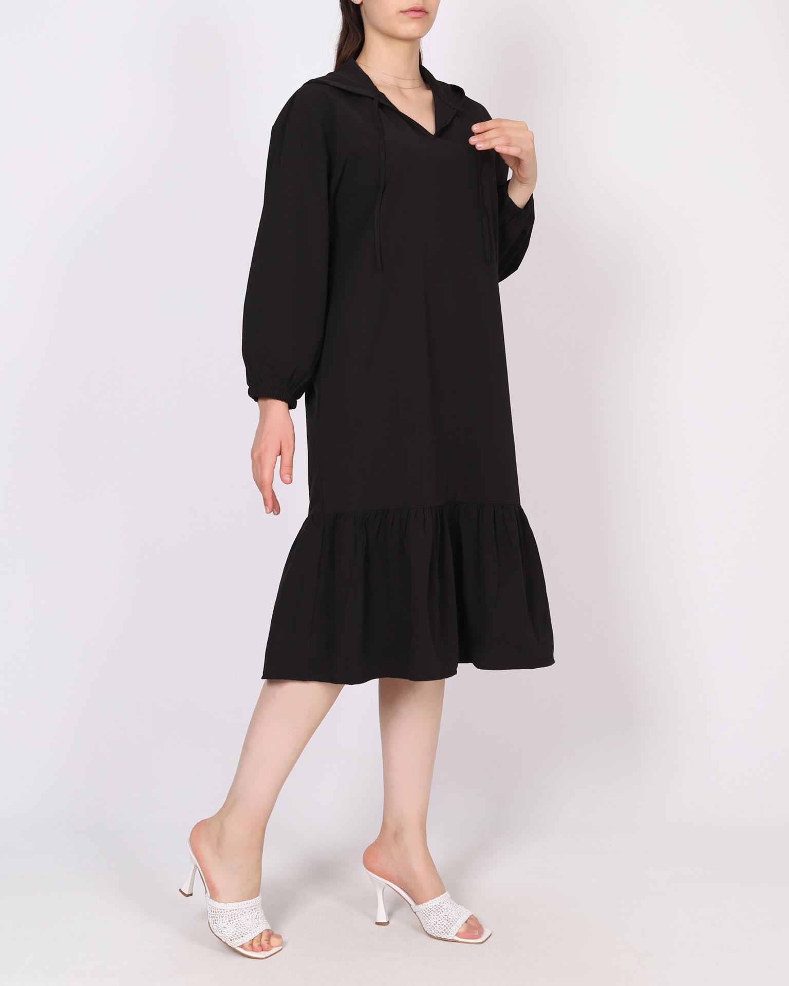 Siyah Kapüşonlu Elbise ELB1037