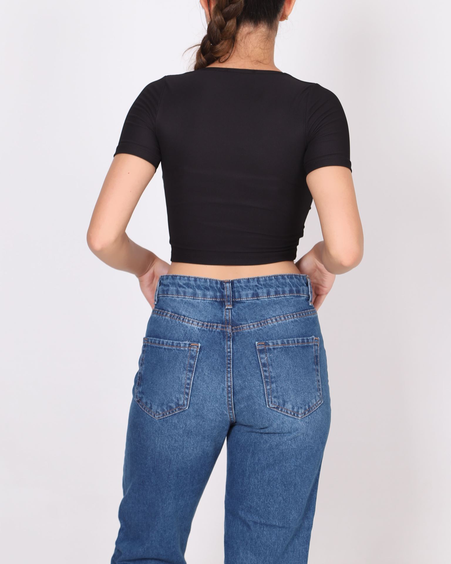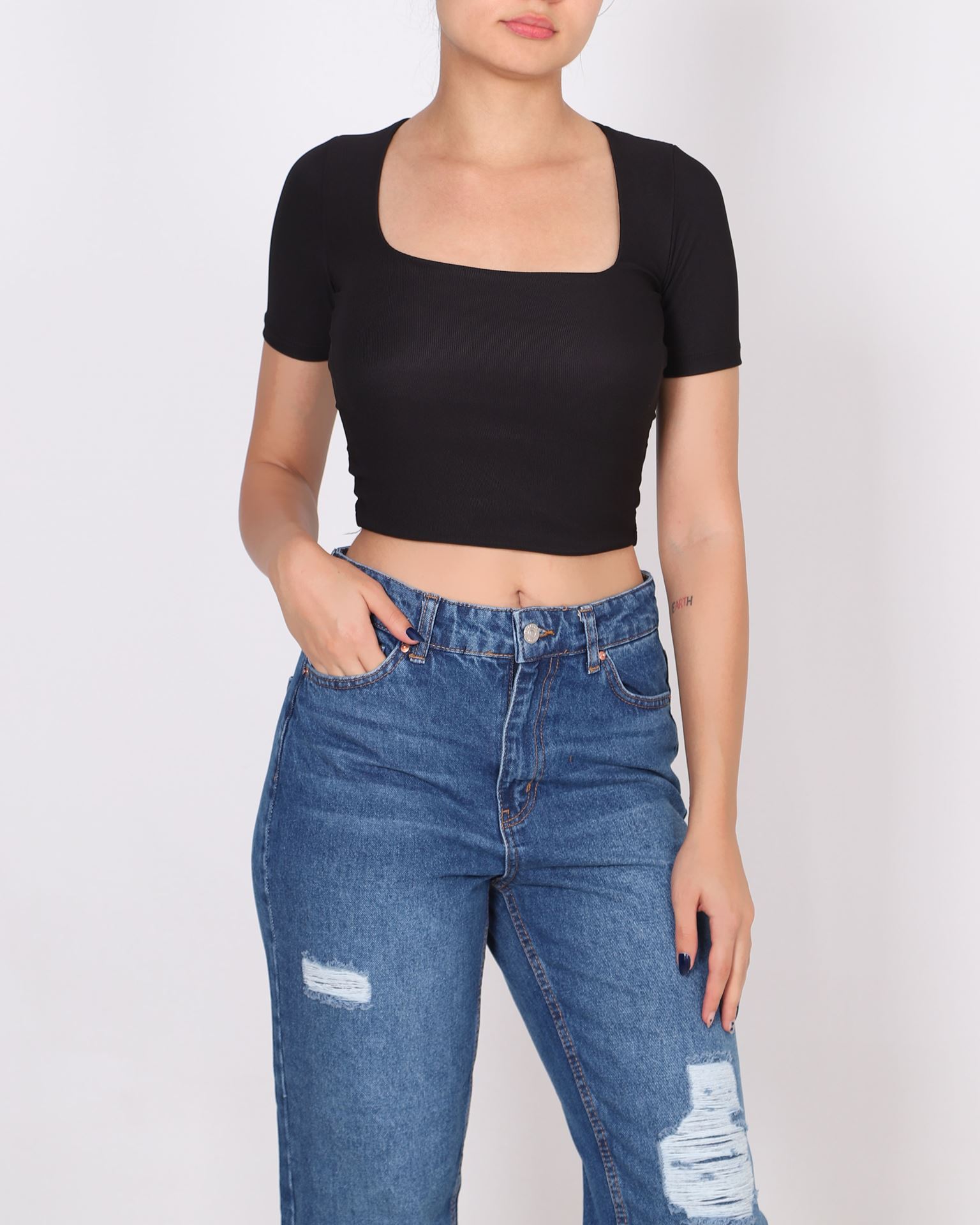 Siyah Kare Yaka Kısa Kol Bluz BLZ493