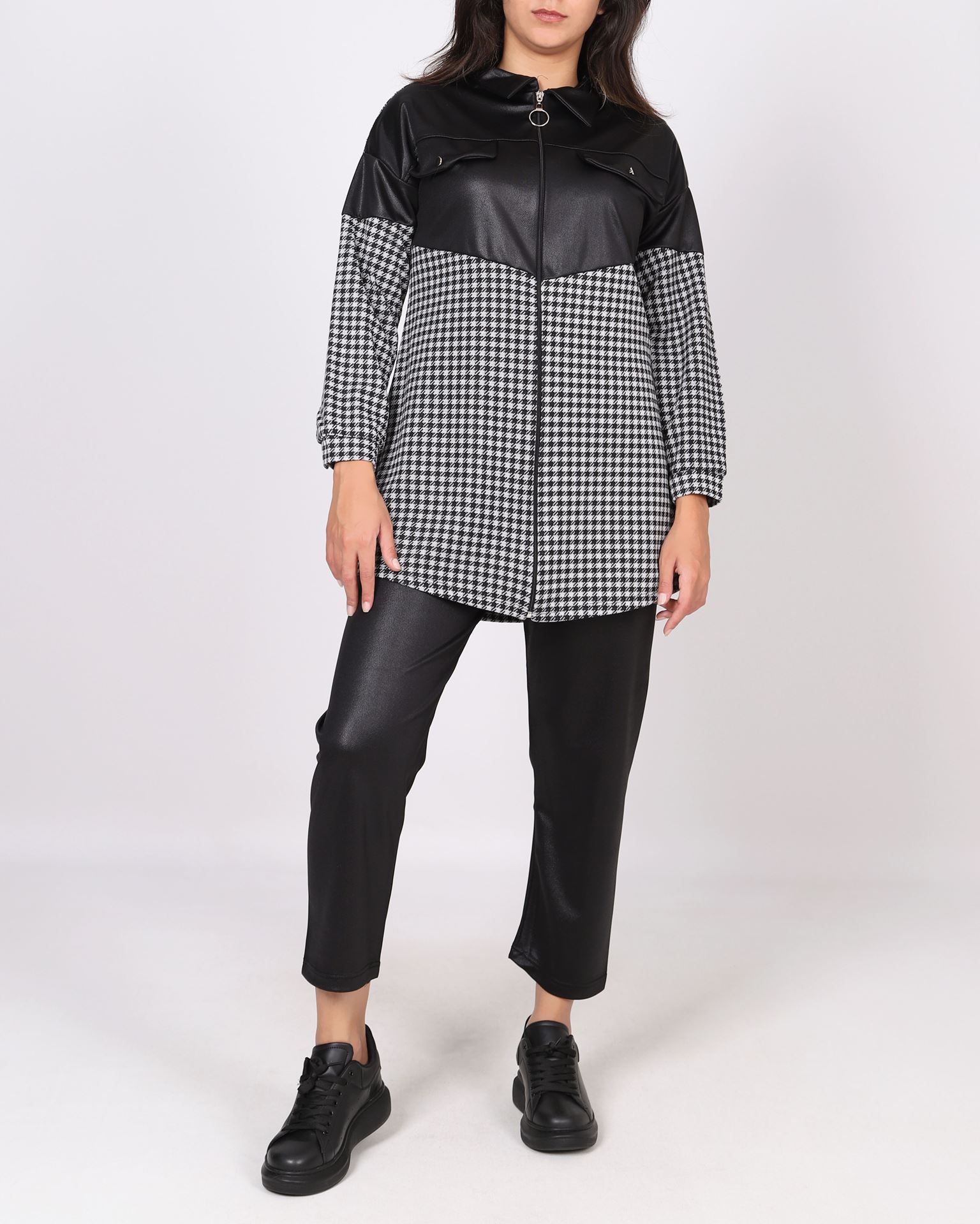 Siyah Kazayağı Garnili Parlak Krep İkili Takım TKM2596