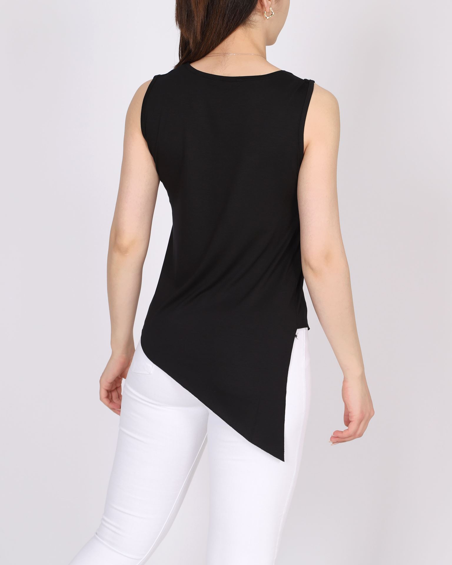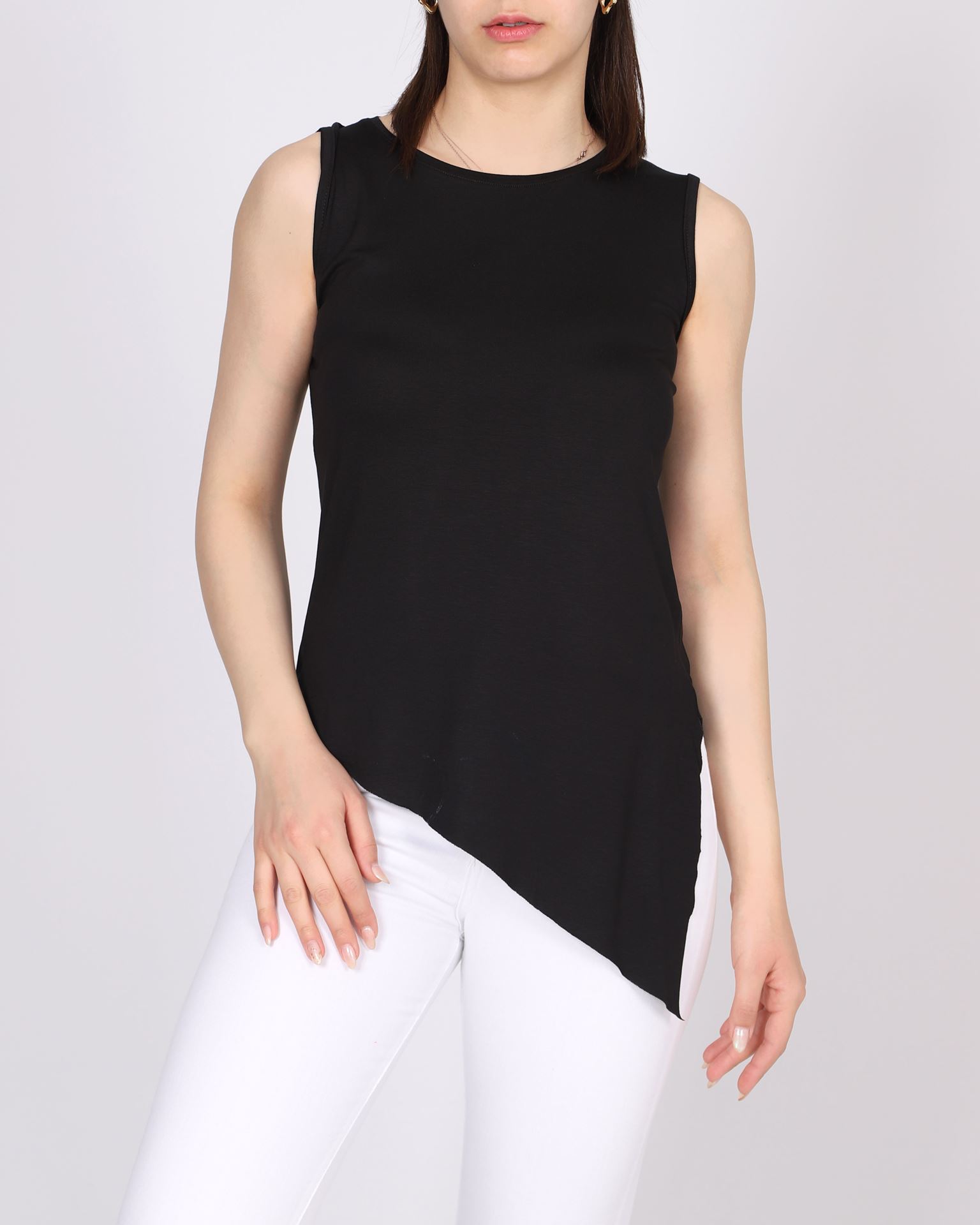 Siyah Kolsuz Asimetrik Bluz BLZ378