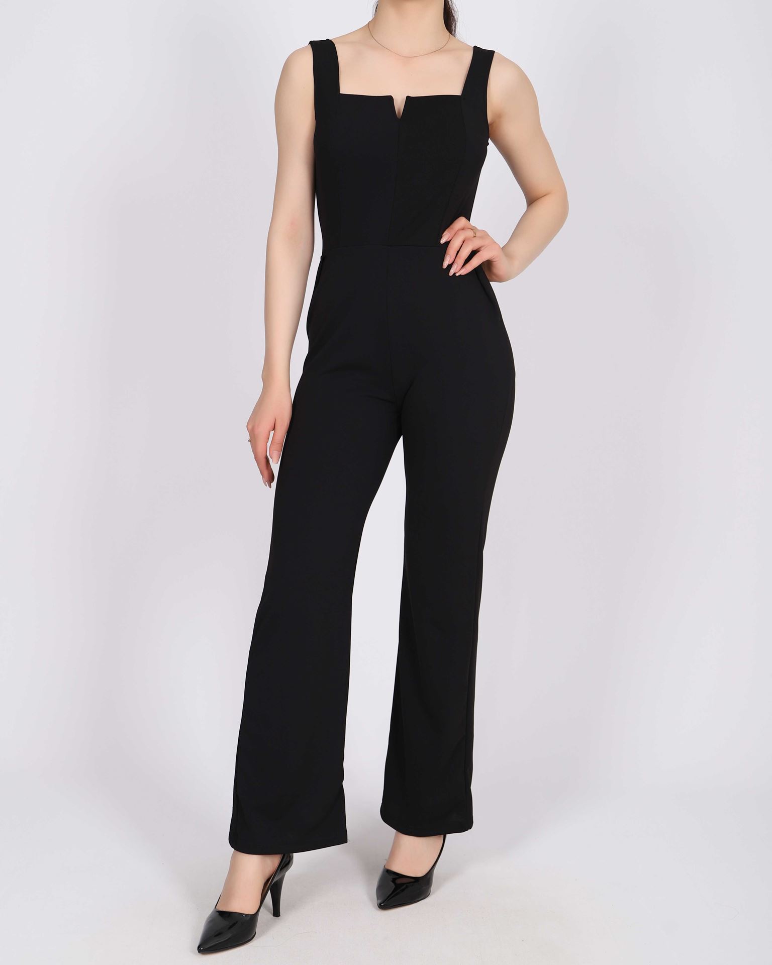 Siyah Kolsuz Krep Tulum TLM359