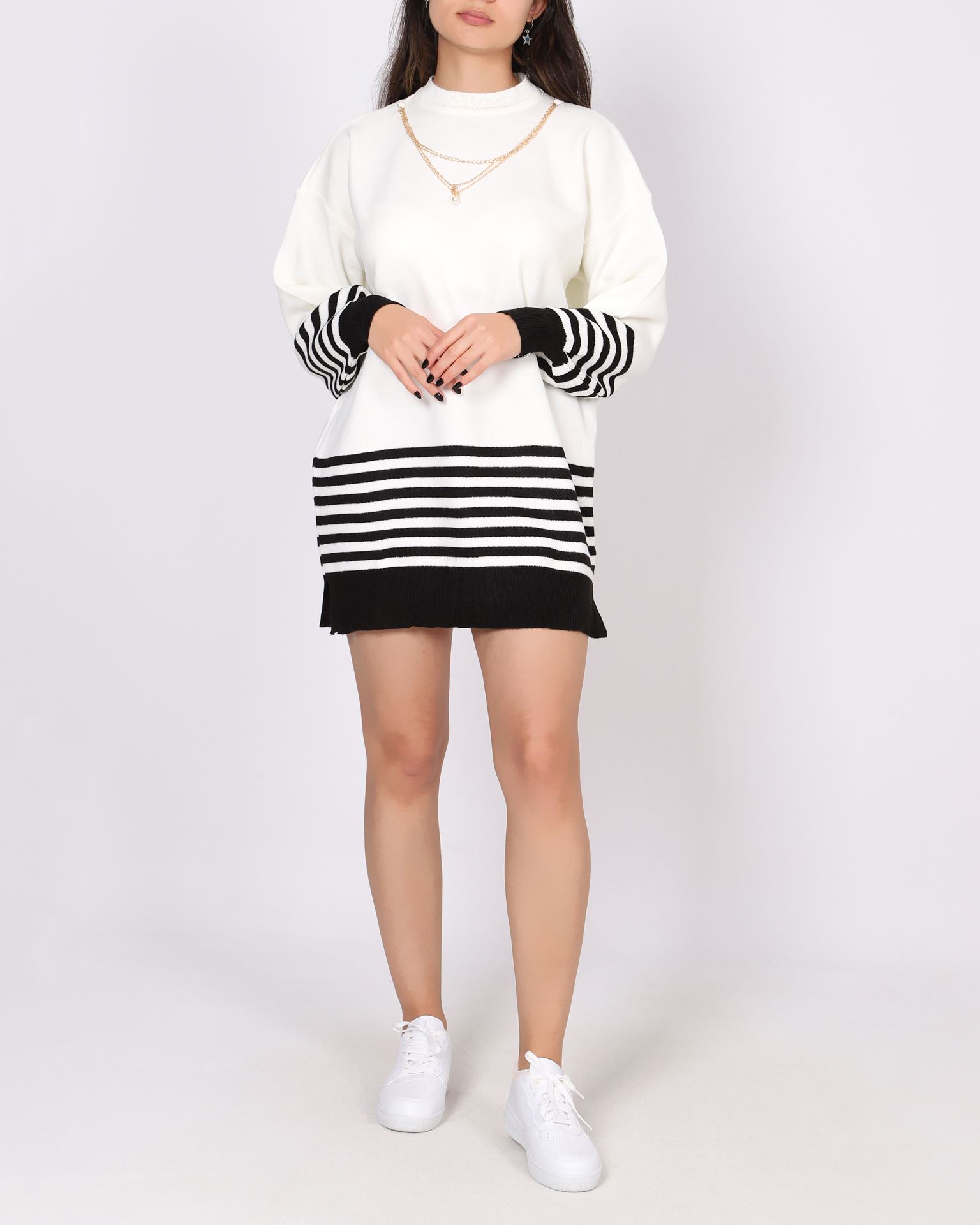 Siyah Kolyeli Çizgili Triko Tunik KZK617