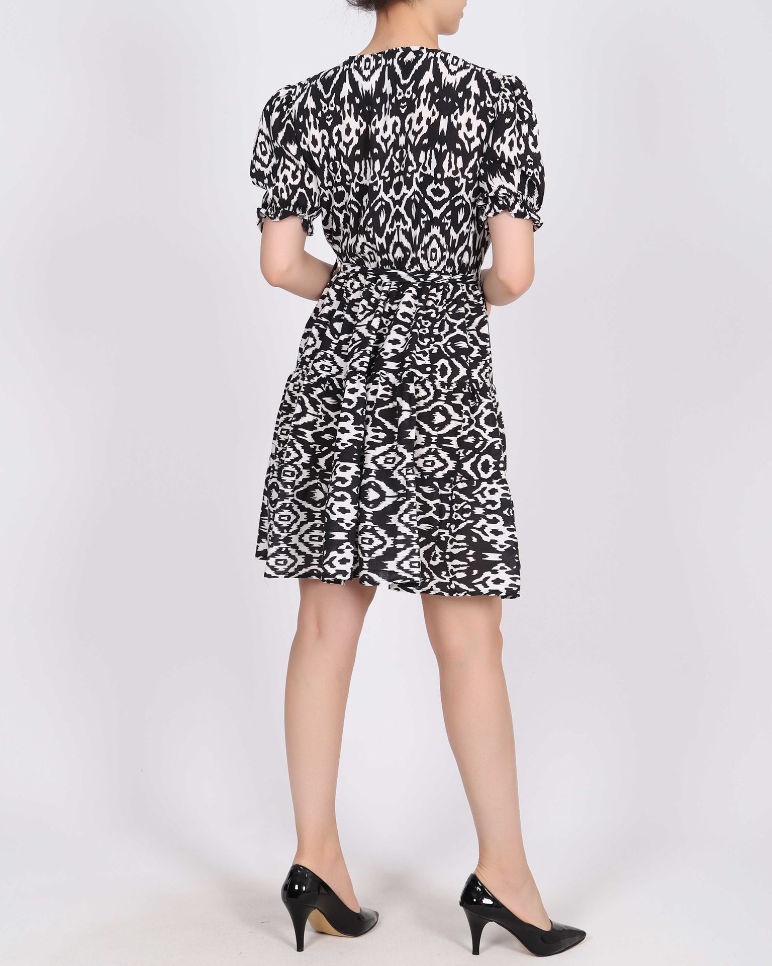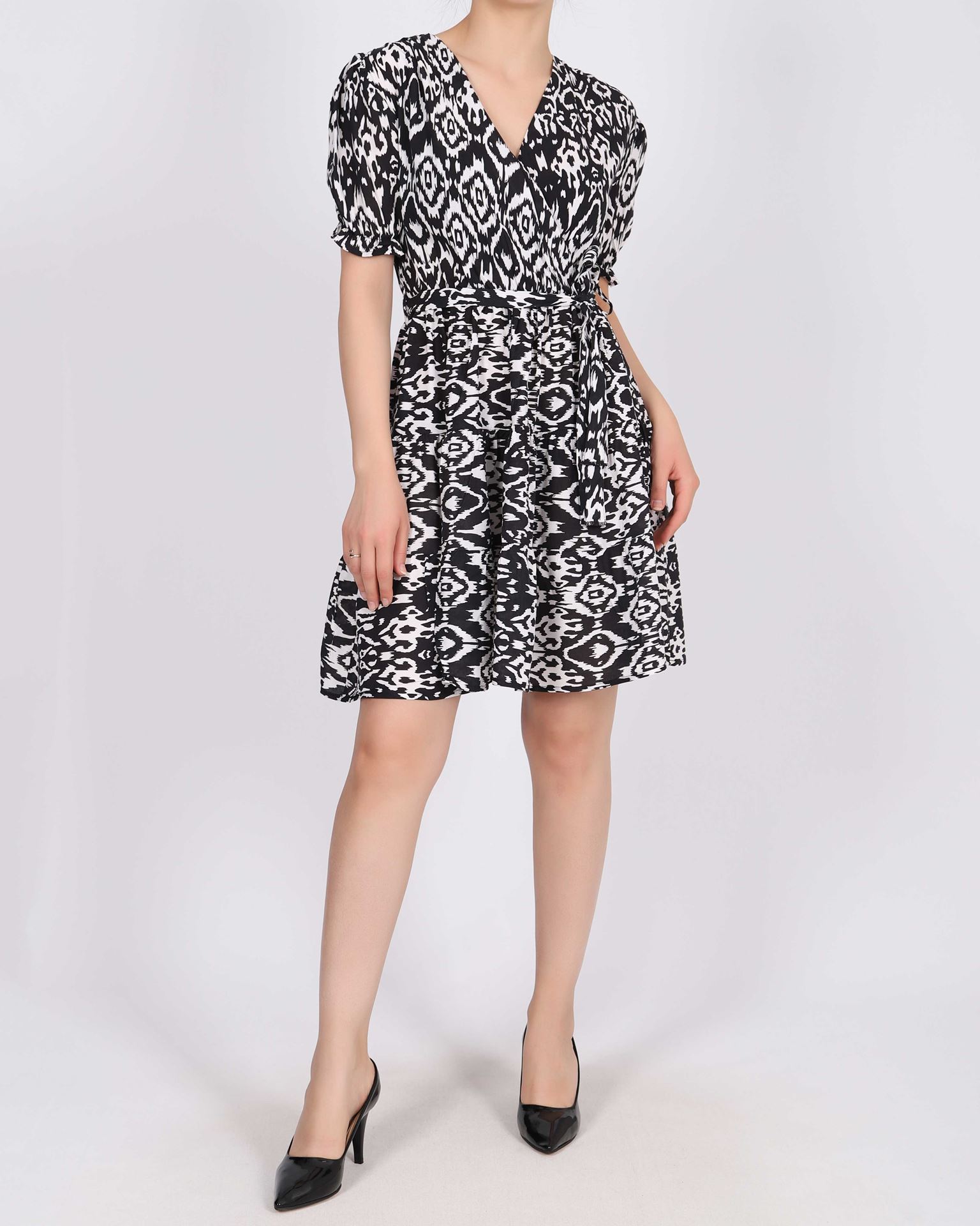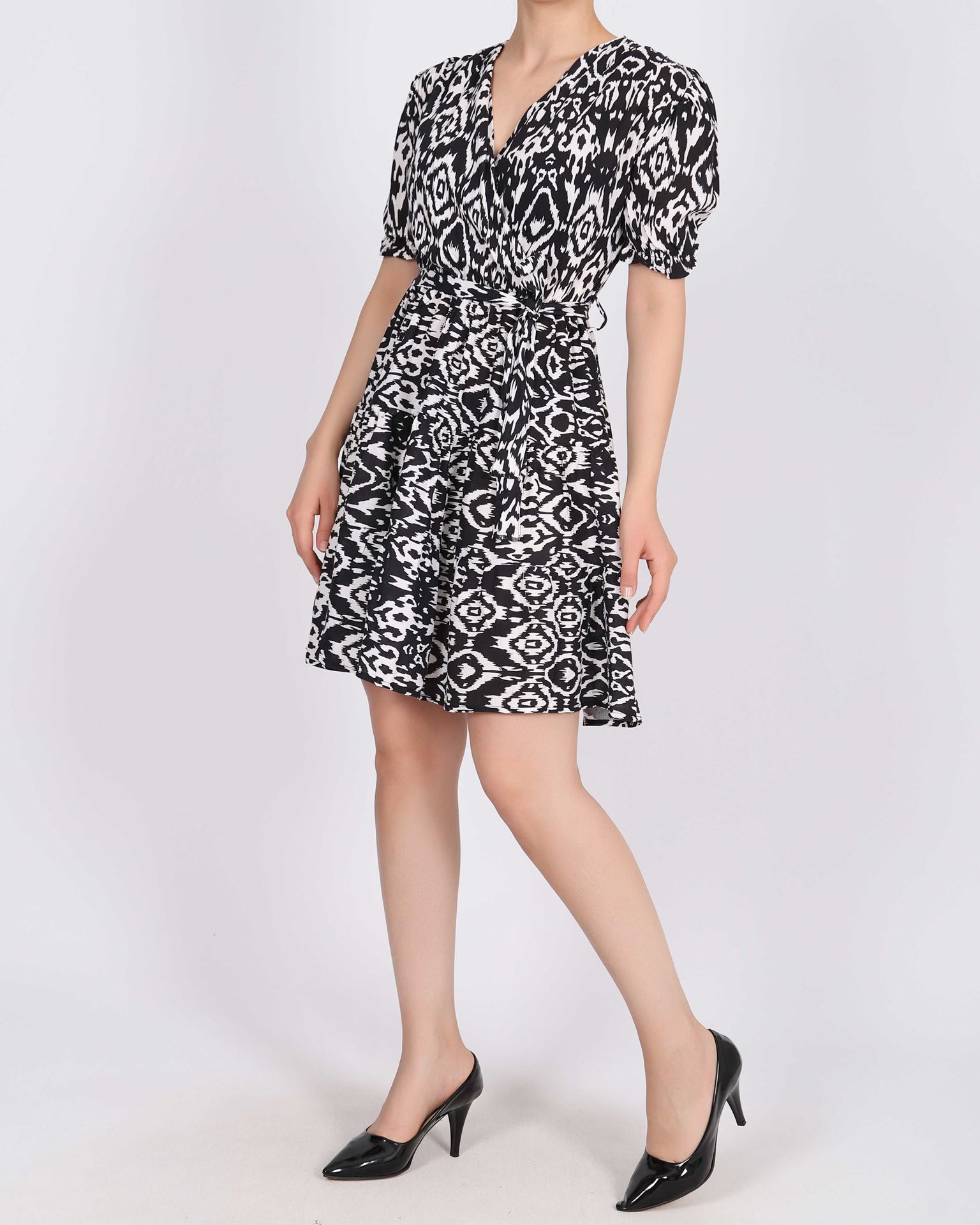 Siyah Kruvaze Yaka Desenli Elbise ELB920