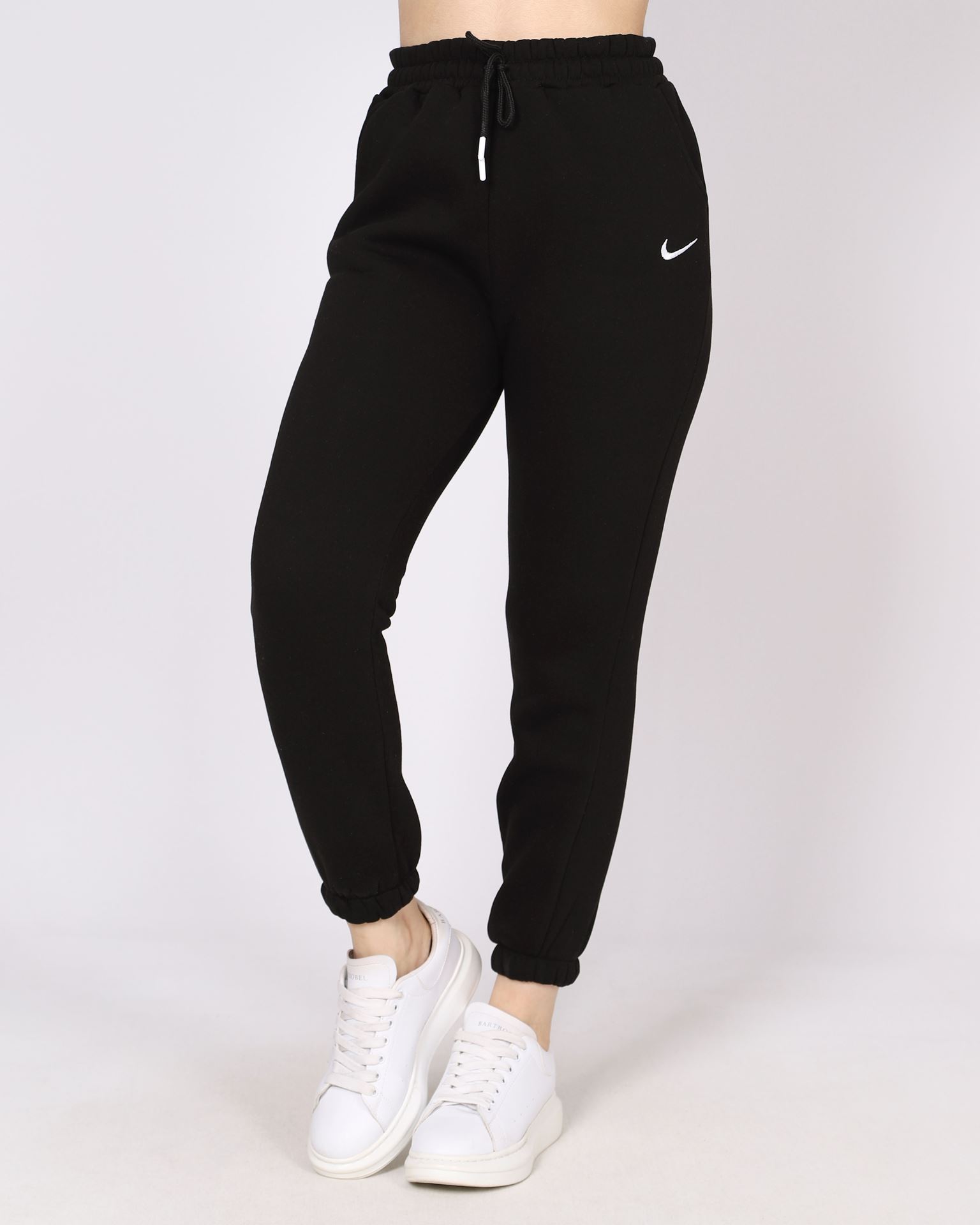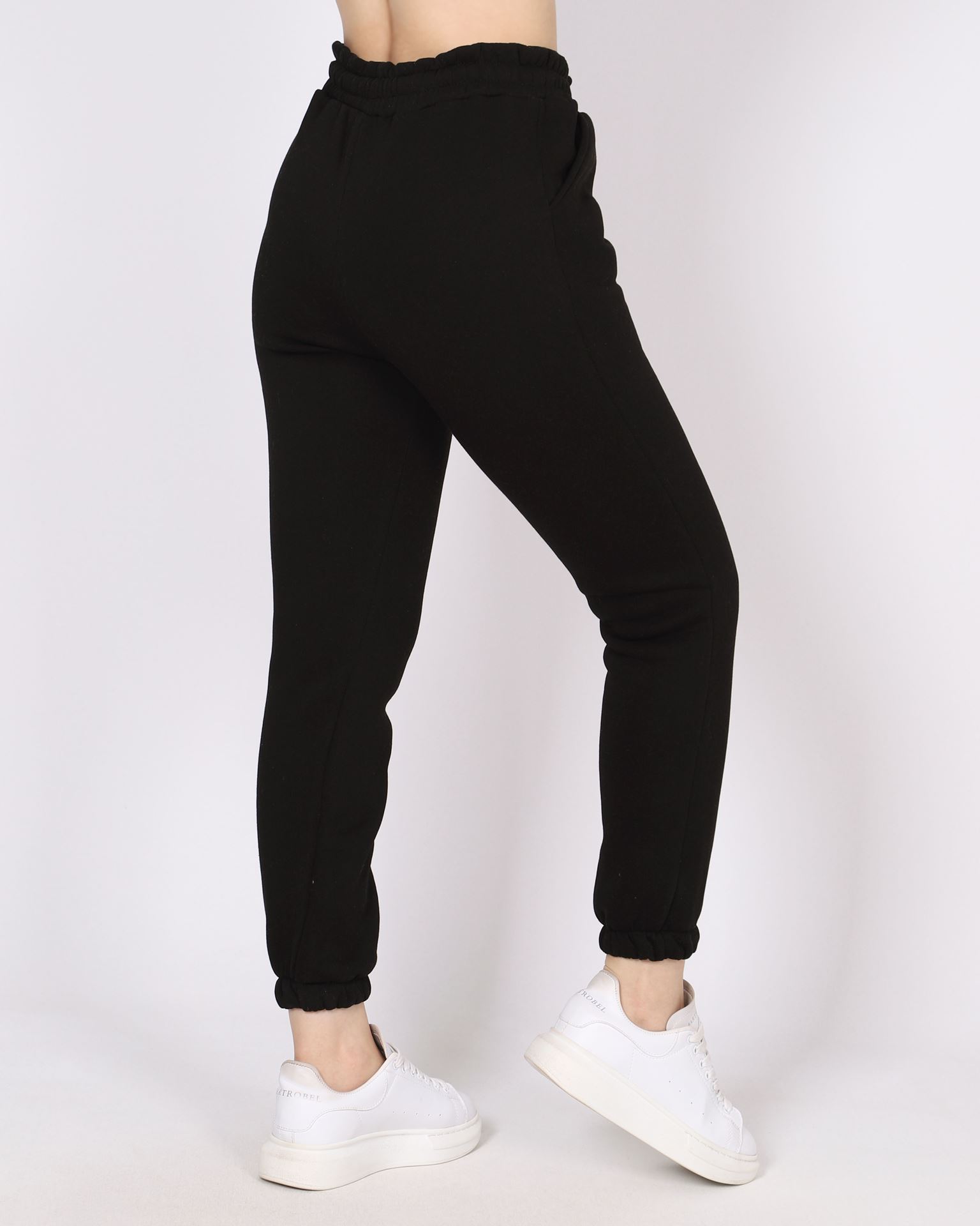 Siyah Nakışlı Üç İplik Şardonlu Eşofman Altı TKM2606