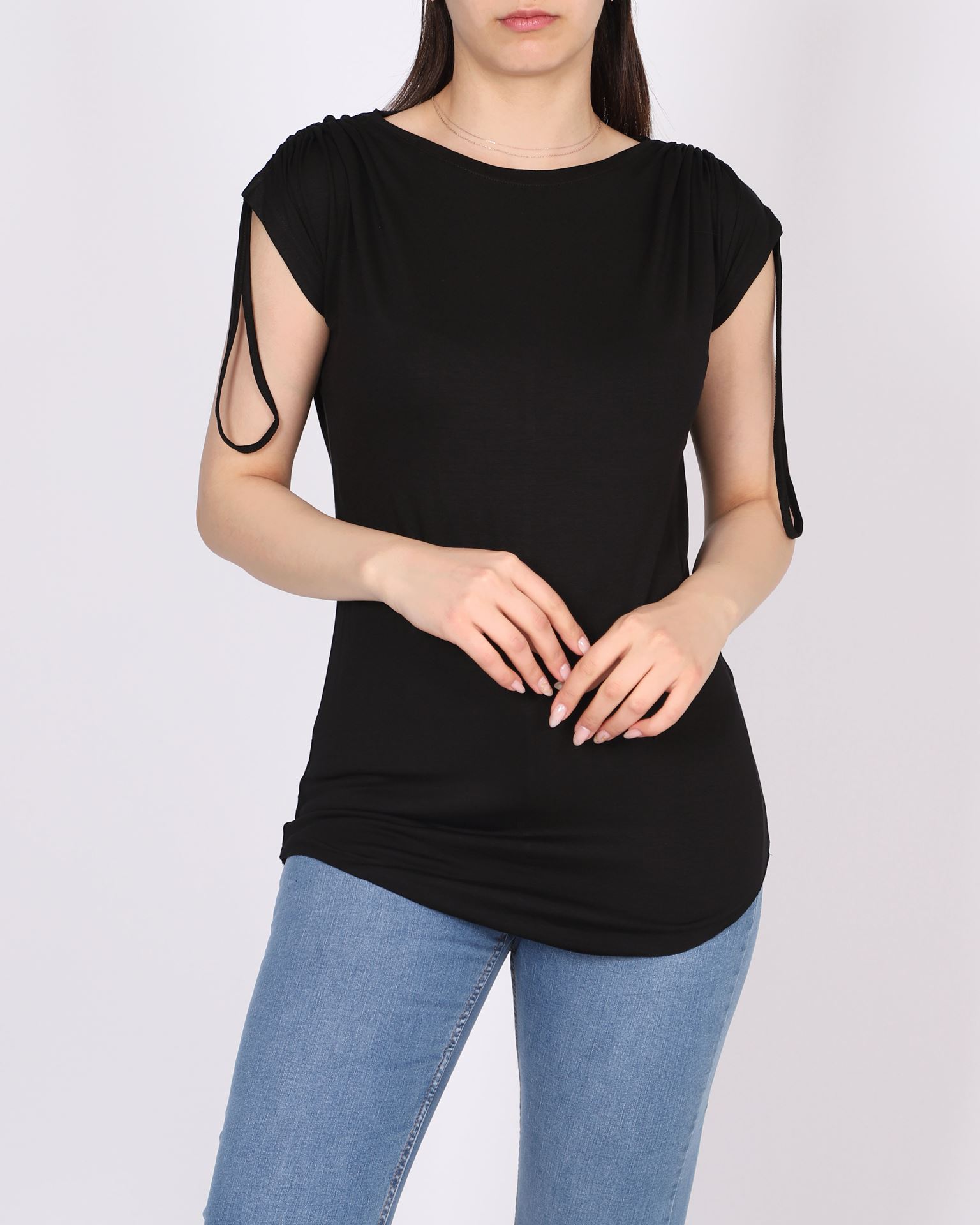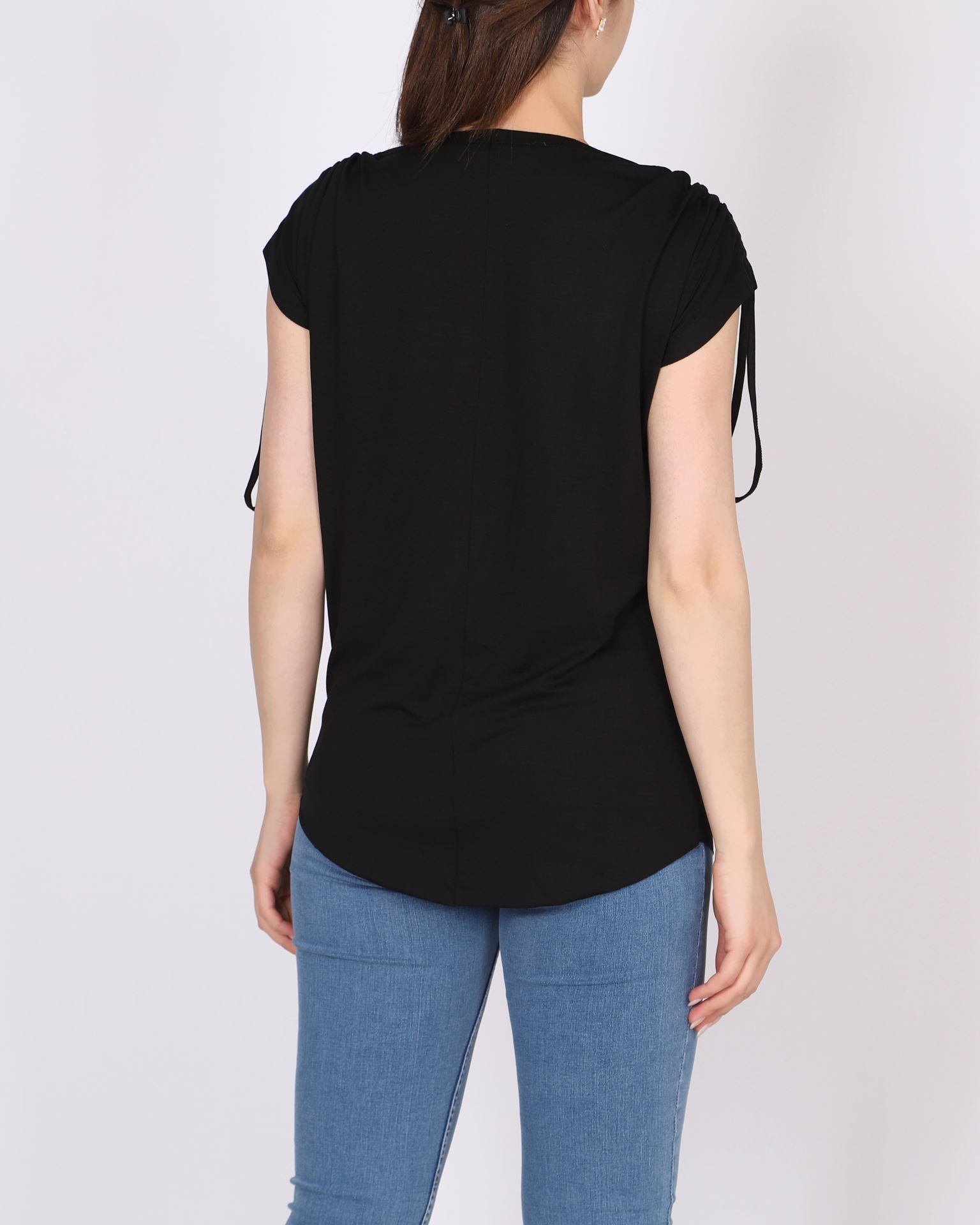 Siyah Omuz Büzgülü Viskon Bluz BLZ364