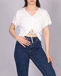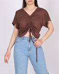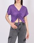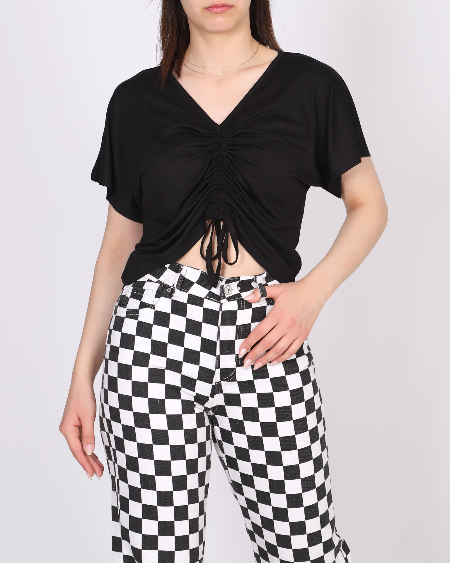 Siyah Önü Büzgülü V Yaka Bluz BLZ236