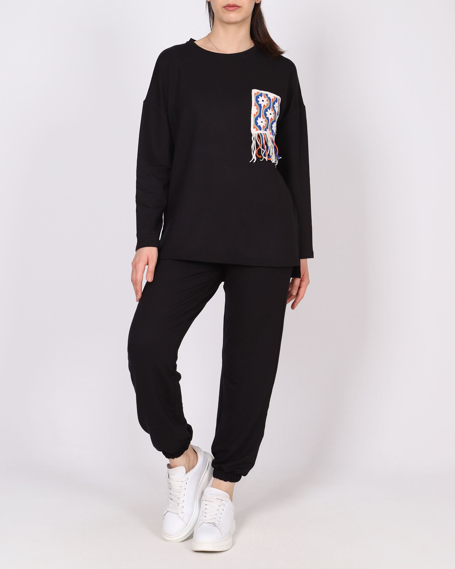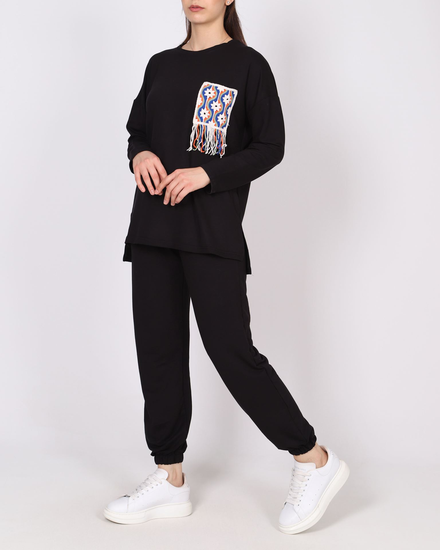 Siyah Örgü Tasarım İkili Takım TKM2577
