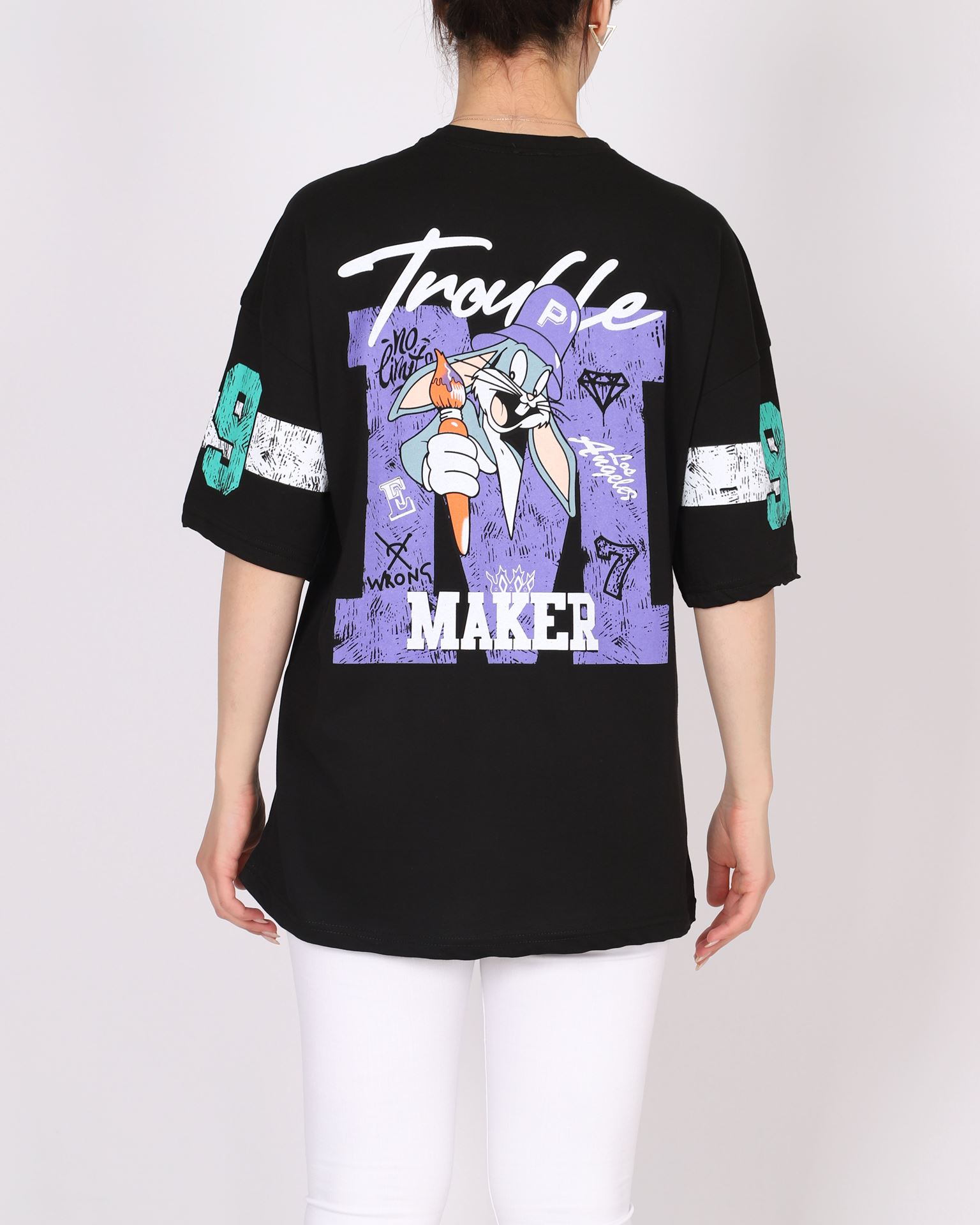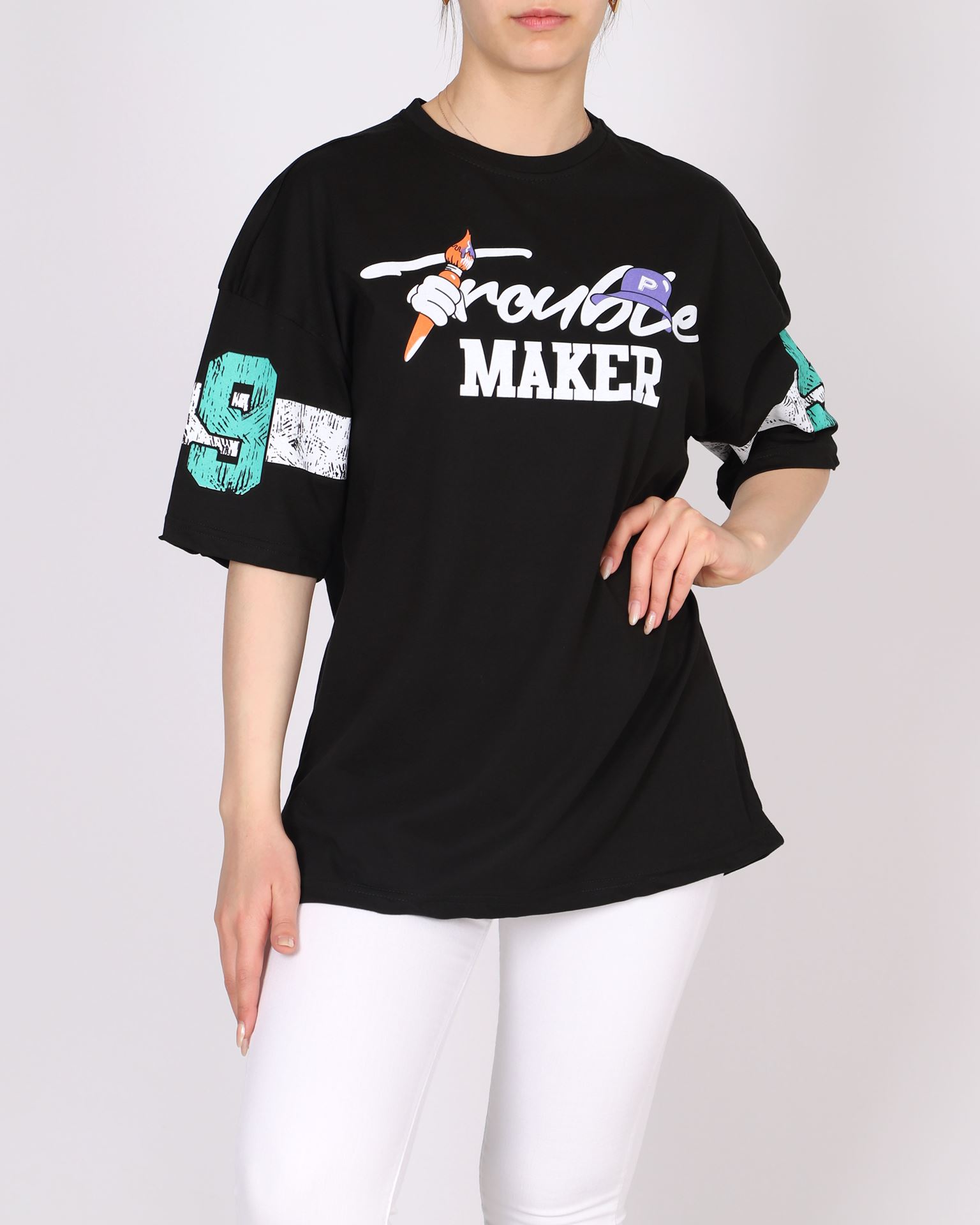 Siyah Oversize Baskılı T-shirt TSH375