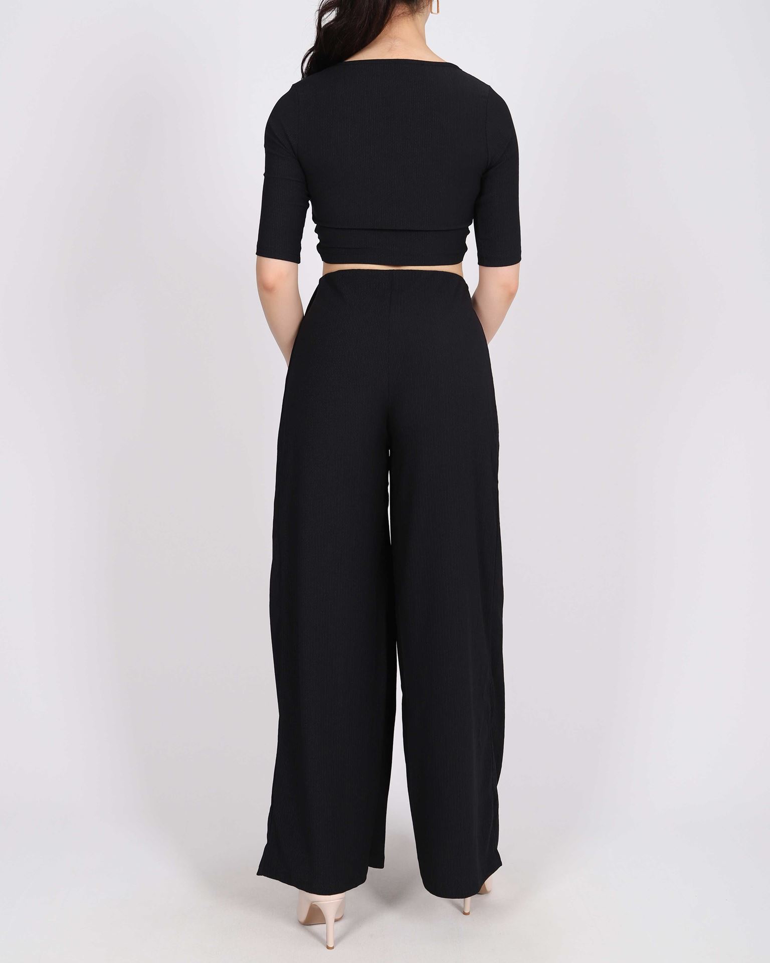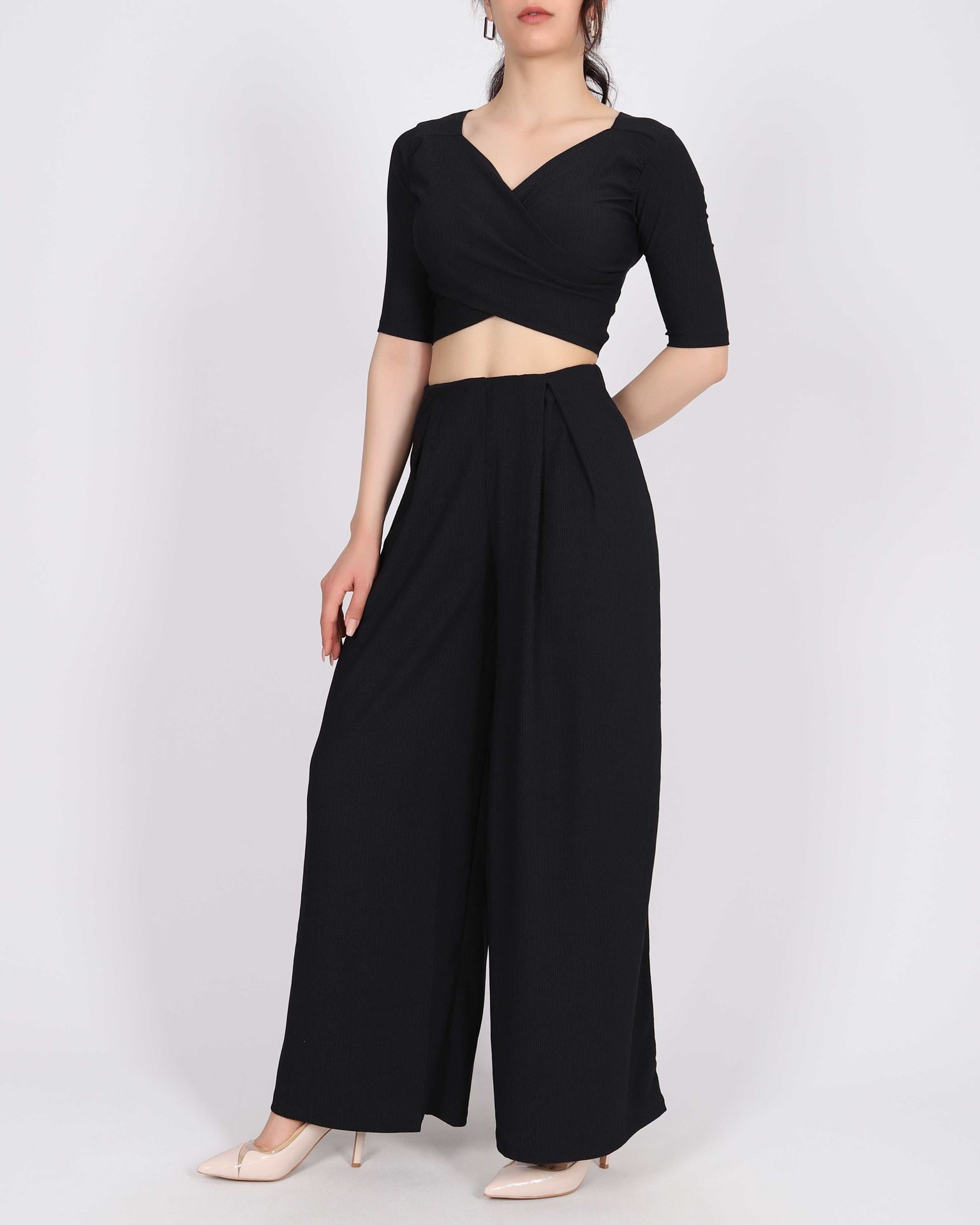 Siyah Pileli Pantolon Bluz Takım TKM1989