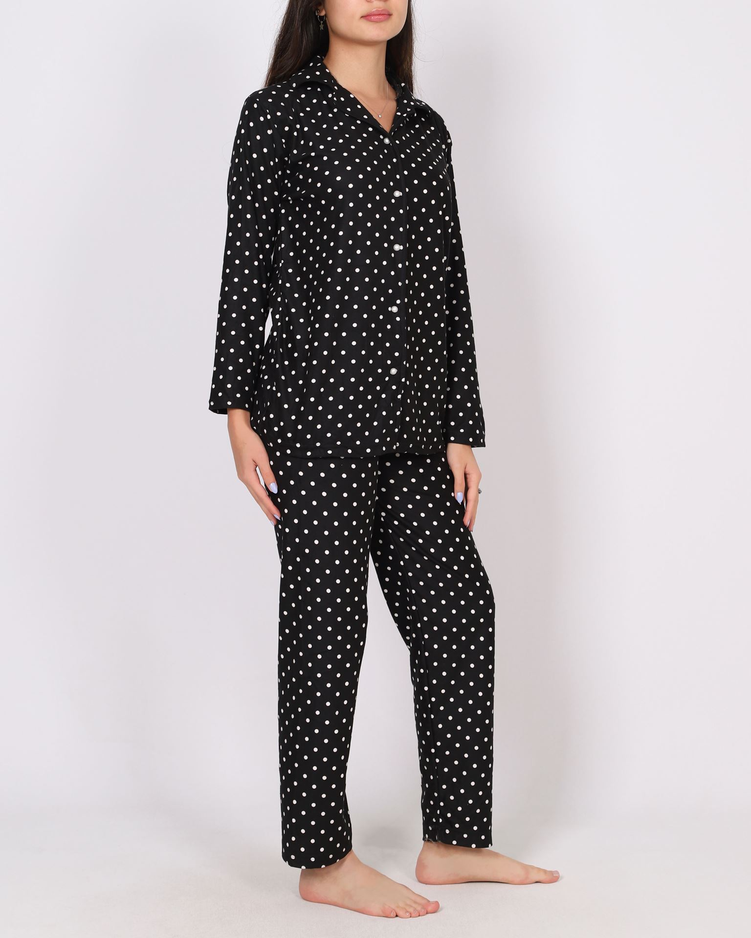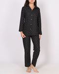 Siyah Puantiyeli Süet Düğmeli Pijama Takımı PJM1805