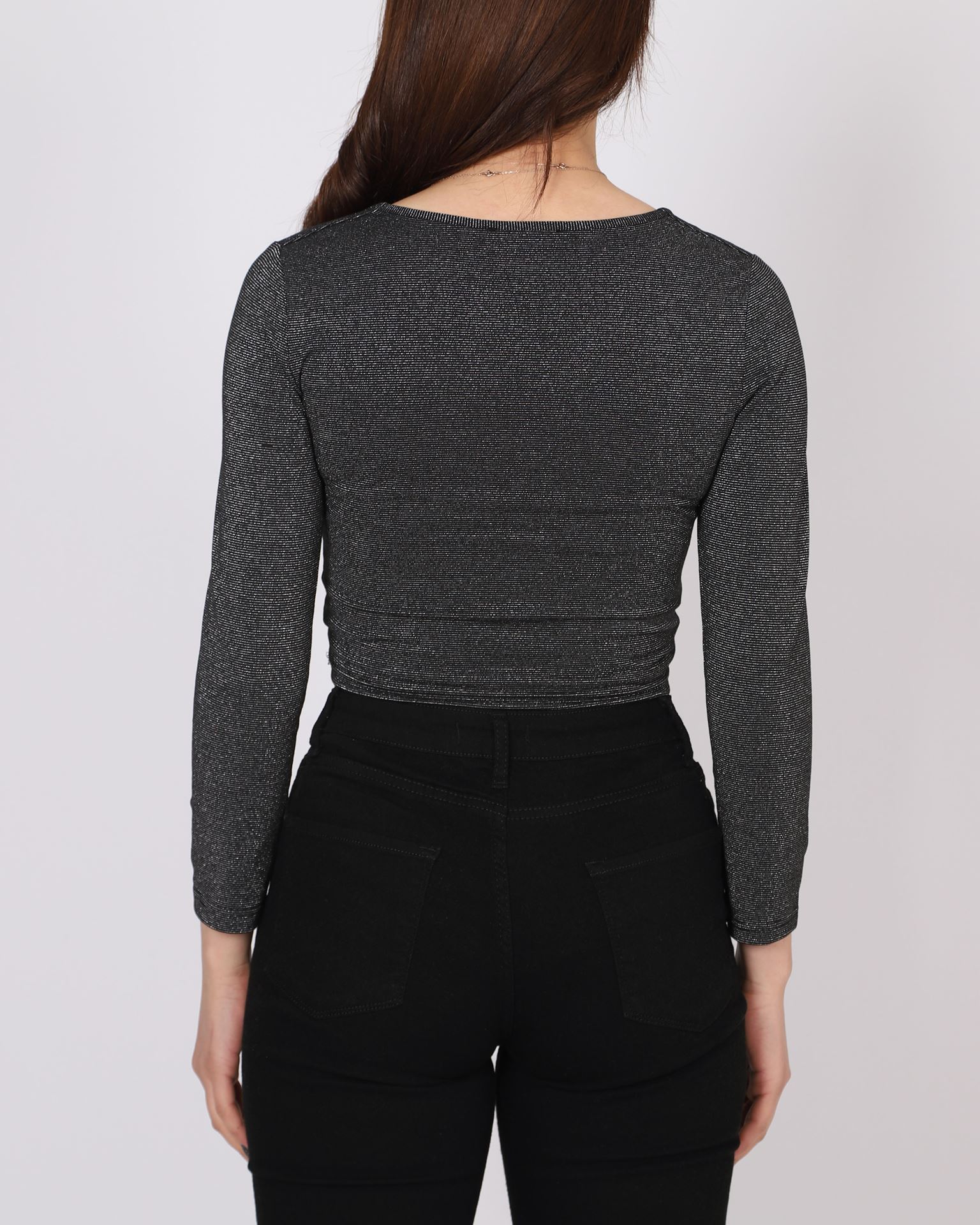 Siyah Simli Önü Büzgülü Bluz BLZ311