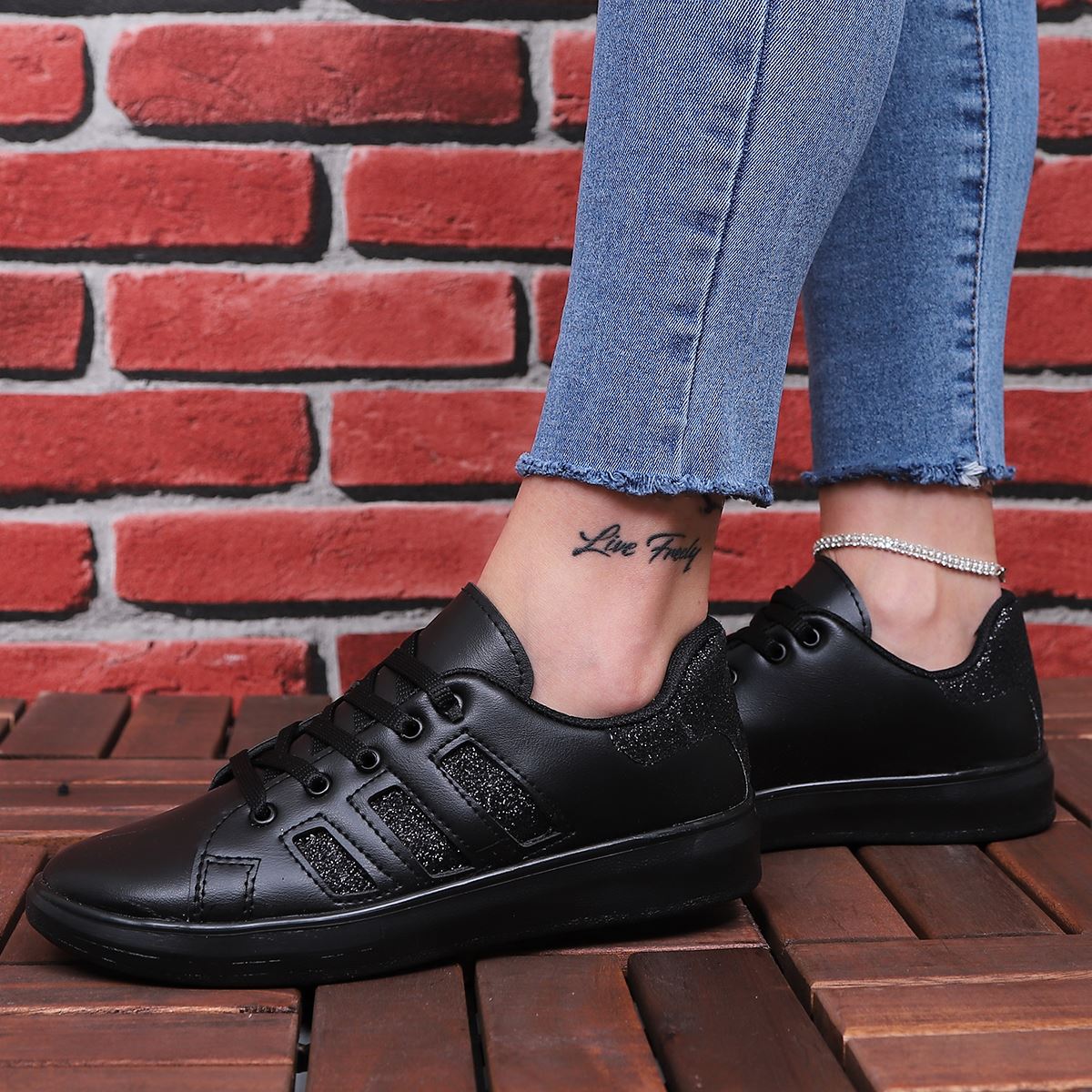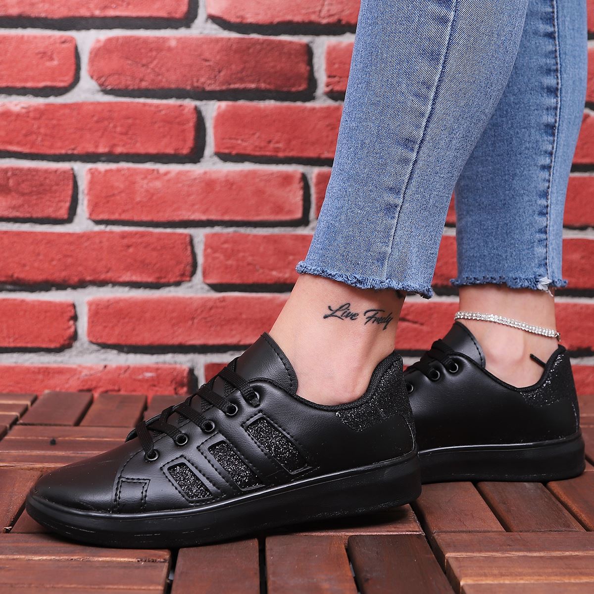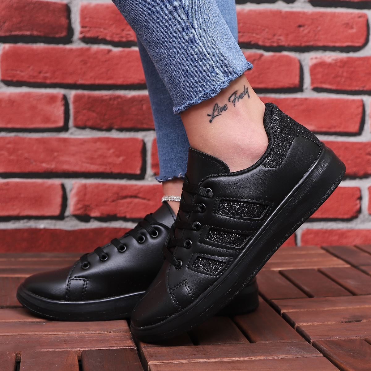 Siyah Simli Şeritli Spor Ayakkabı AYK176