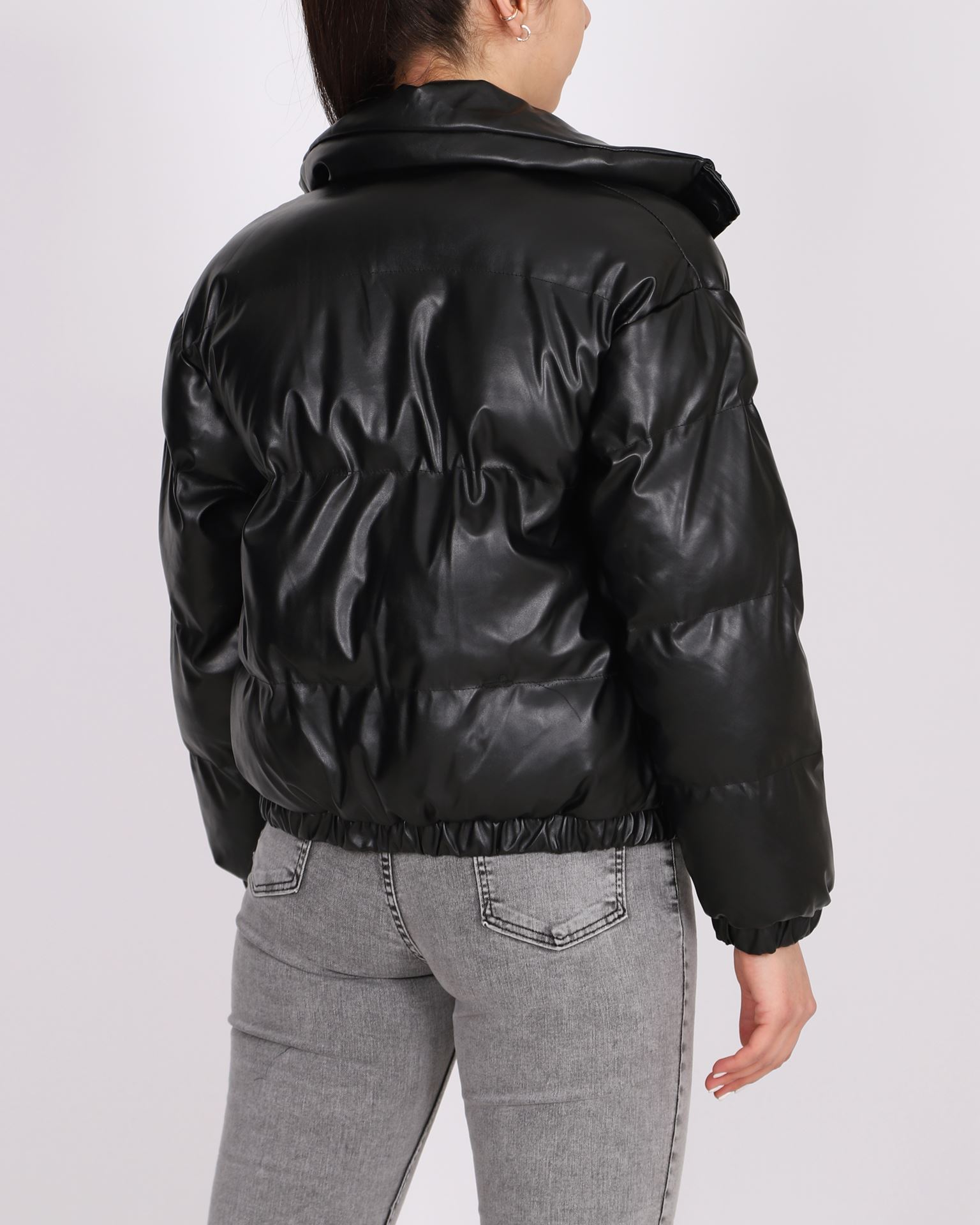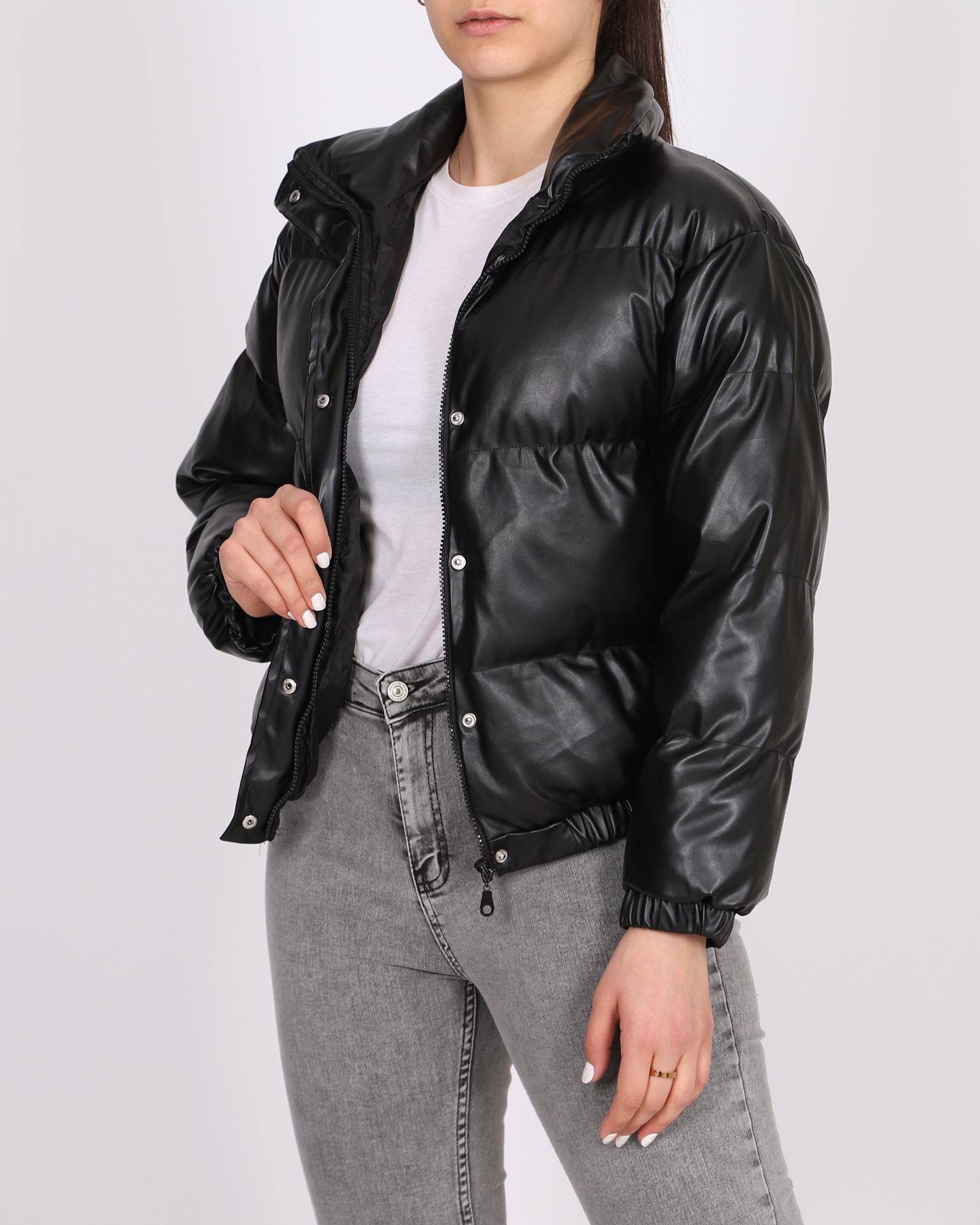 Siyah Şişme Deri Mont MNT049